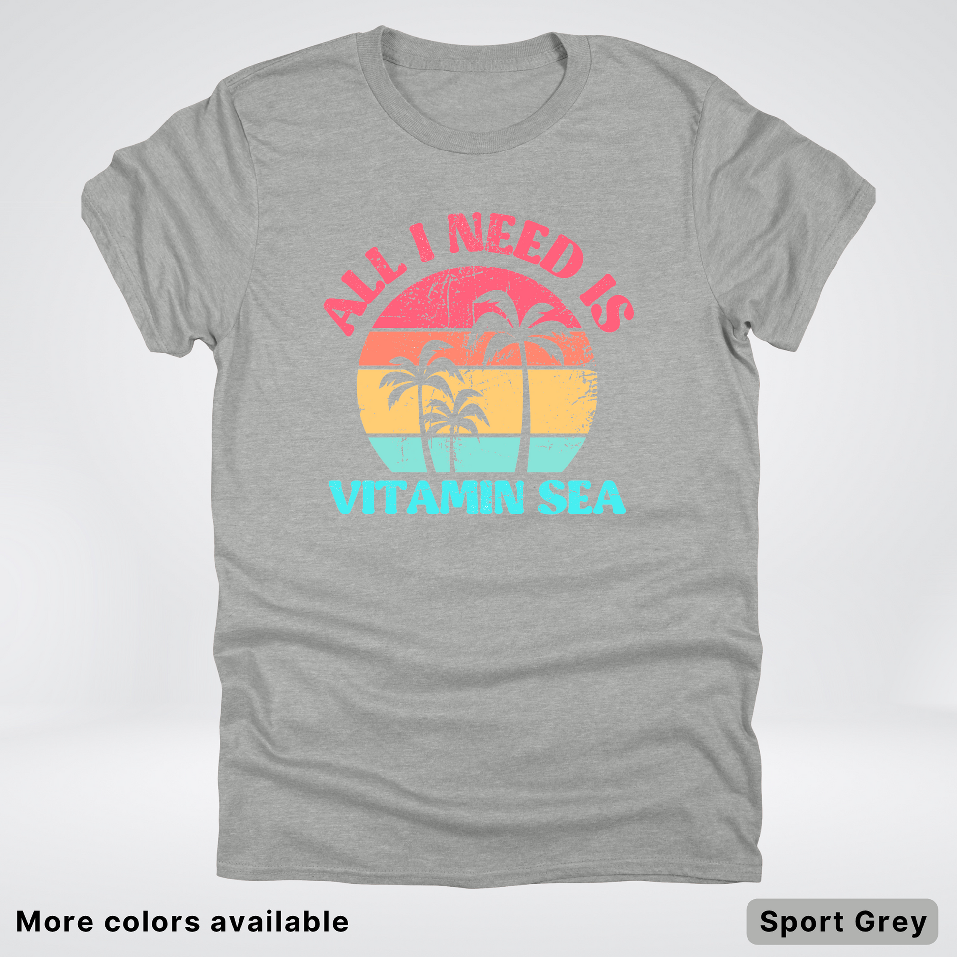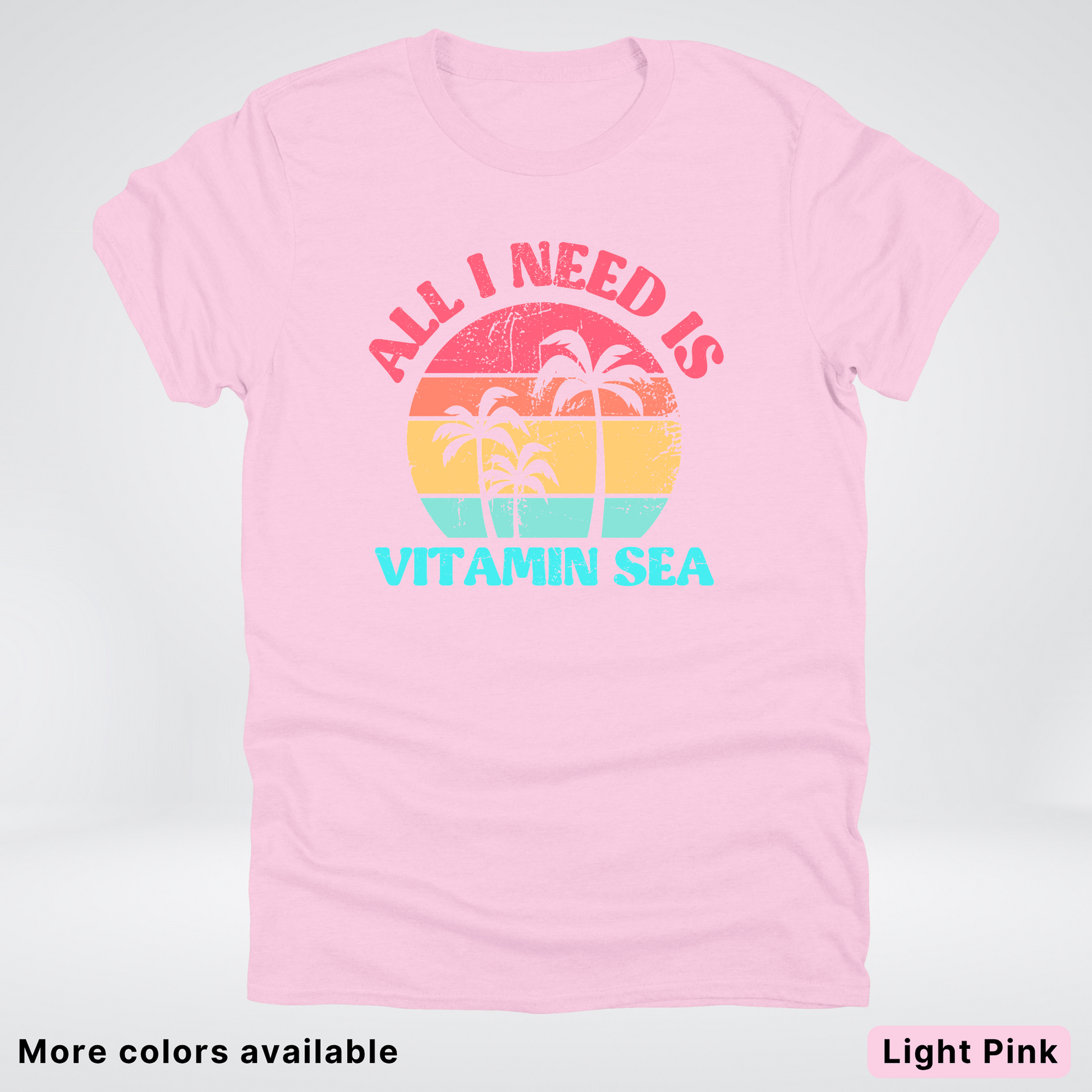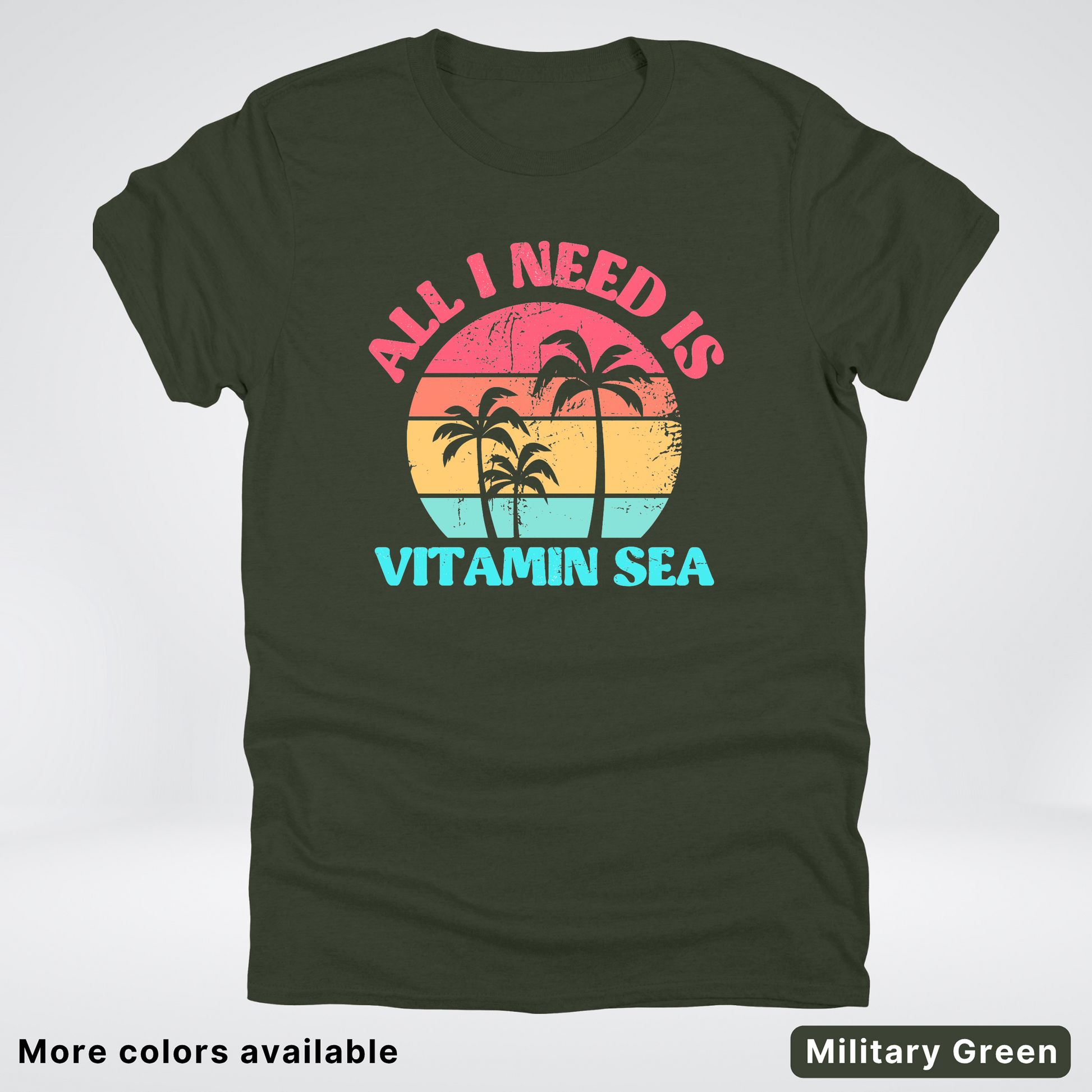 Dive into fun with the All I Need Is Vitamin Sea T-Shirt! Perfect for beach lovers and daydreamers, this playful tee brings a splash of ocean vibes to your wardrobe. Soft, comfortable, and easy to wear, it’s your go-to for sunny days, casual outings, or just adding a bit of seaside spirit to any outfit. Embrace the vitamin sea you crave every day!