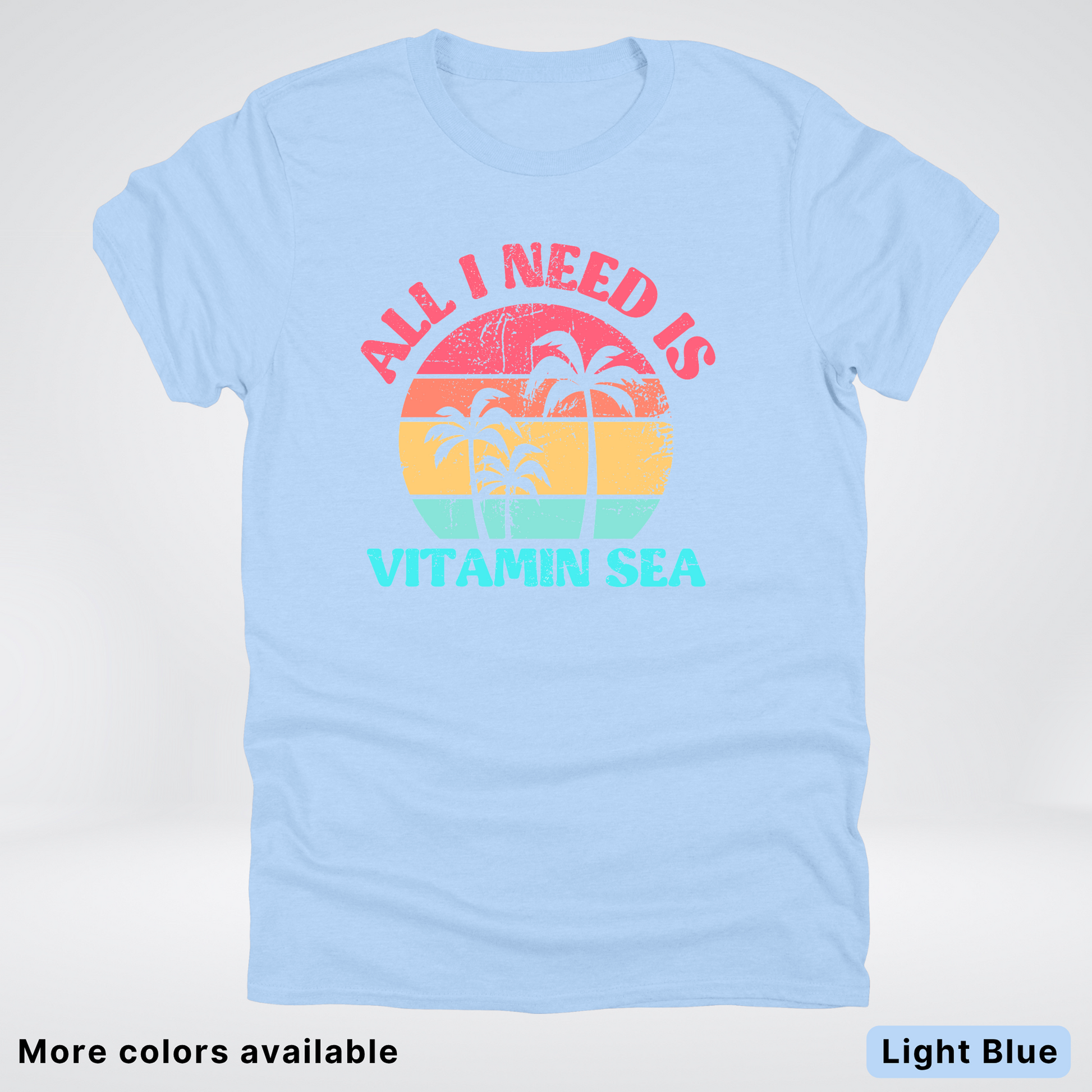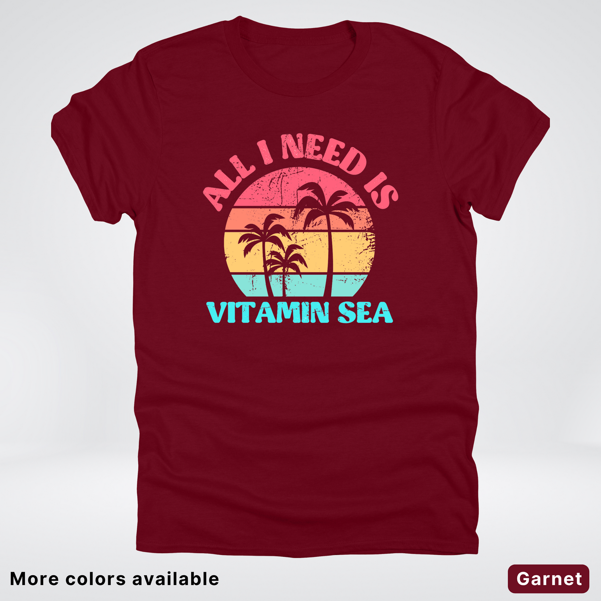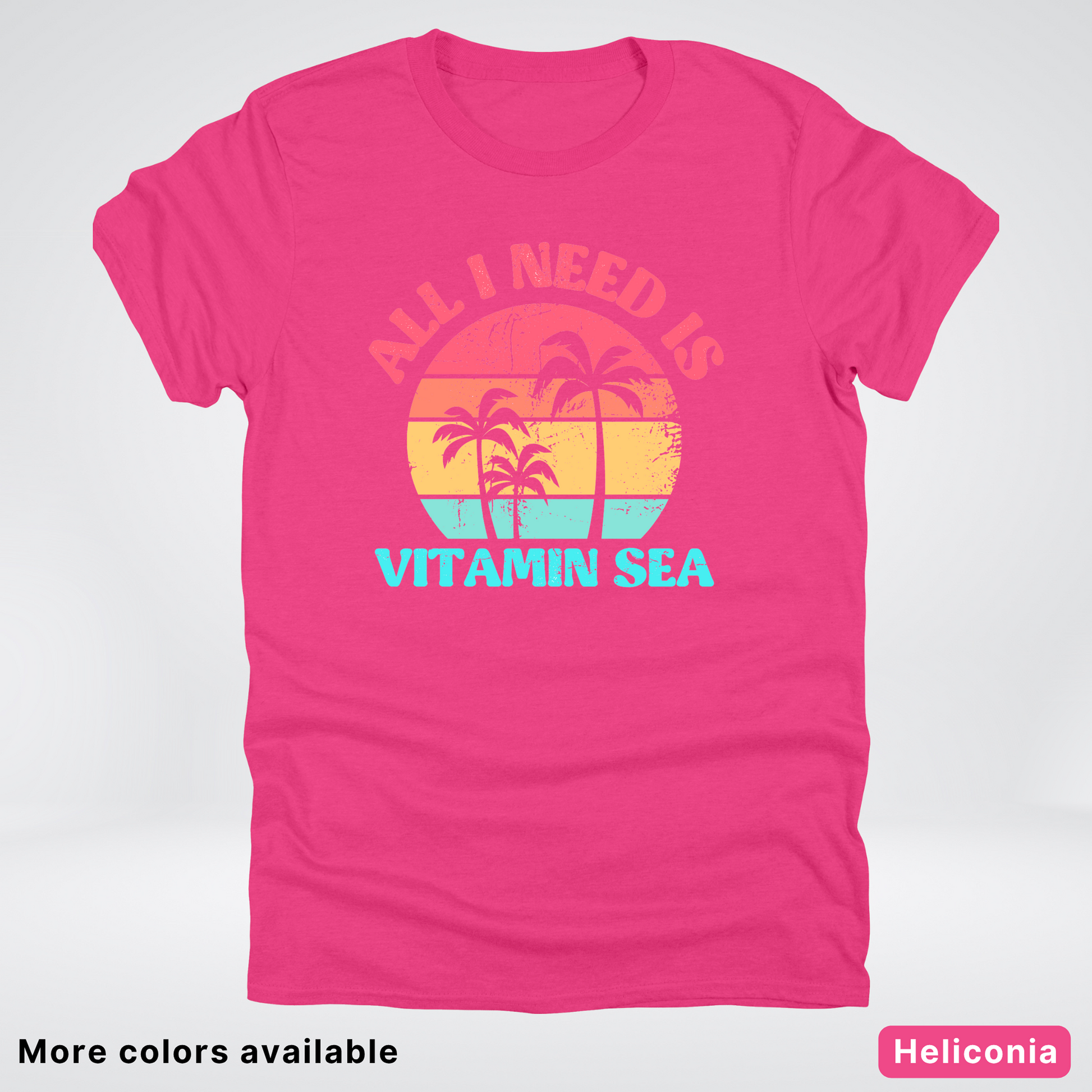 Dive into fun with the All I Need Is Vitamin Sea T-Shirt! Perfect for beach lovers and daydreamers, this playful tee brings a splash of ocean vibes to your wardrobe. Soft, comfortable, and easy to wear, it’s your go-to for sunny days, casual outings, or just adding a bit of seaside spirit to any outfit. Embrace the vitamin sea you crave every day!