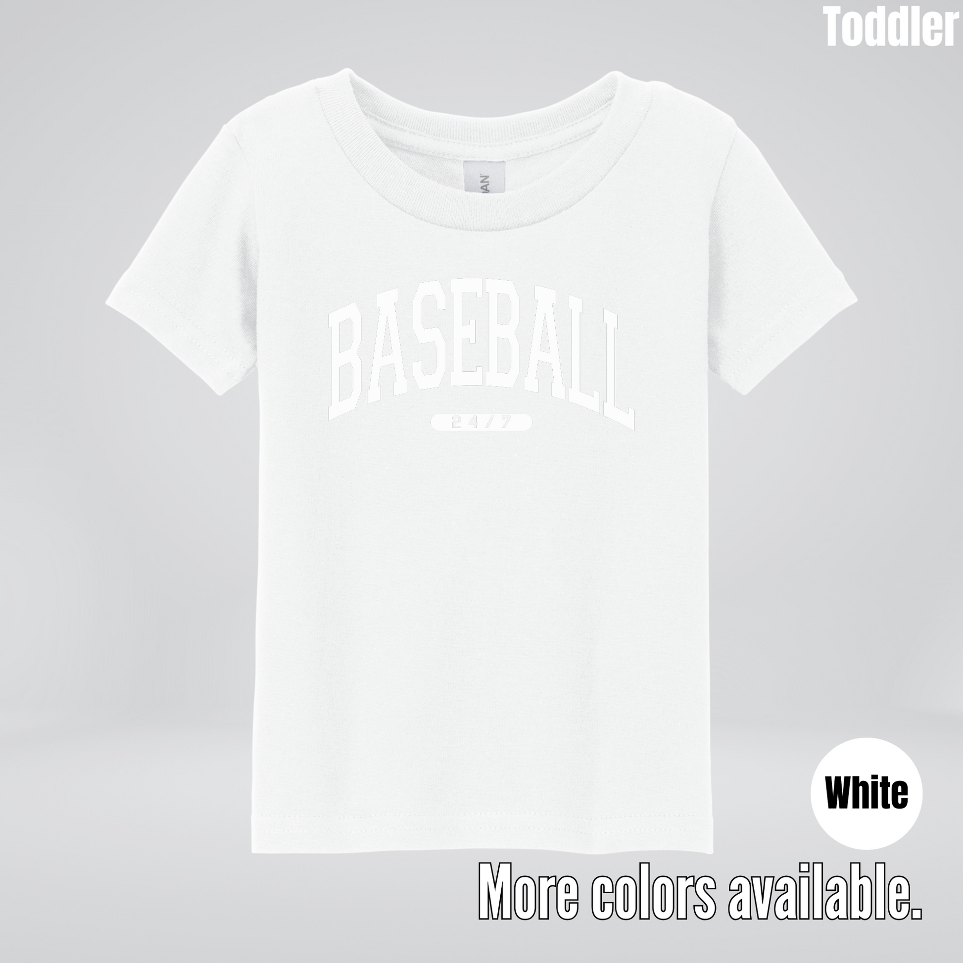 Score major style points with our BASEBALL 24/7 Toddler T-Shirt! Whether they're on or off the field, your little one will be hitting fashion home runs with this comfy and playful tee. Perfect for all-day play and showing off their love for the game. Play ball!