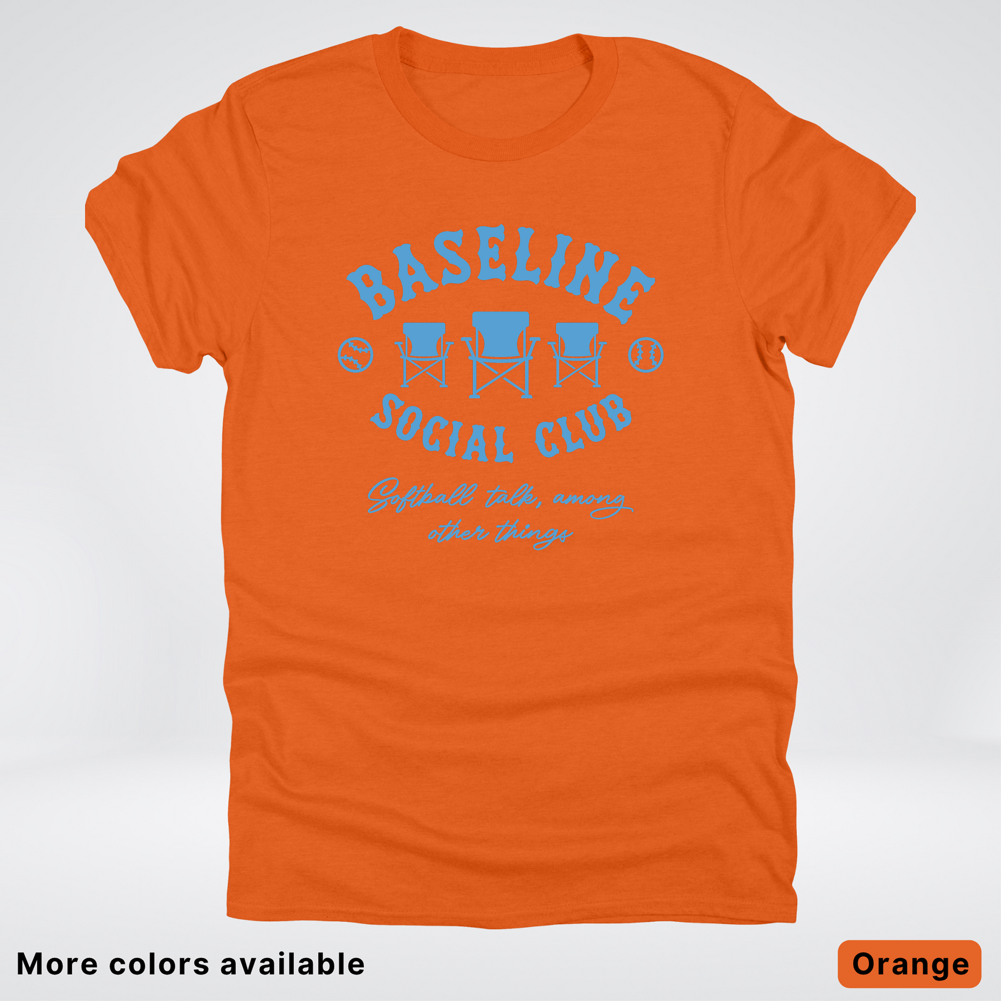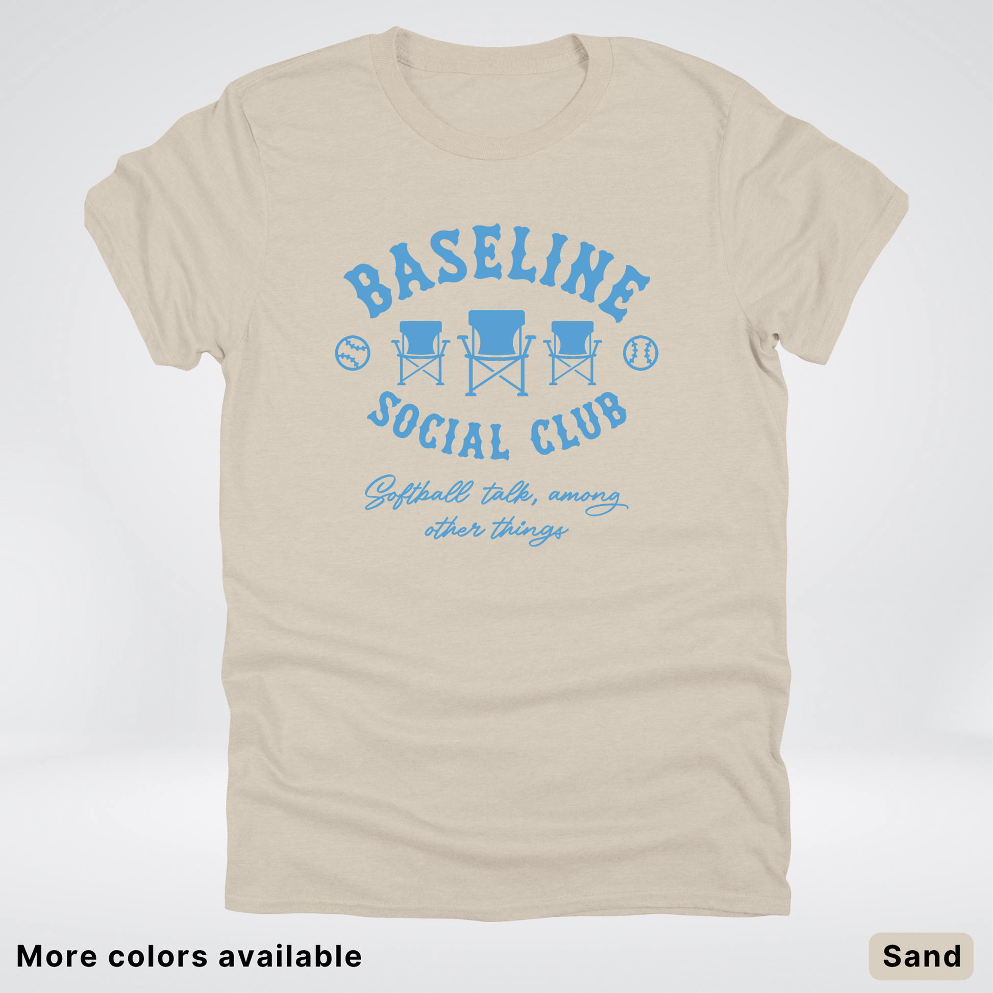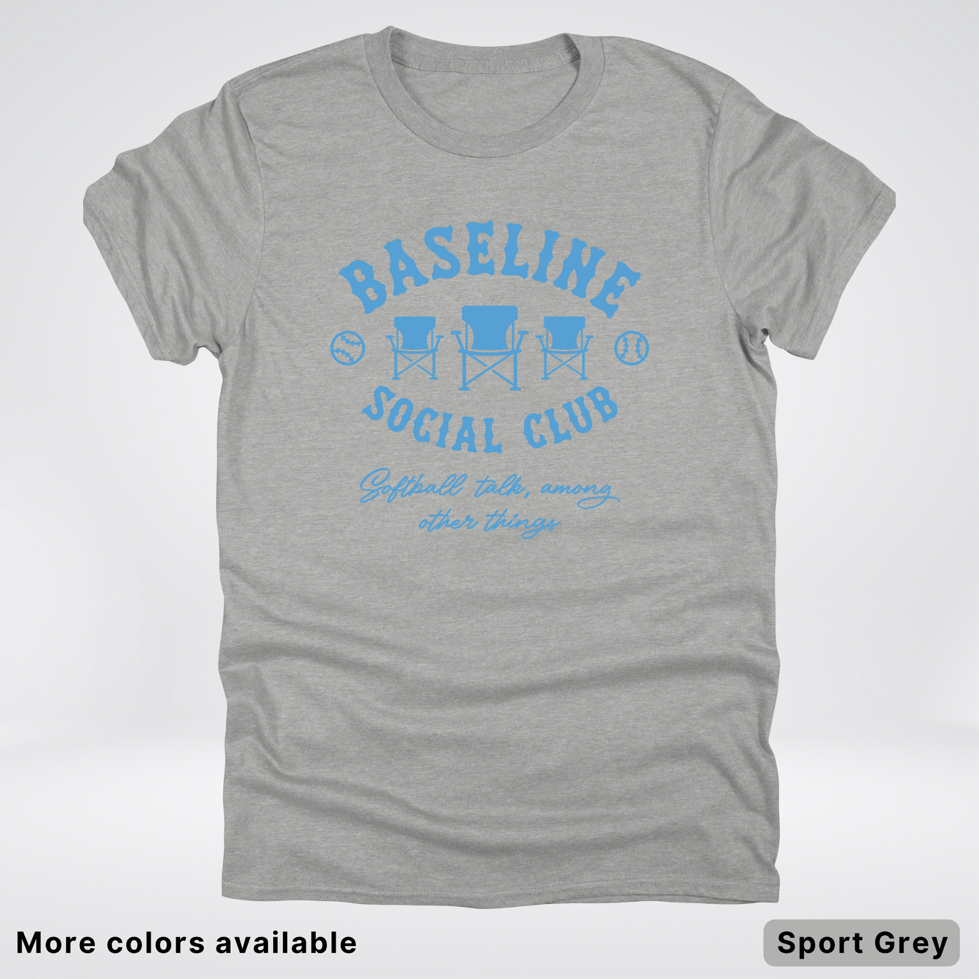Join the Baseline Social Club in this laid-back softball tee featuring a crisp light blue design. Perfect for game day, practice, or just showing your team spirit around town. Soft, comfortable cotton keeps you cool whether you're cheering from the sidelines or stepping up to the plate. Rock this casual essential and let everyone know you're part of the crew.