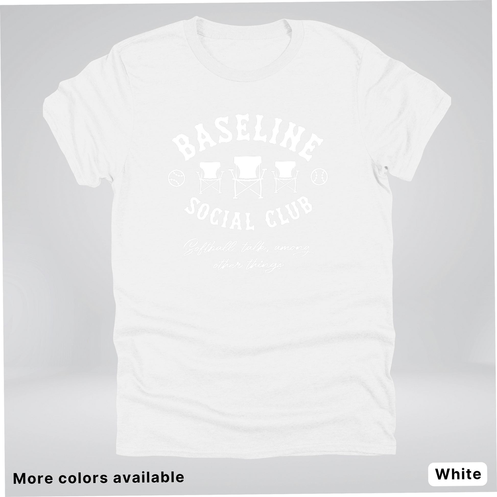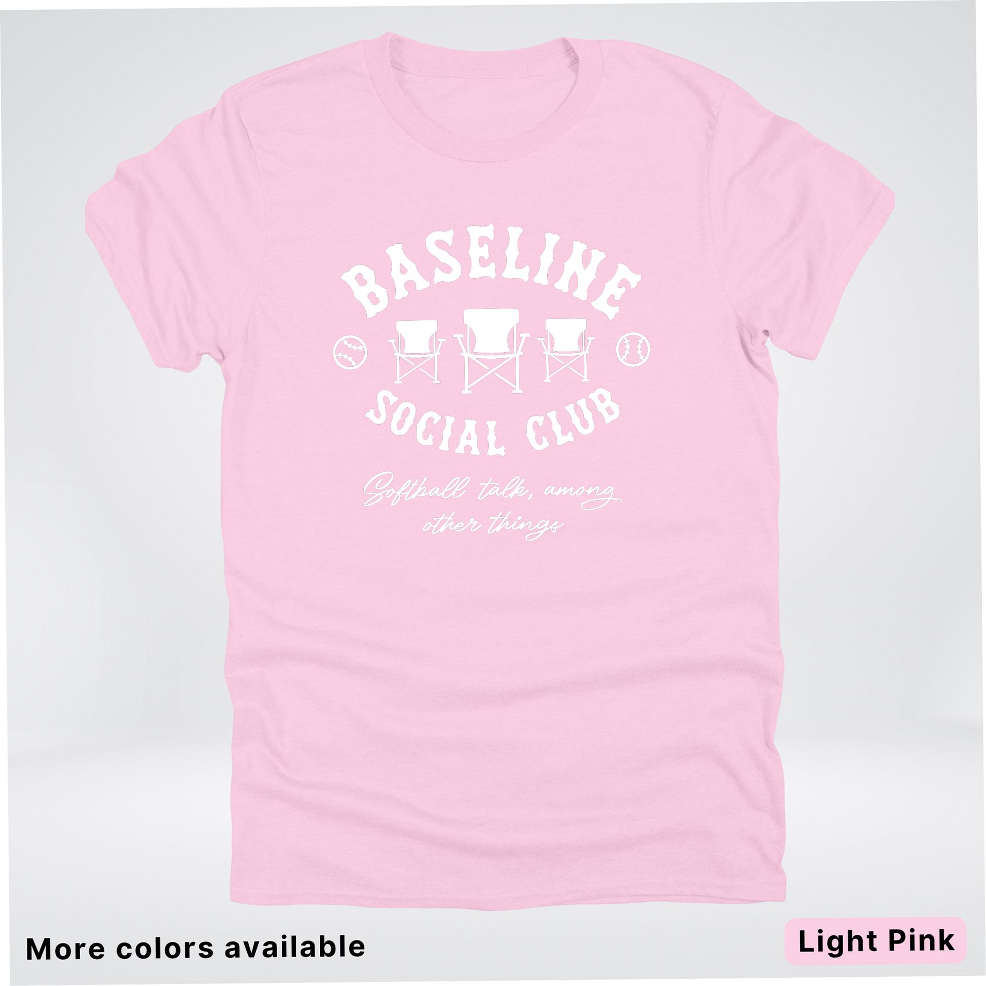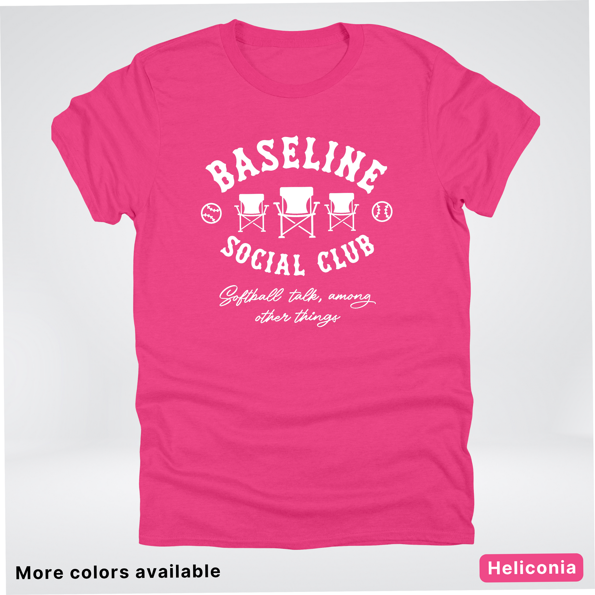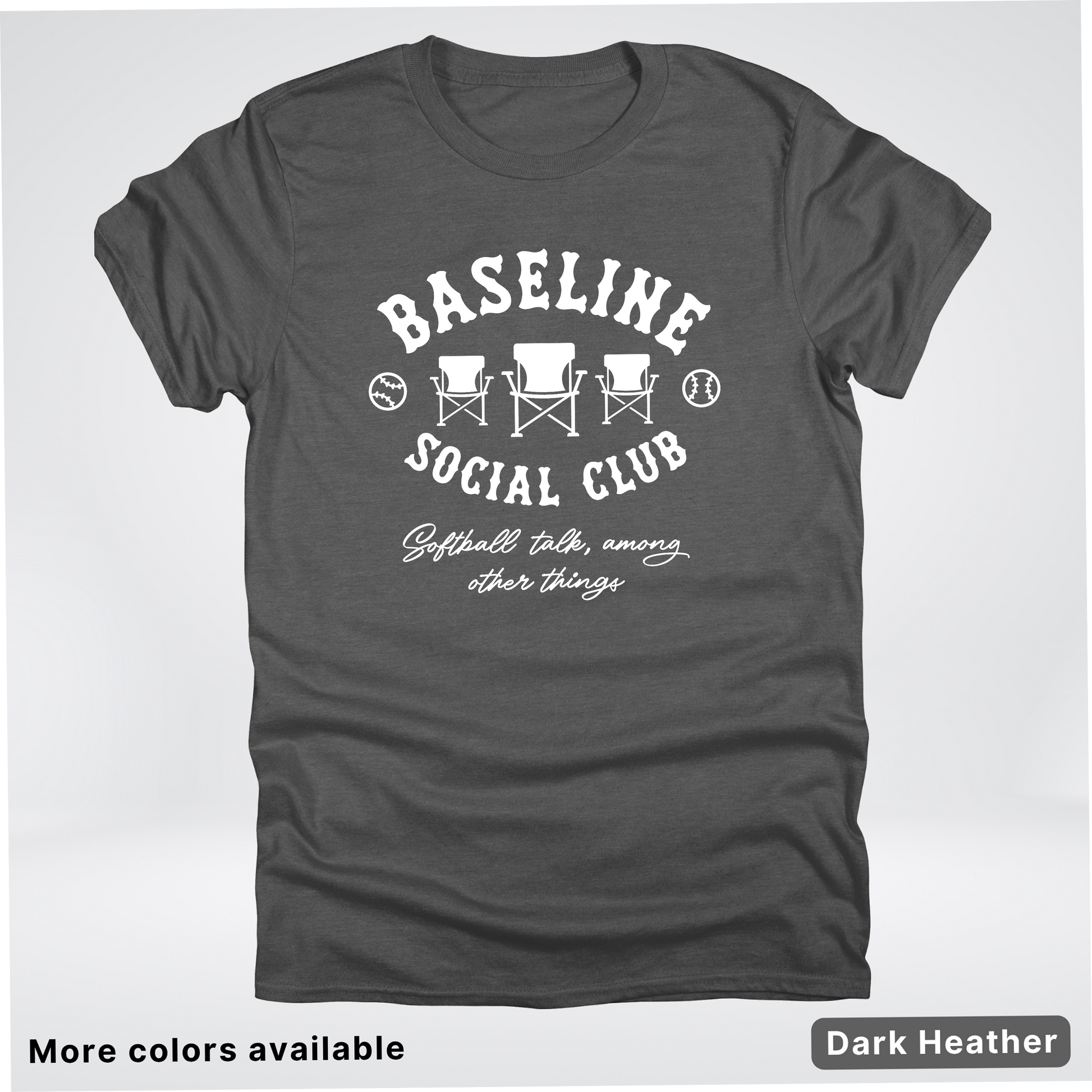 Join the Baseline Social Club and show your softball spirit in this crisp white design tee. Perfect for game days, practice sessions, or casual hangouts with your team. The clean, classic look celebrates your love for the sport while keeping you comfortable all day long. Whether you're cheering from the sidelines or leading the charge on the field, this shirt lets everyone know where your loyalty lies. Rock your club pride with style.
