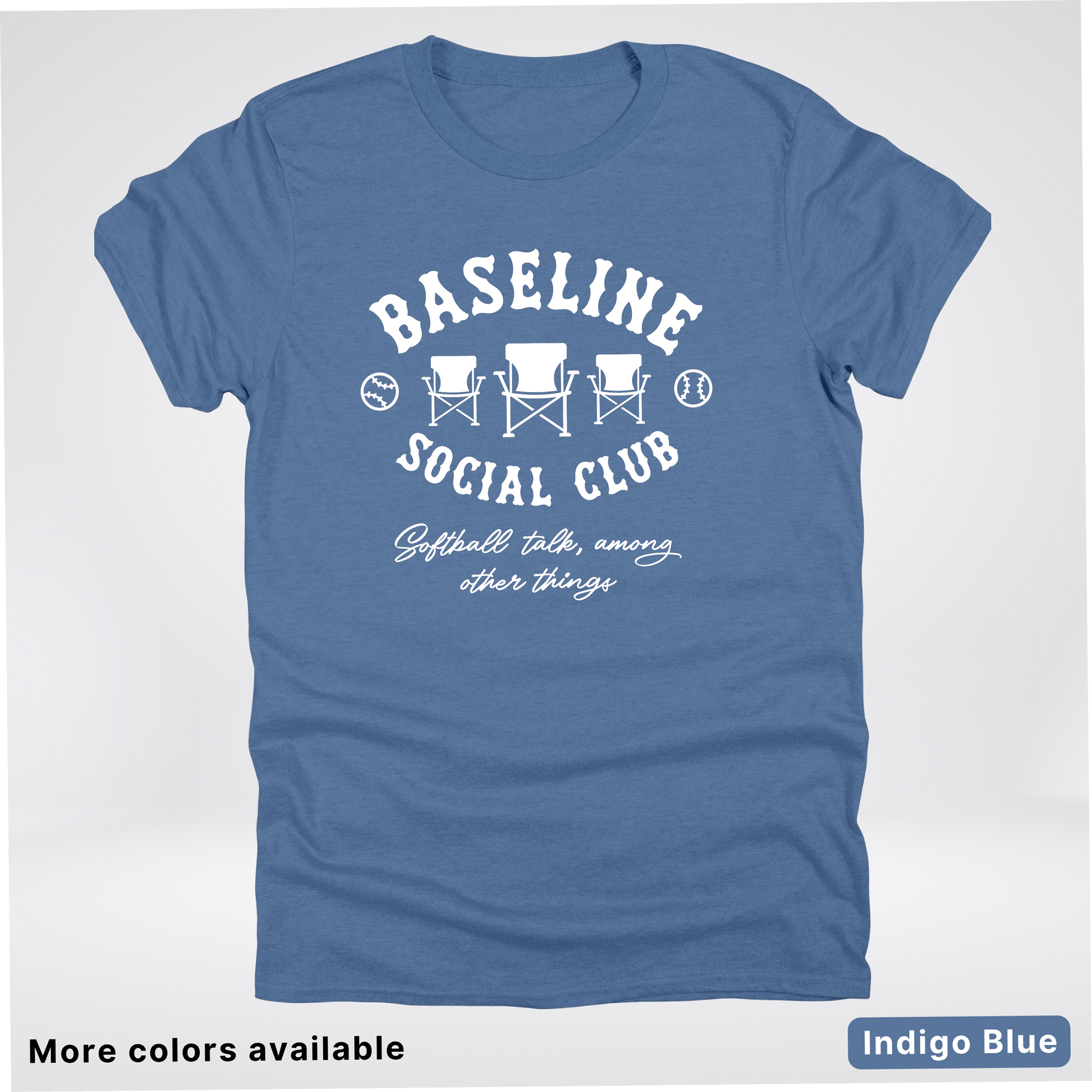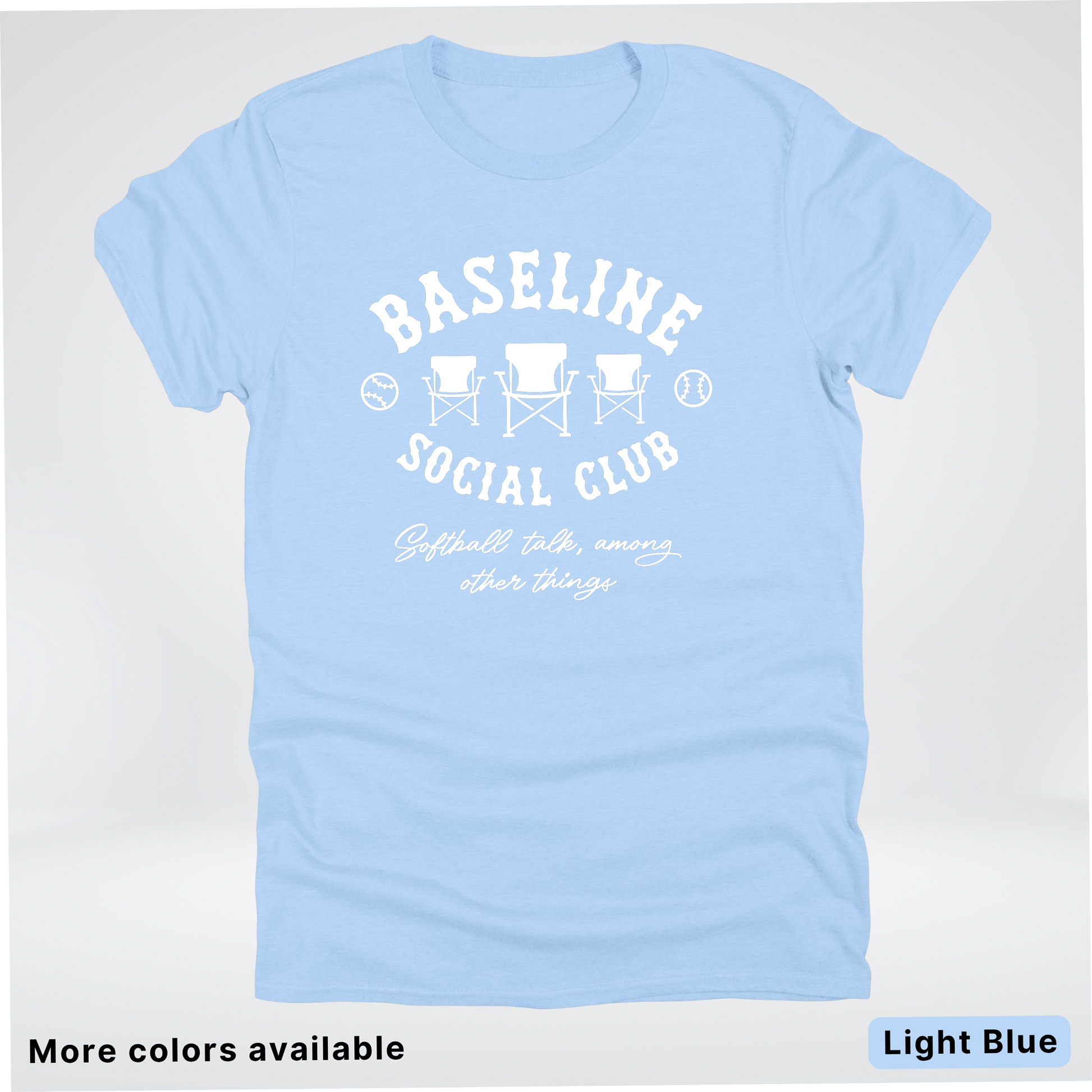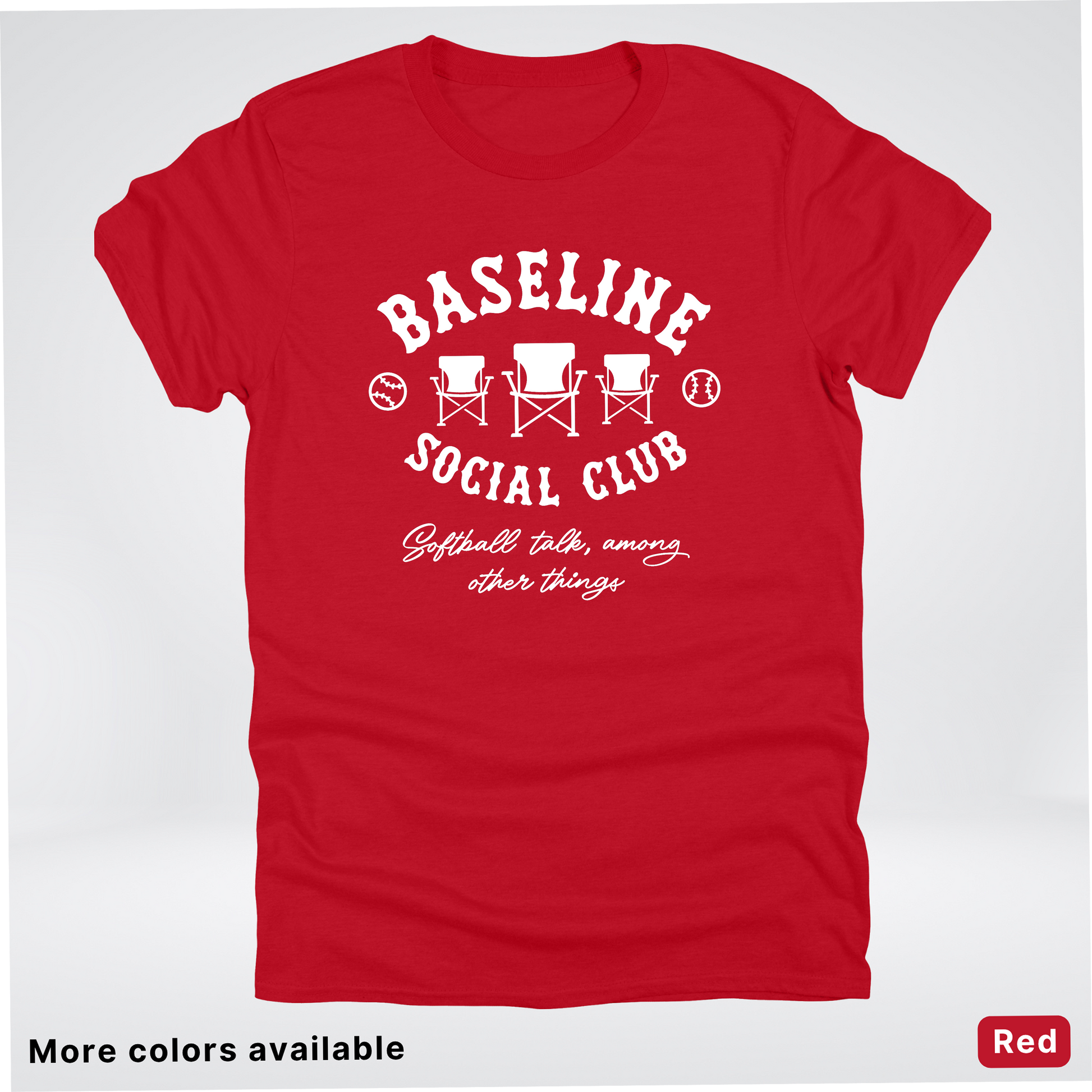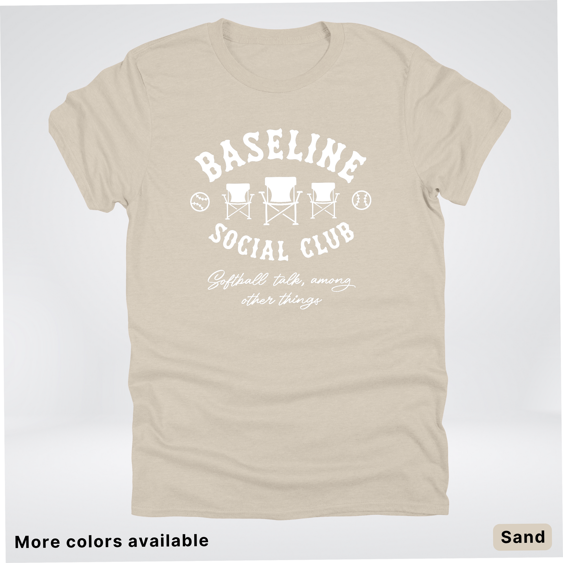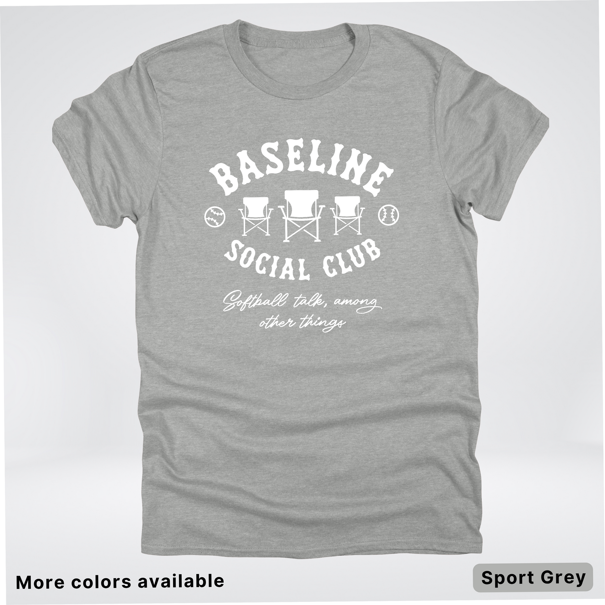 Join the Baseline Social Club and show your softball spirit in this crisp white design tee. Perfect for game days, practice sessions, or casual hangouts with your team. The clean, classic look celebrates your love for the sport while keeping you comfortable all day long. Whether you're cheering from the sidelines or leading the charge on the field, this shirt lets everyone know where your loyalty lies. Rock your club pride with style.