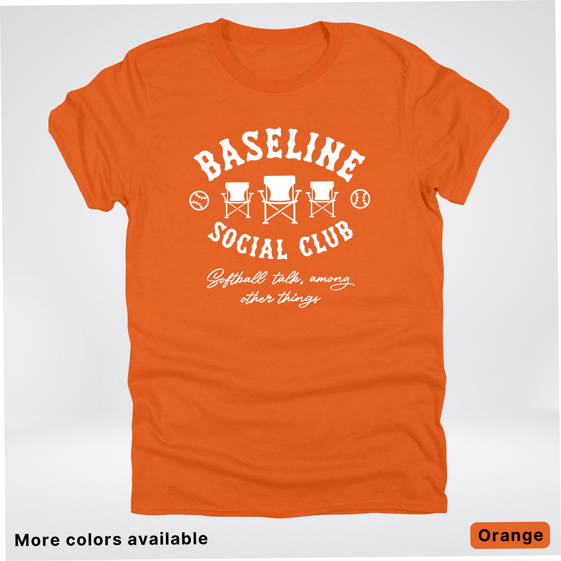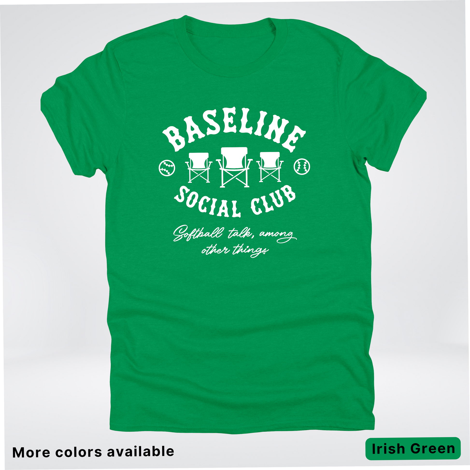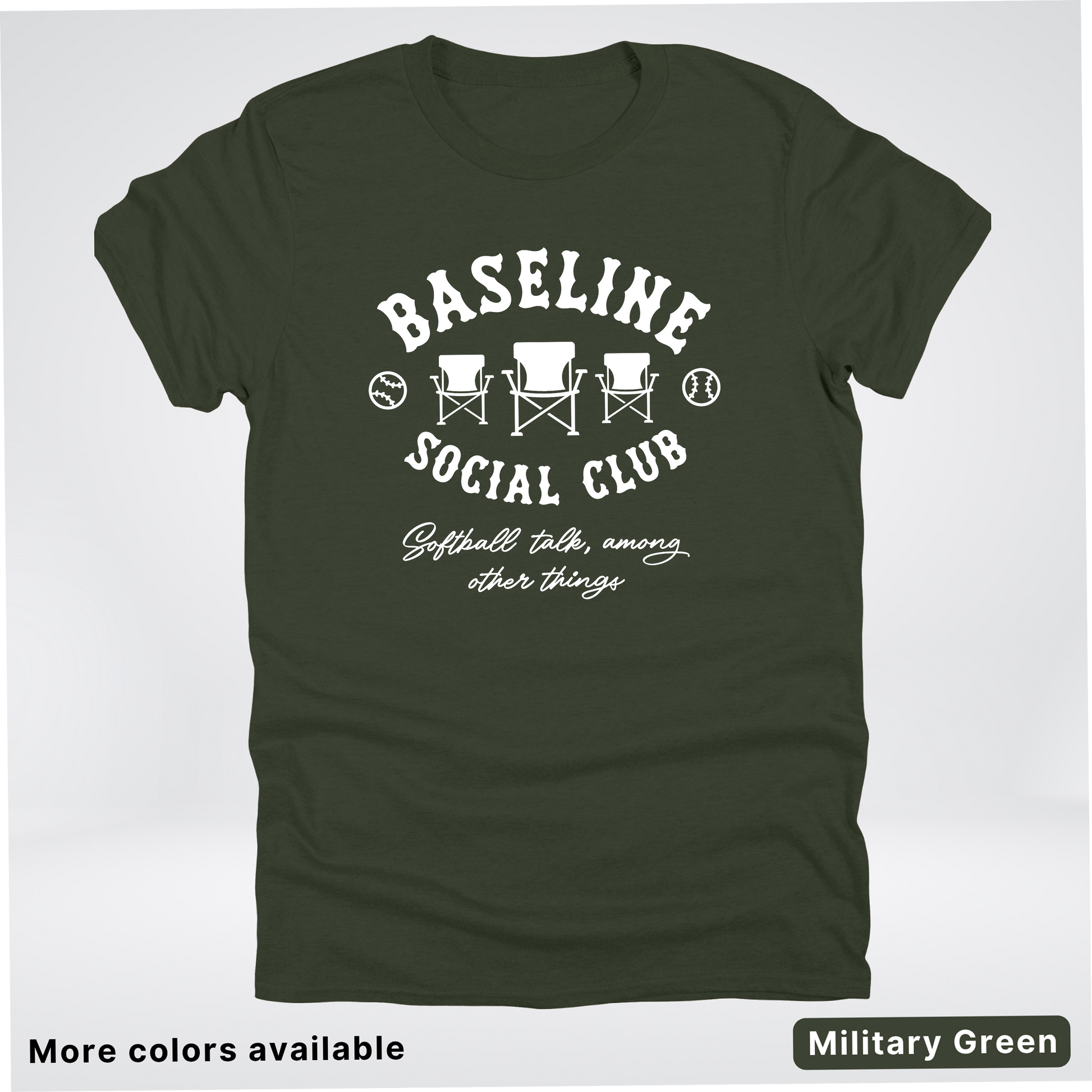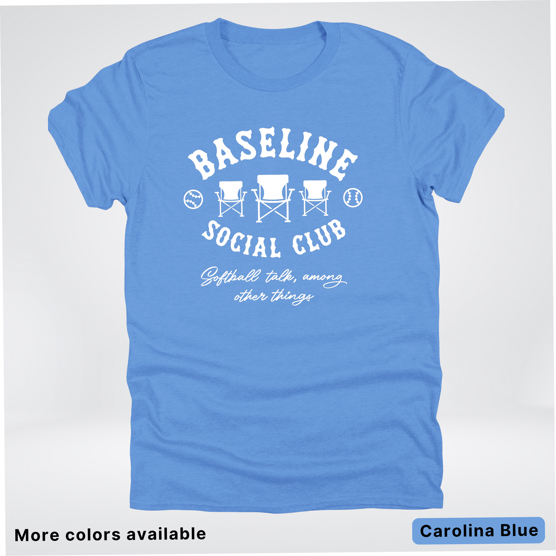Join the Baseline Social Club and show your softball spirit in this crisp white design tee. Perfect for game days, practice sessions, or casual hangouts with your team. The clean, classic look celebrates your love for the sport while keeping you comfortable all day long. Whether you're cheering from the sidelines or leading the charge on the field, this shirt lets everyone know where your loyalty lies. Rock your club pride with style.