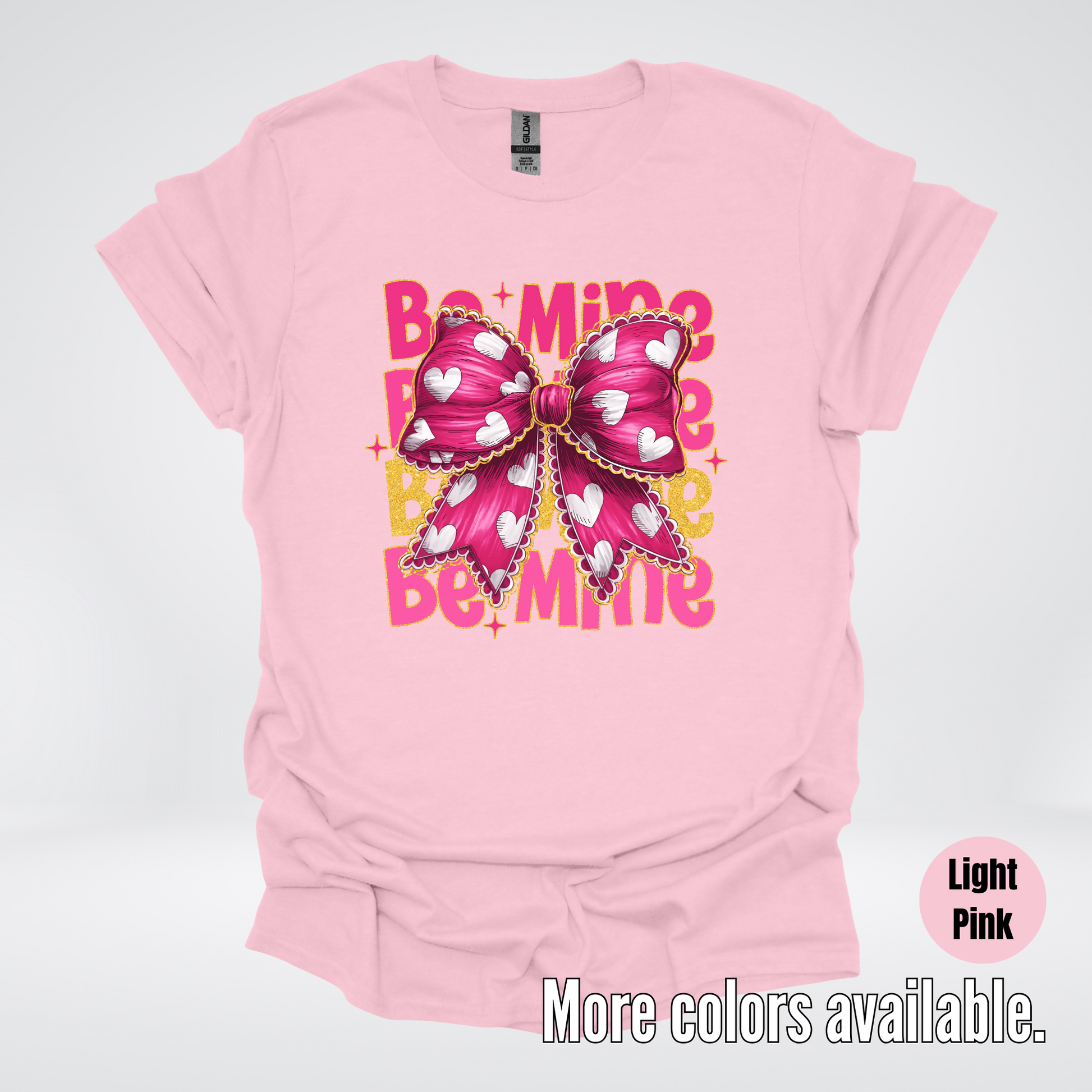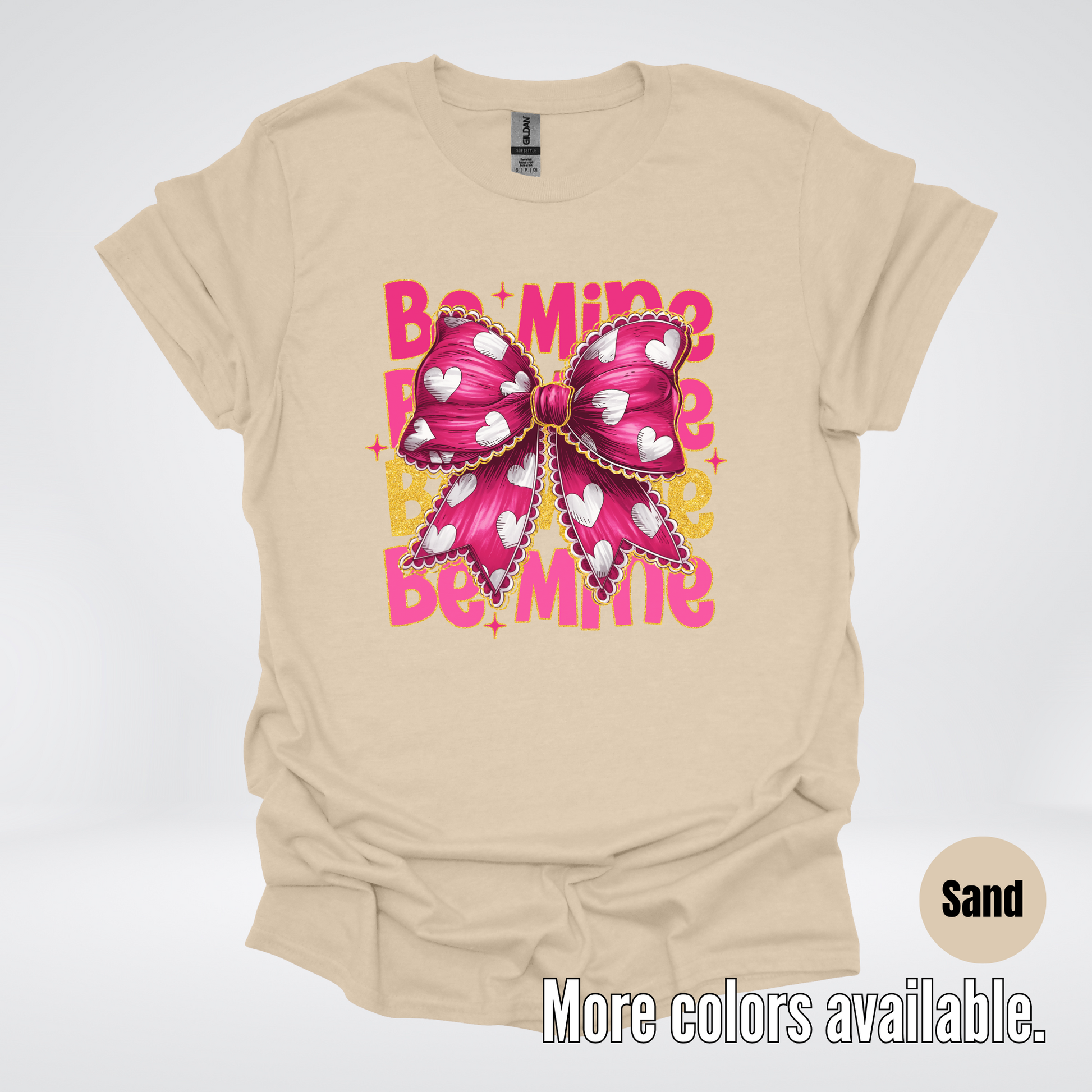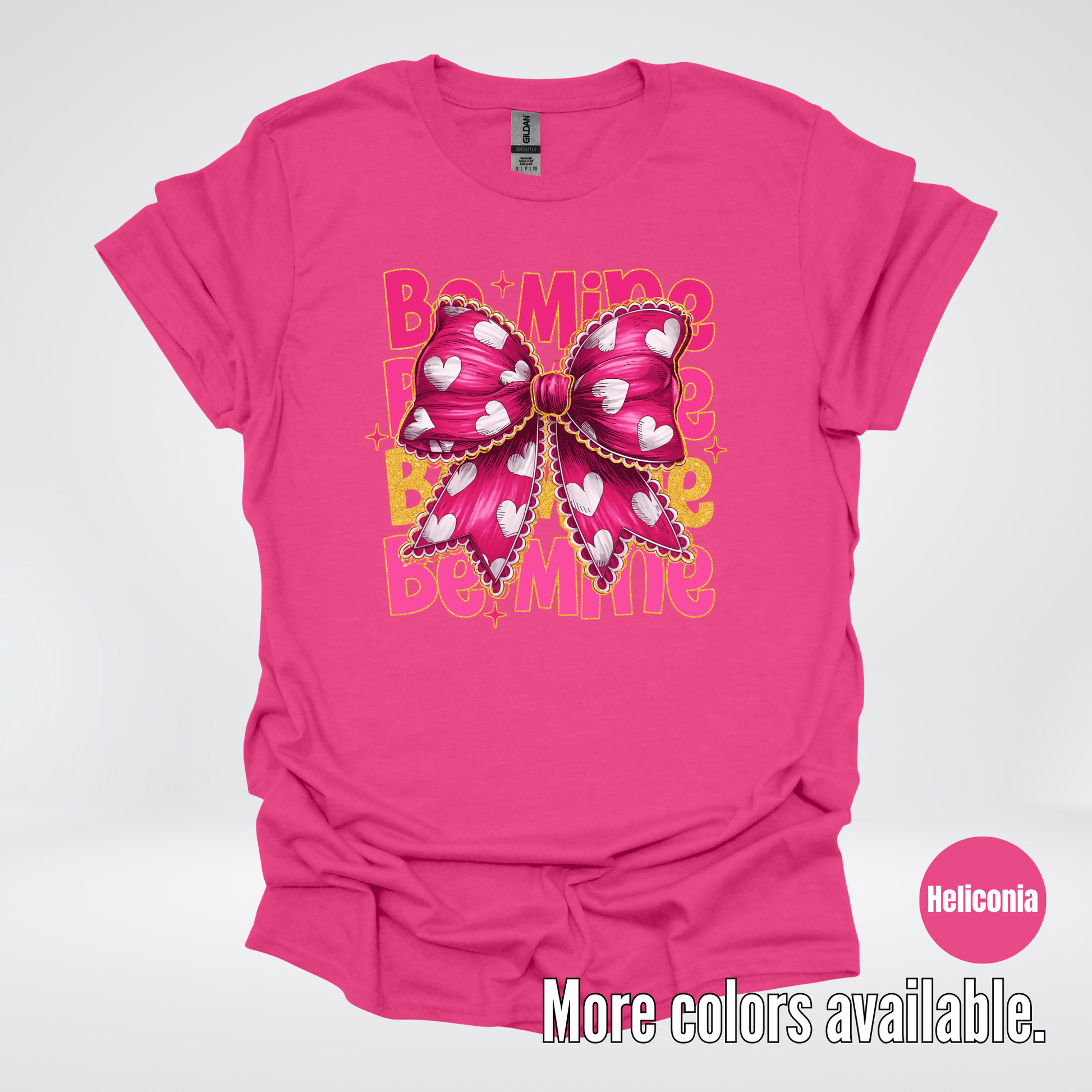 Declare your love with a wink in this playful Be Mine Coquette Pink & Gold T-Shirt. Featuring a flirty design in soft pink and bold gold, this shirt is perfect for a romantic night out. Chic yet sassy, it's a must-have for any stylish lovebird.