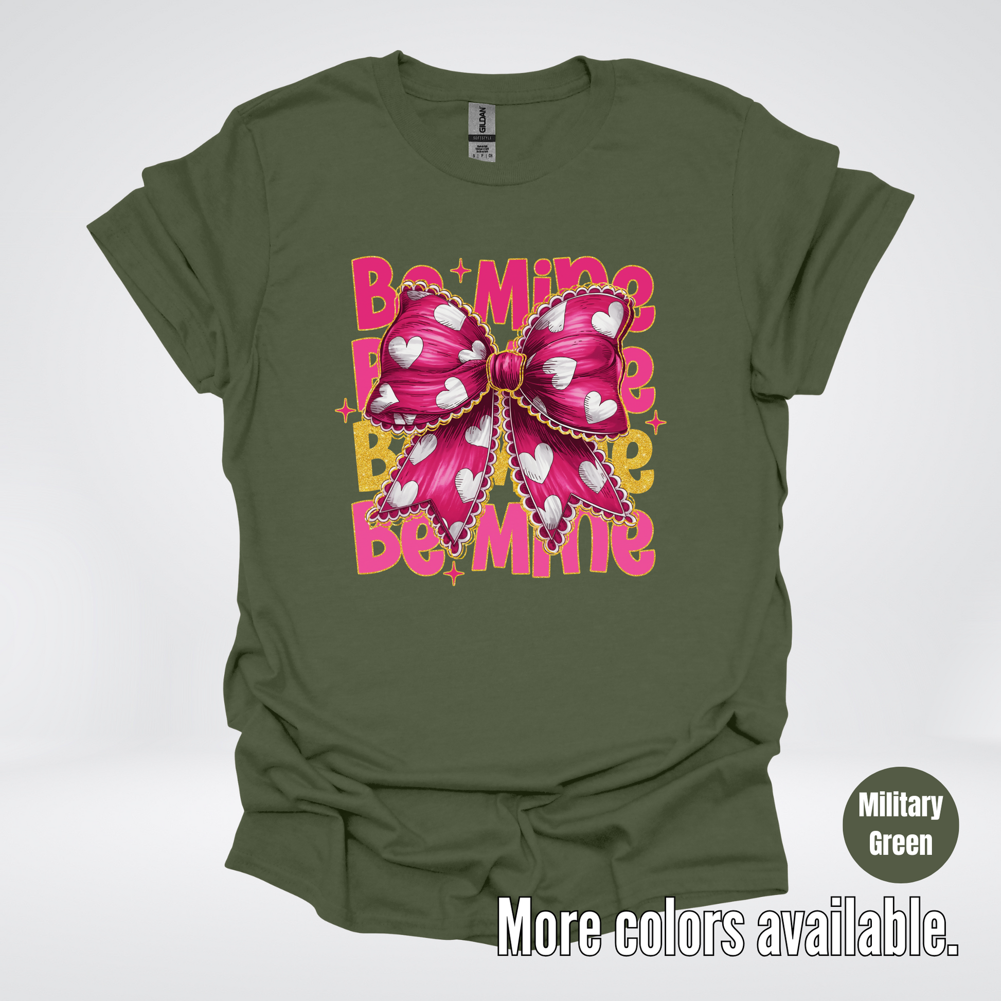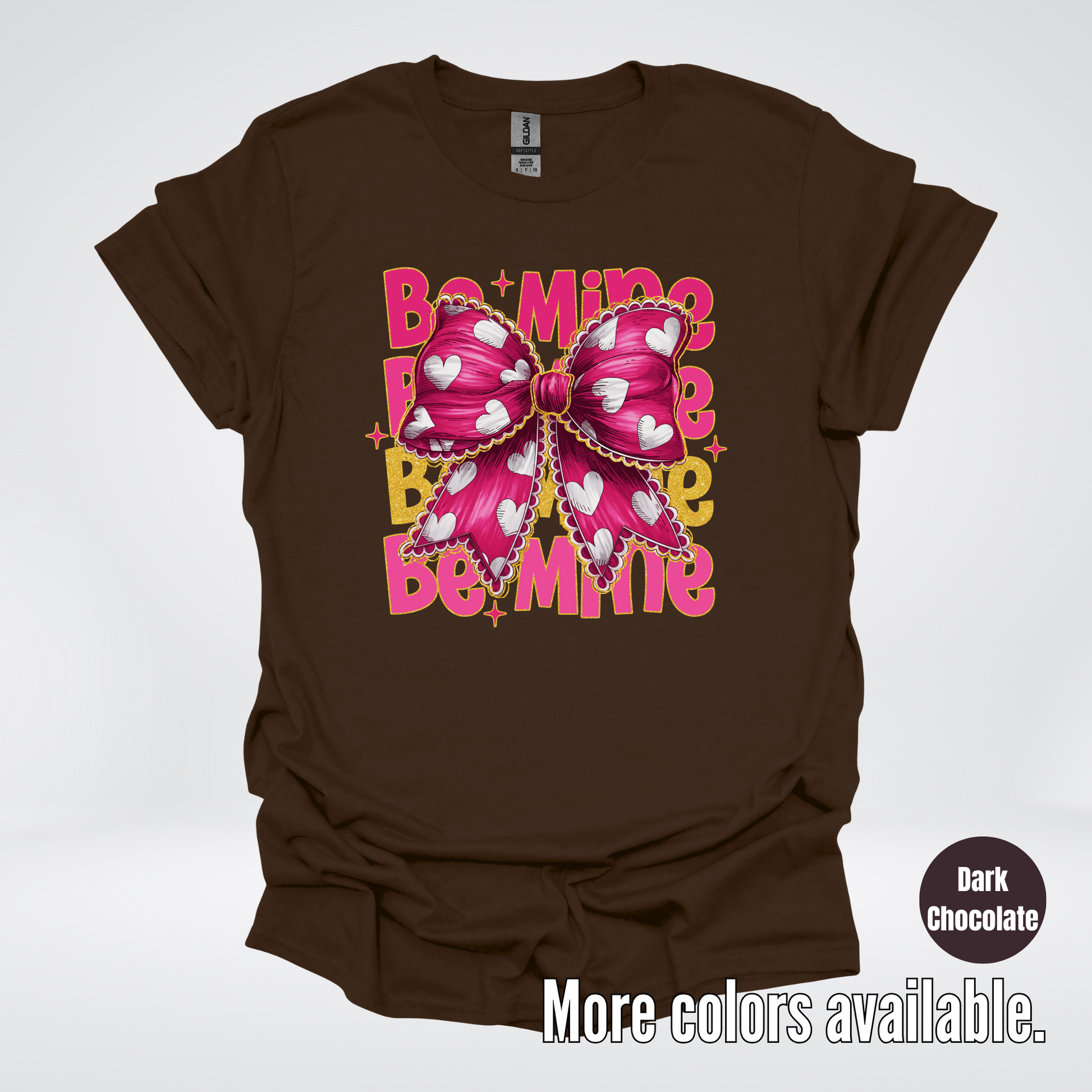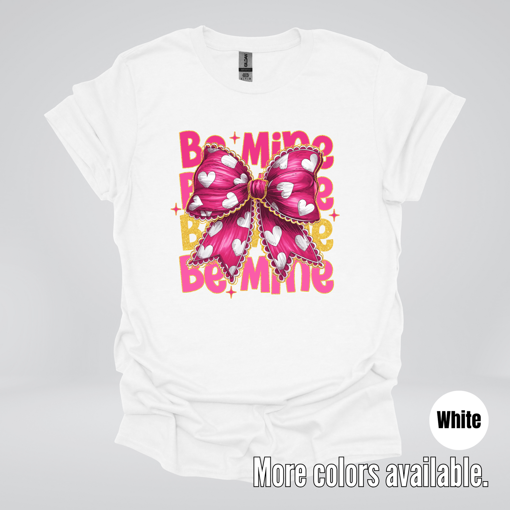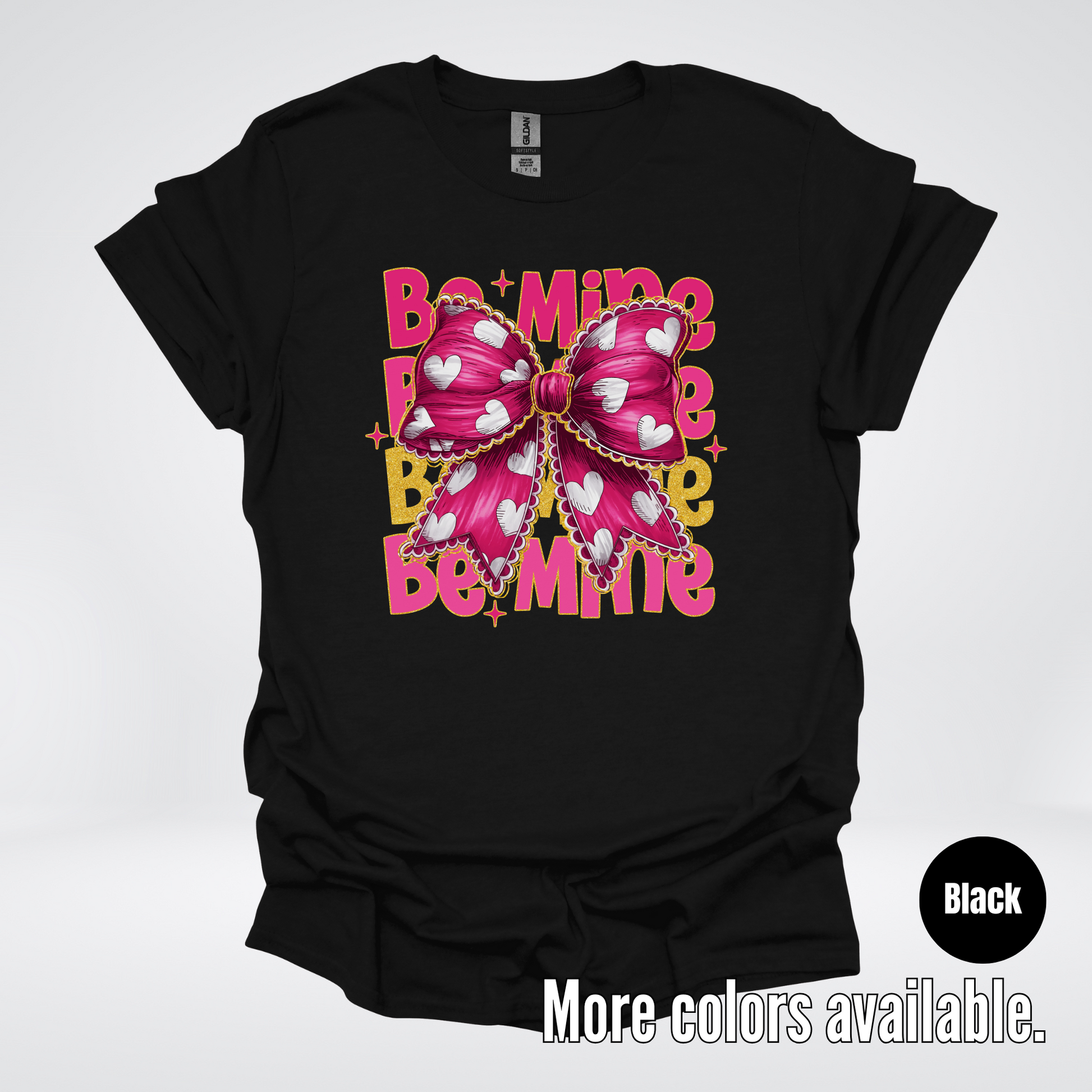 Declare your love with a wink in this playful Be Mine Coquette Pink & Gold T-Shirt. Featuring a flirty design in soft pink and bold gold, this shirt is perfect for a romantic night out. Chic yet sassy, it's a must-have for any stylish lovebird.