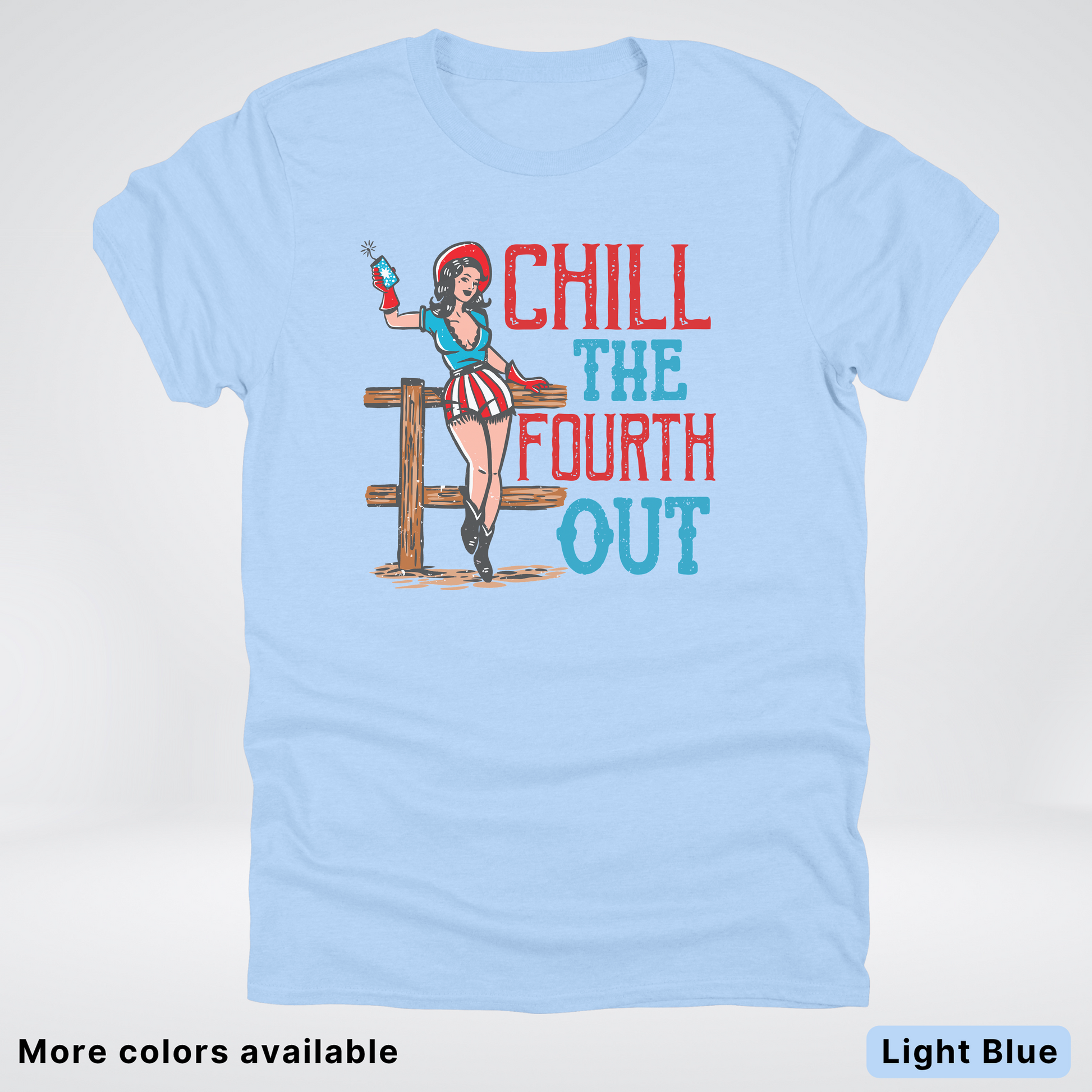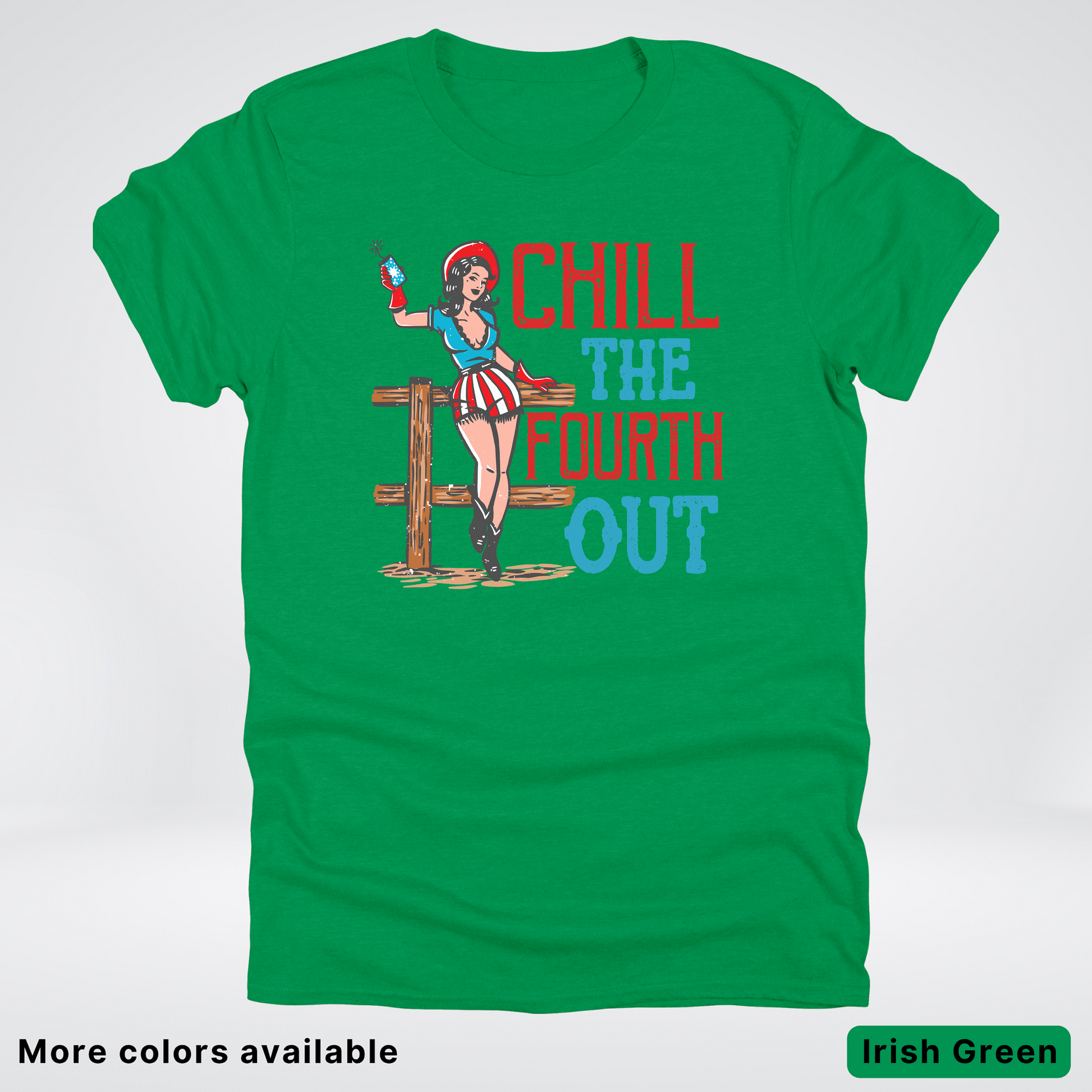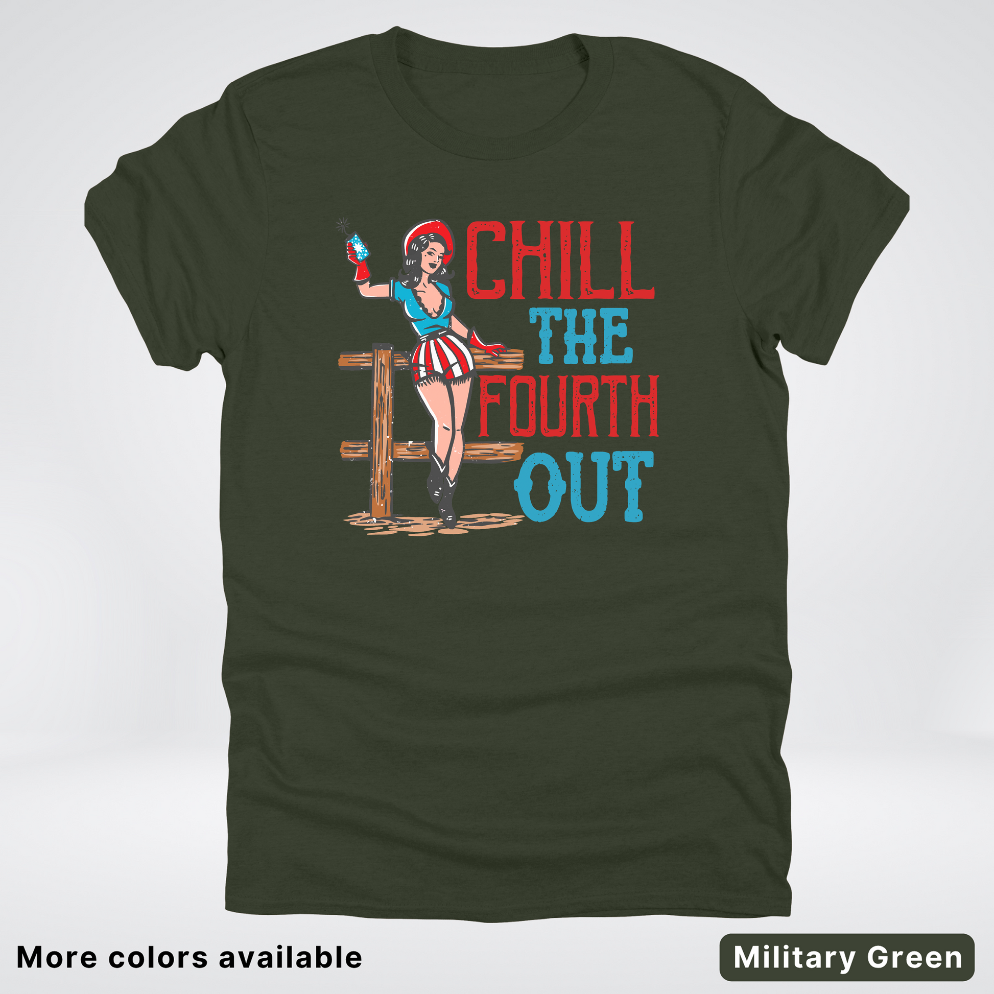 Celebrate Independence Day with a playful twist in the "Chill The Fourth Out" T-shirt. Perfect for relaxing backyard barbecues or fireworks shows, this shirt combines comfort and festive spirit. Show off your laid-back patriotism while staying cool and casual all day long.