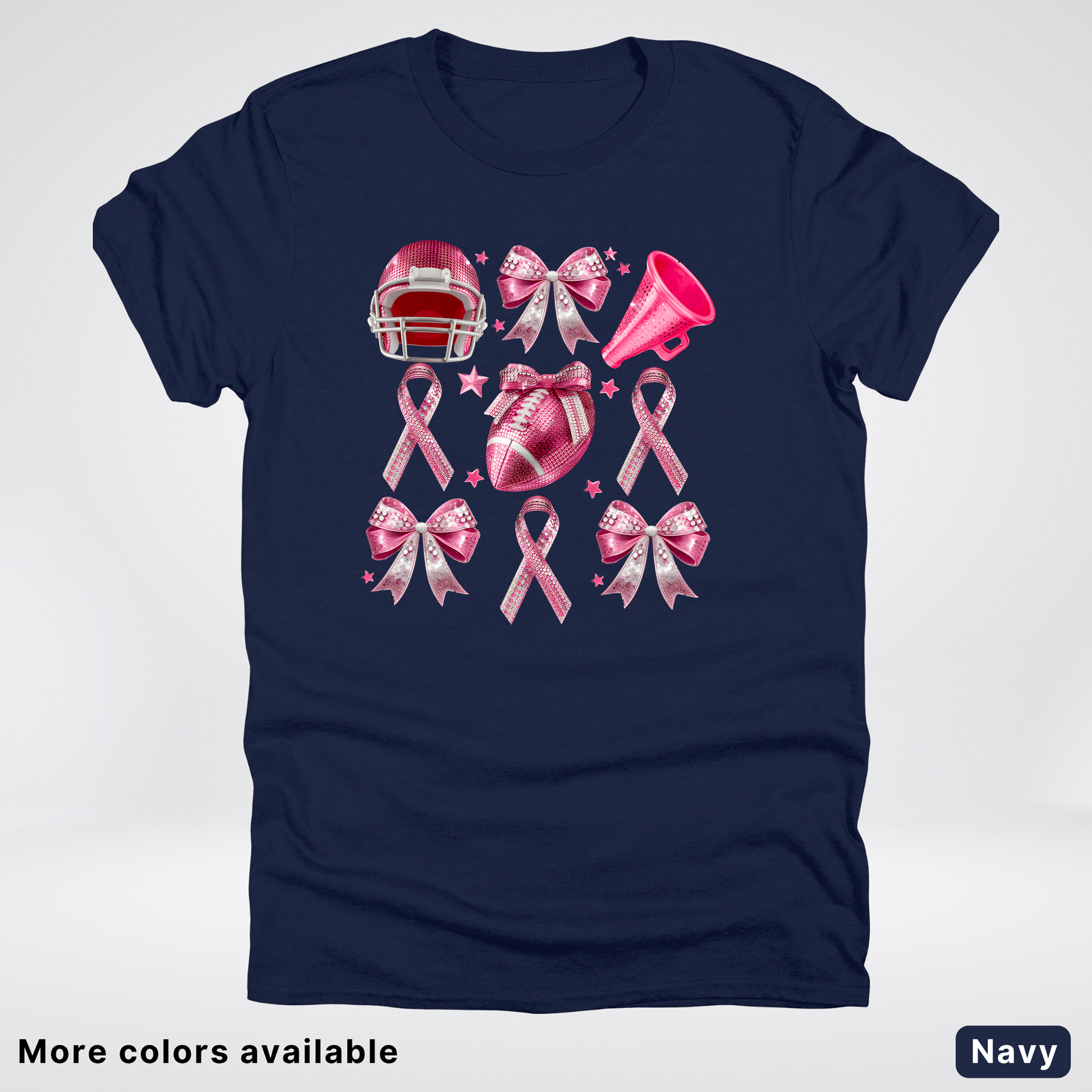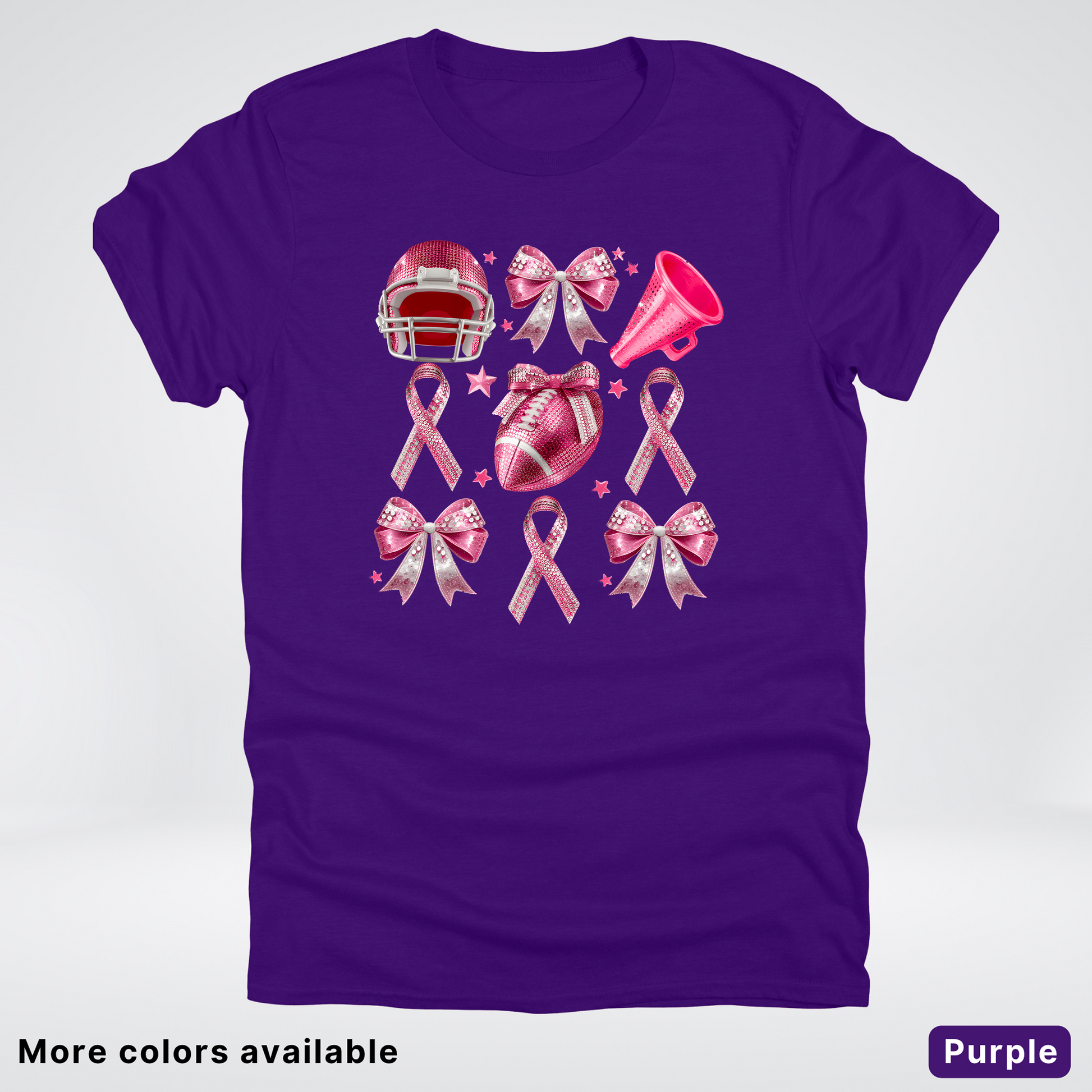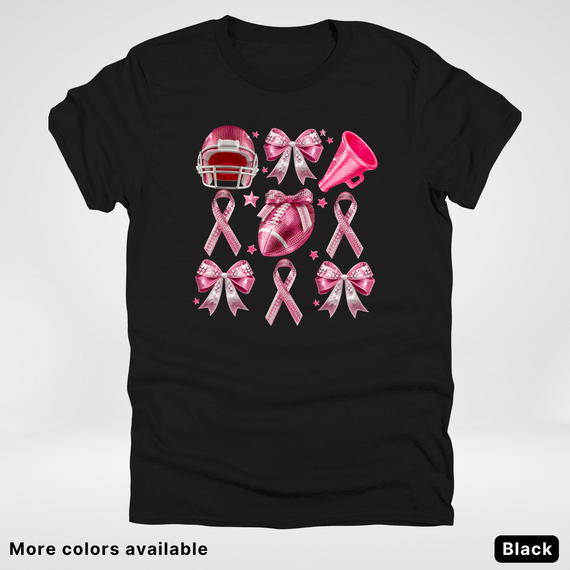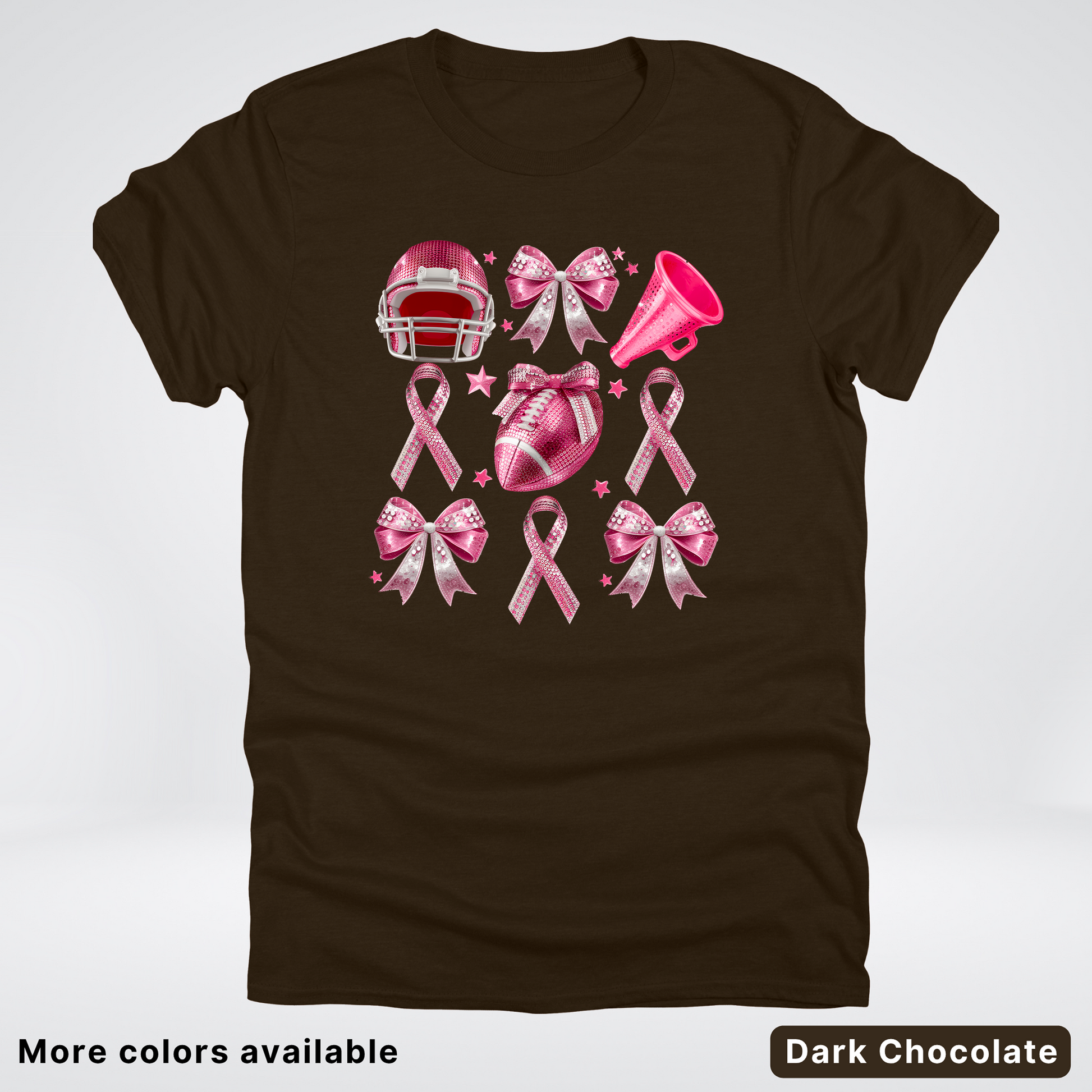 Show off your sporty side with a sparkling twist in the Coquette Glitter Bows and Football T-Shirt. This playful tee pairs glittery bows with a classic football design, making it perfect for game days or casual fun. Comfortable and stylish, it adds a touch of sparkle to your athletic spirit.
