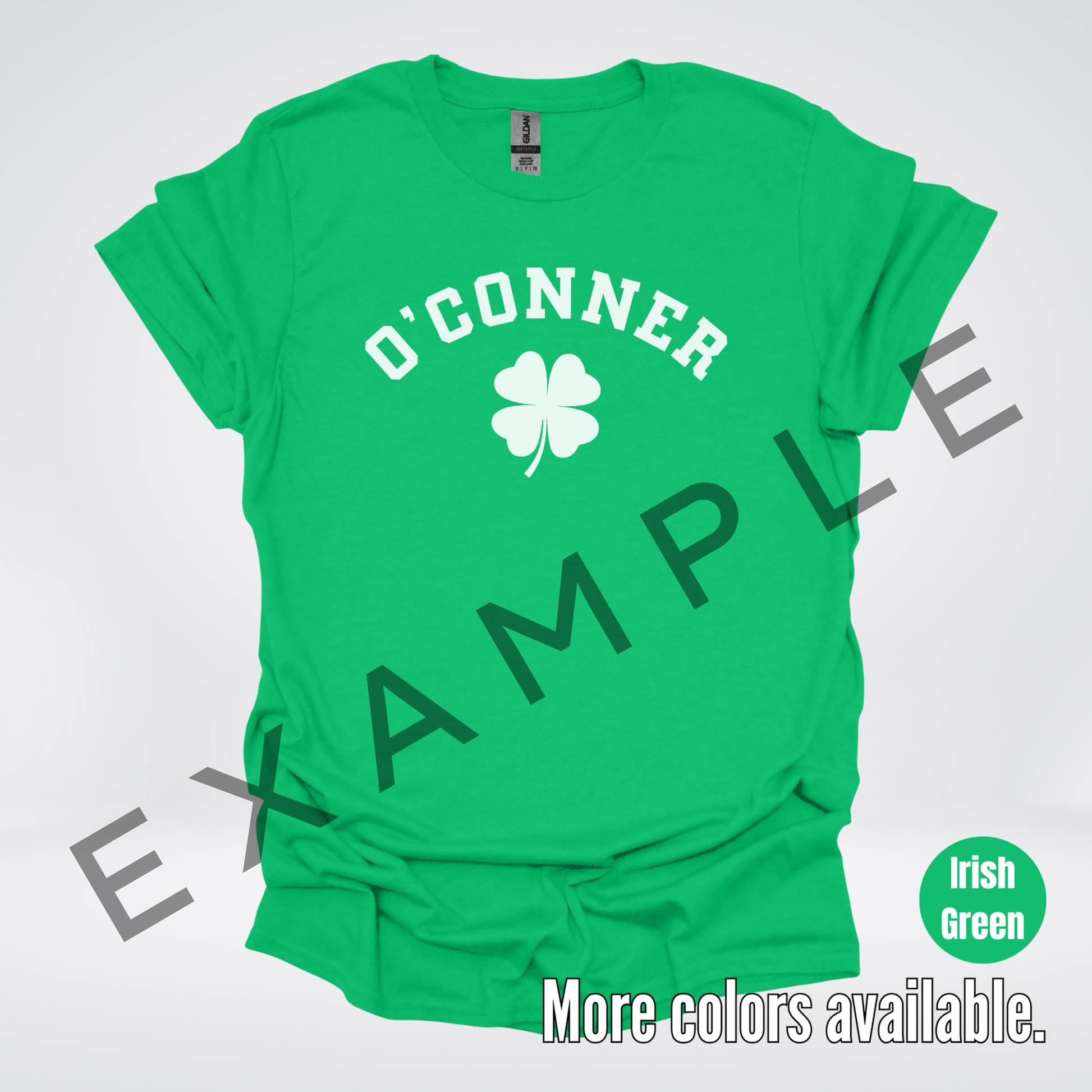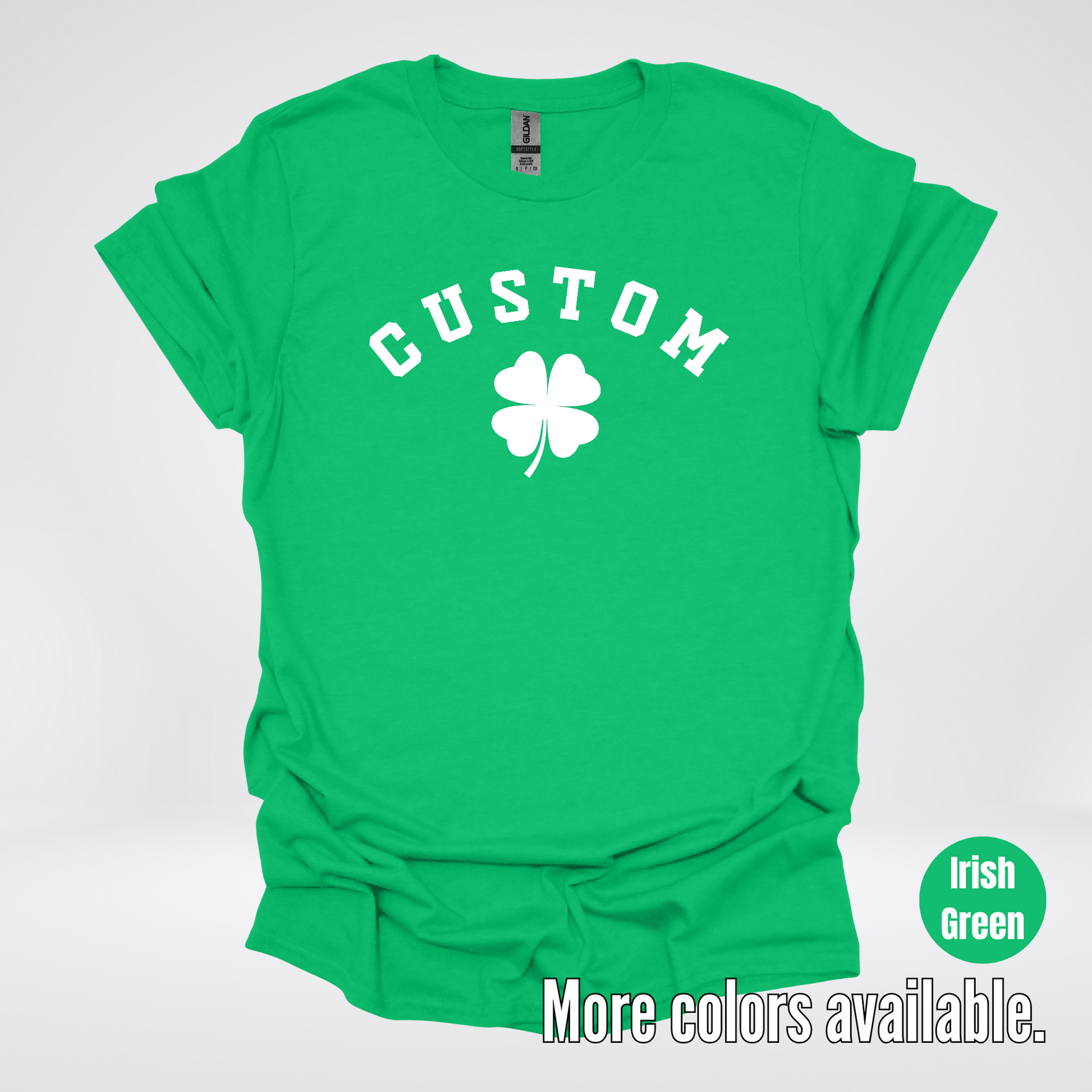 Add a personal touch to your St. Patrick's Day outfit with our Custom Last Name, Name, Nickname, Etc. & Four Leaf Clover T-Shirt. The perfect blend of style and luck, this white design is sure to make you stand out (and maybe bring you some extra good fortune). Make it uniquely yours!