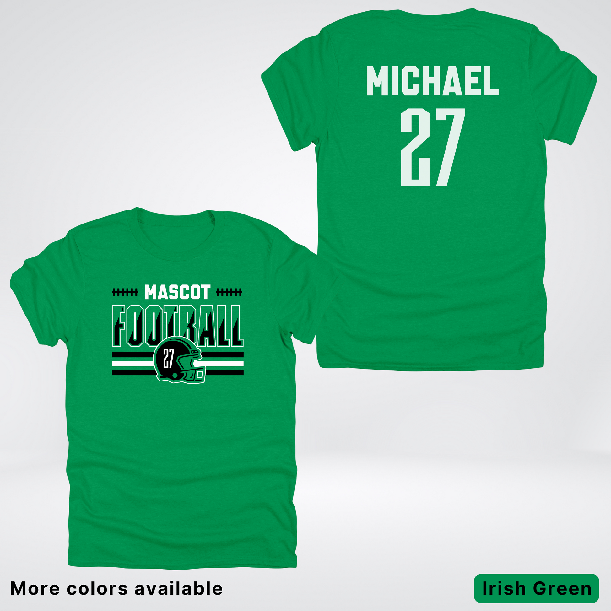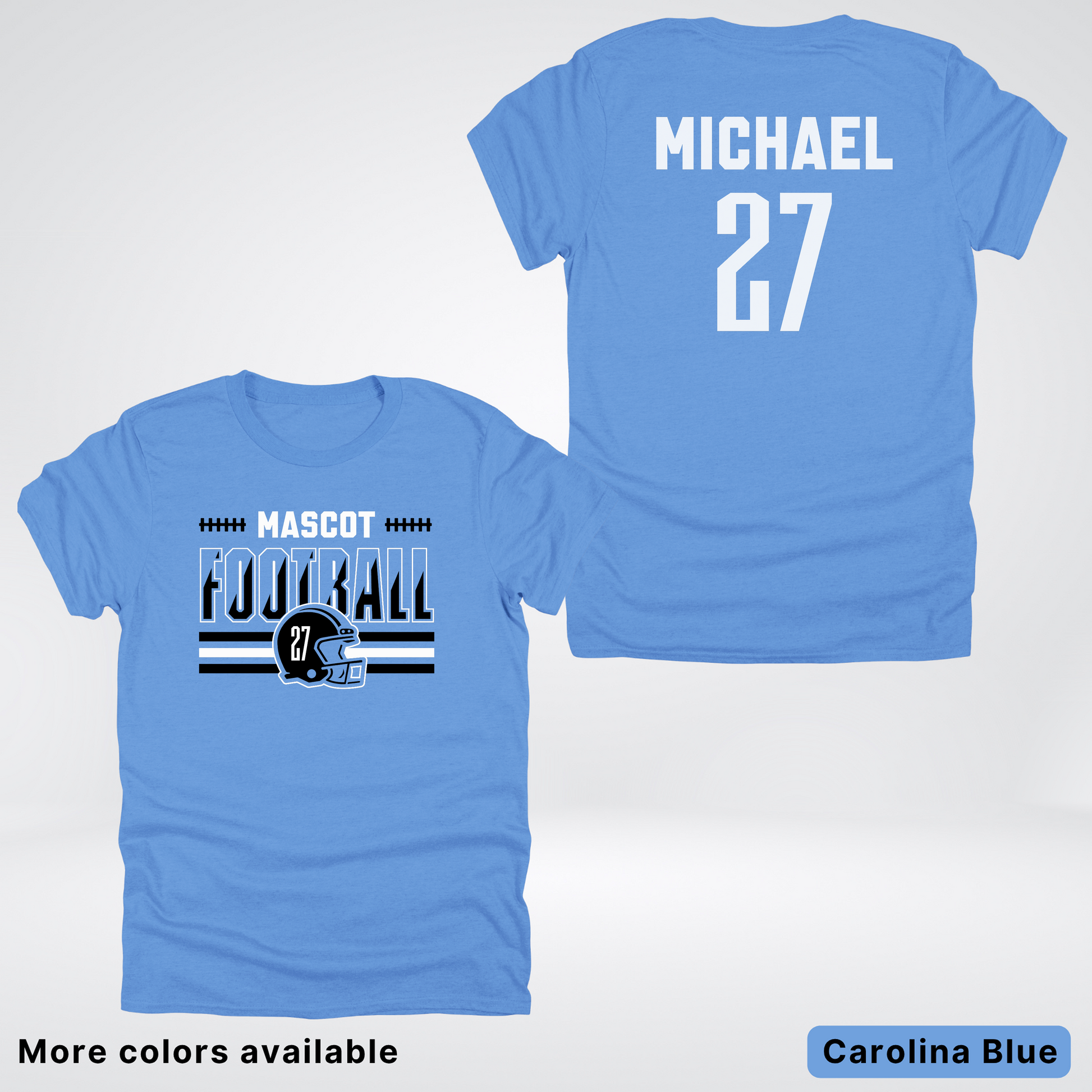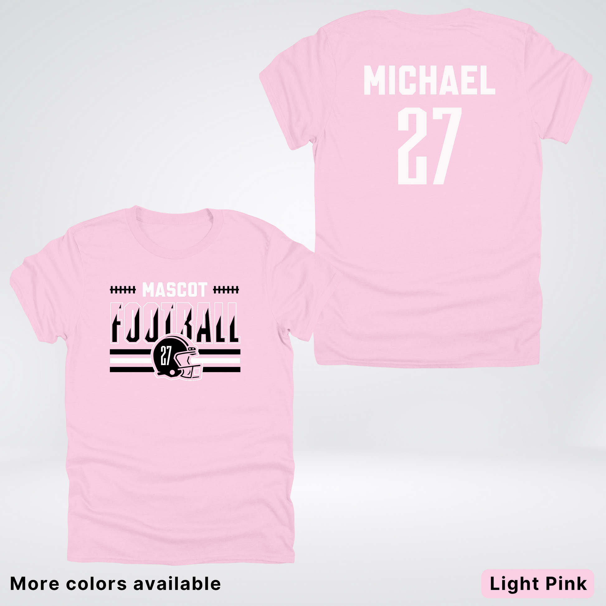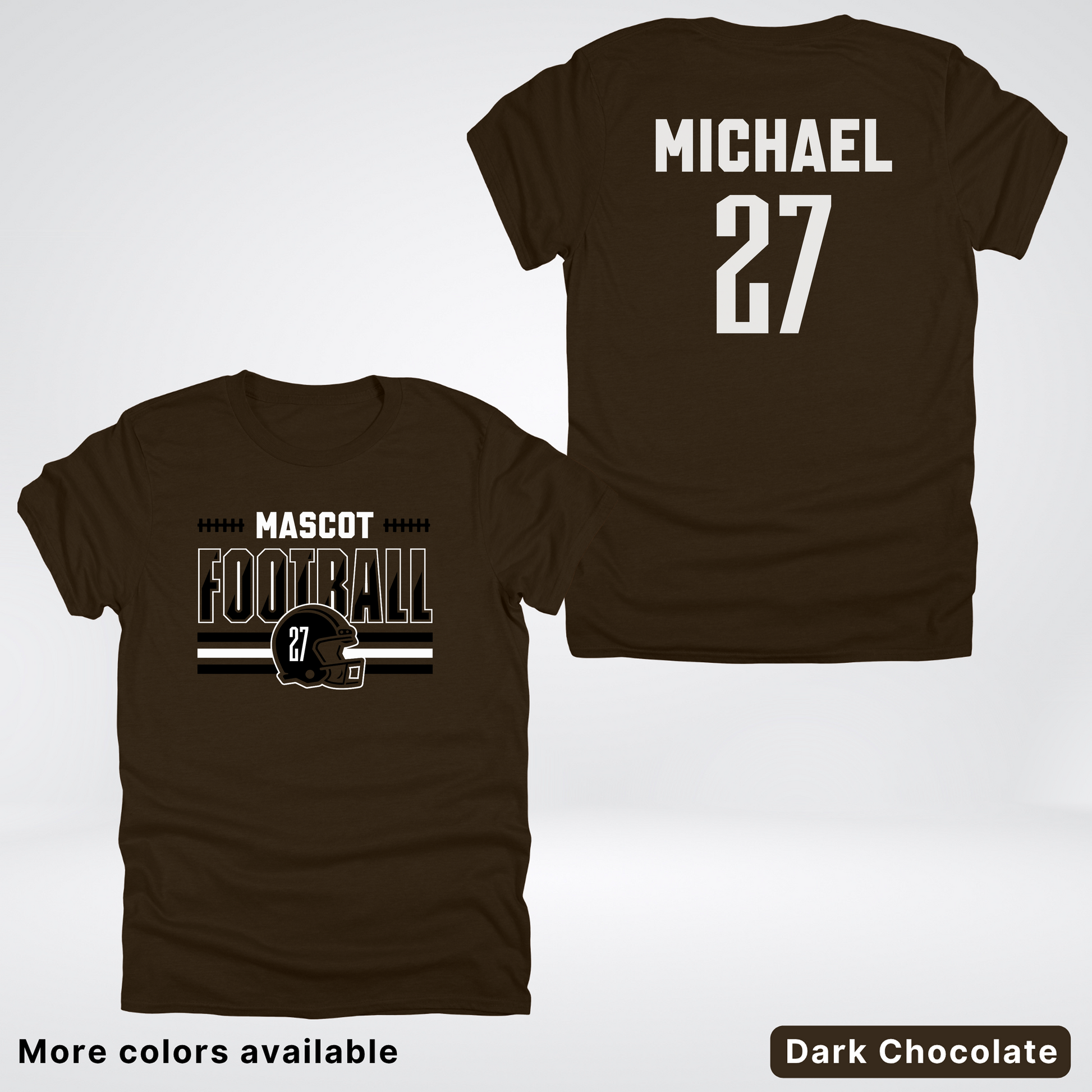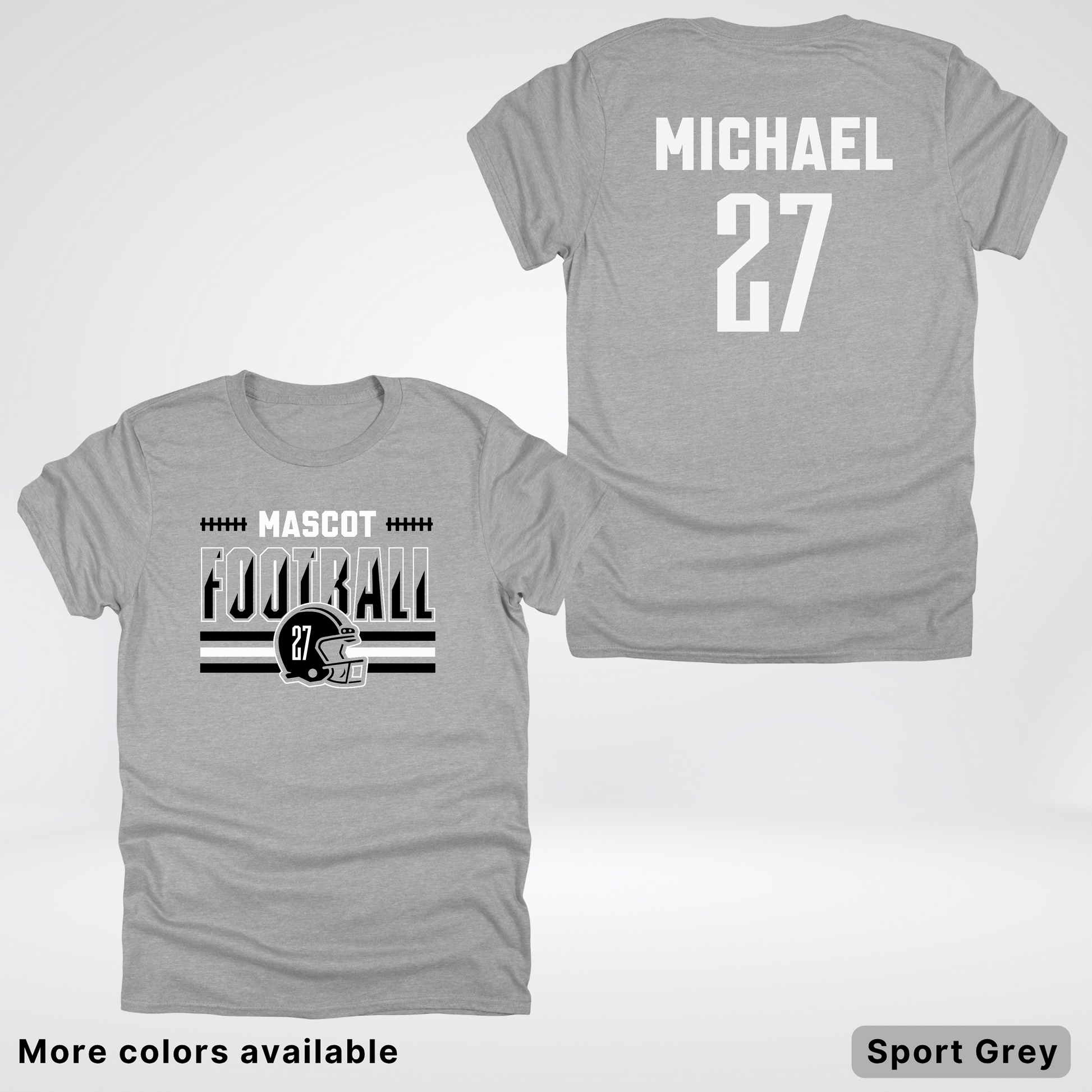 Show your team spirit in style with this customizable black football tee! Add your mascot, favorite number, and name for a personalized touch that scores every time. Perfect for game day, this comfy shirt lets you play bold while cheering loud. Wear your passion, own the field!