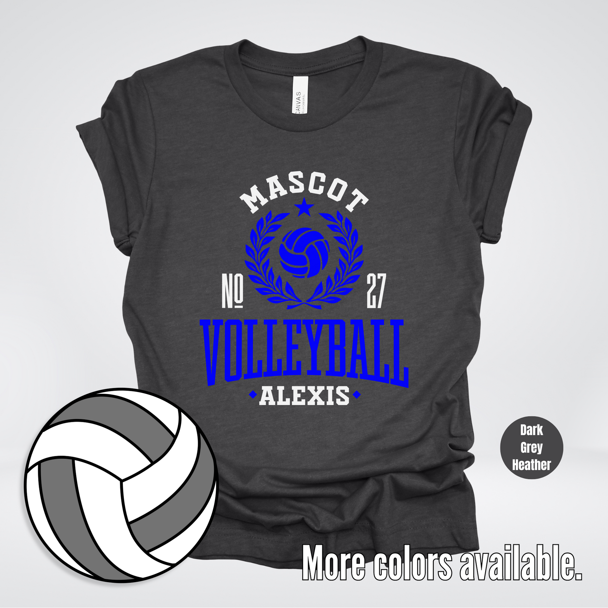 Get ready to rock the court with our Custom Mascot, Number, & Name - Blue - Volleyball Design 41 T-Shirt! Show off your team spirit and support with this personalized shirt featuring your team's mascot, number, and name in a cool blue design. Ace the competition in style!