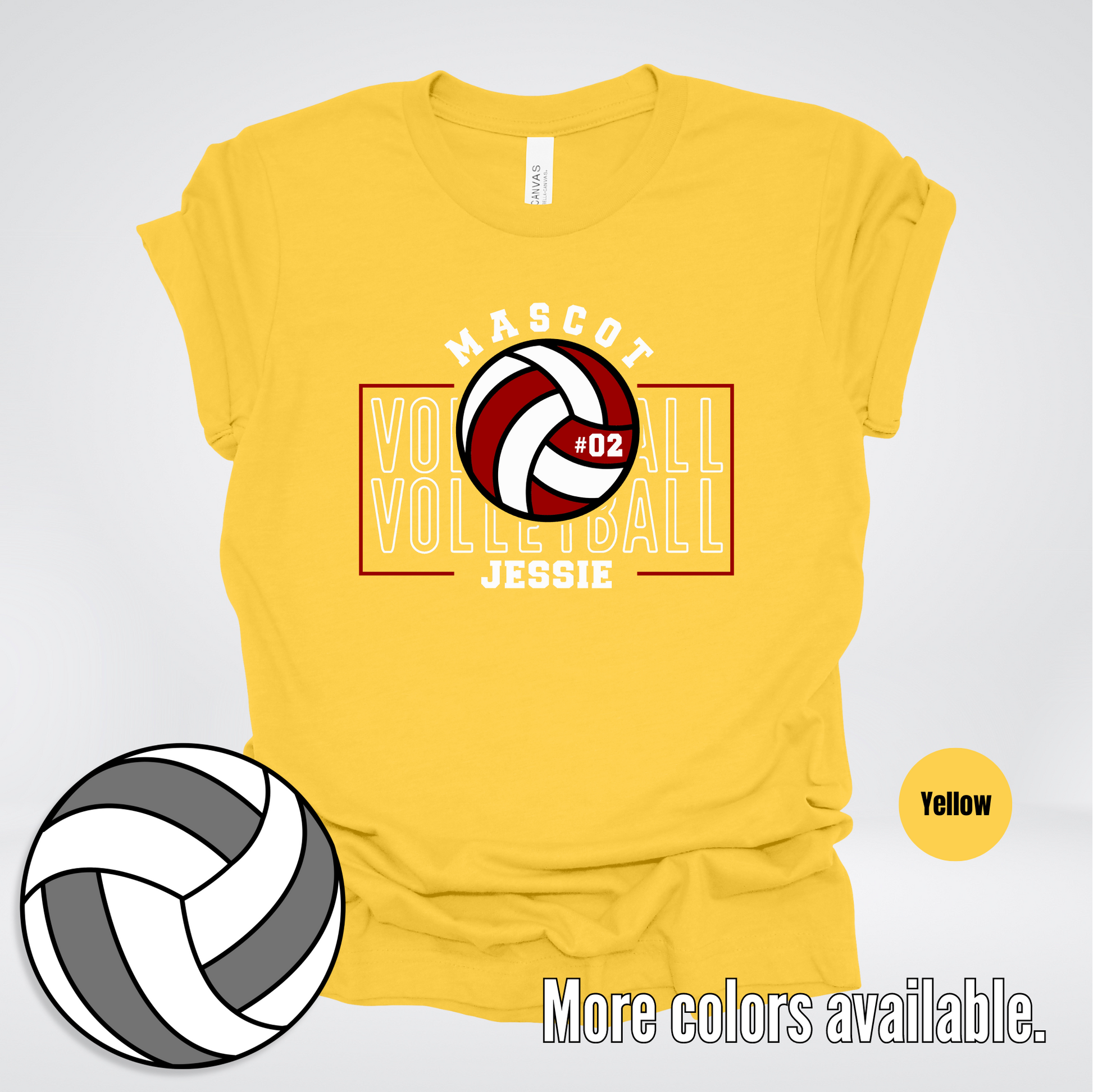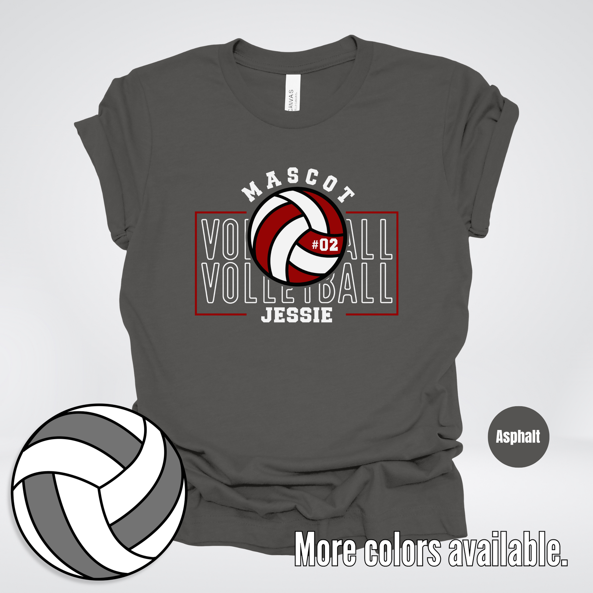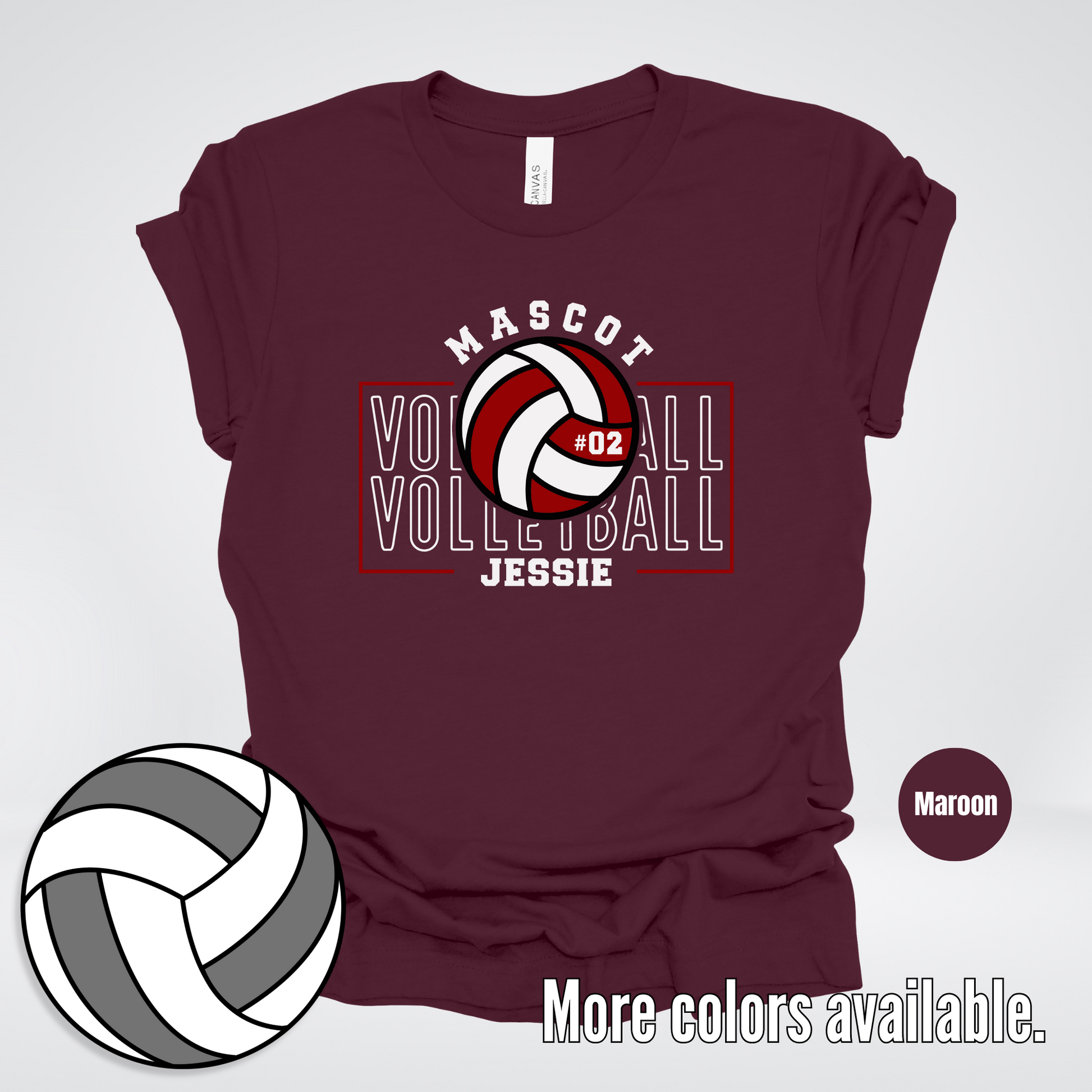 Add some personality to your game with our Custom Mascot, Number, & Name T-Shirt in maroon. Show off your team's uniqueness with this playful Volleyball Design 2 shirt! (Features: Customizable Mascot, Number, & Name)