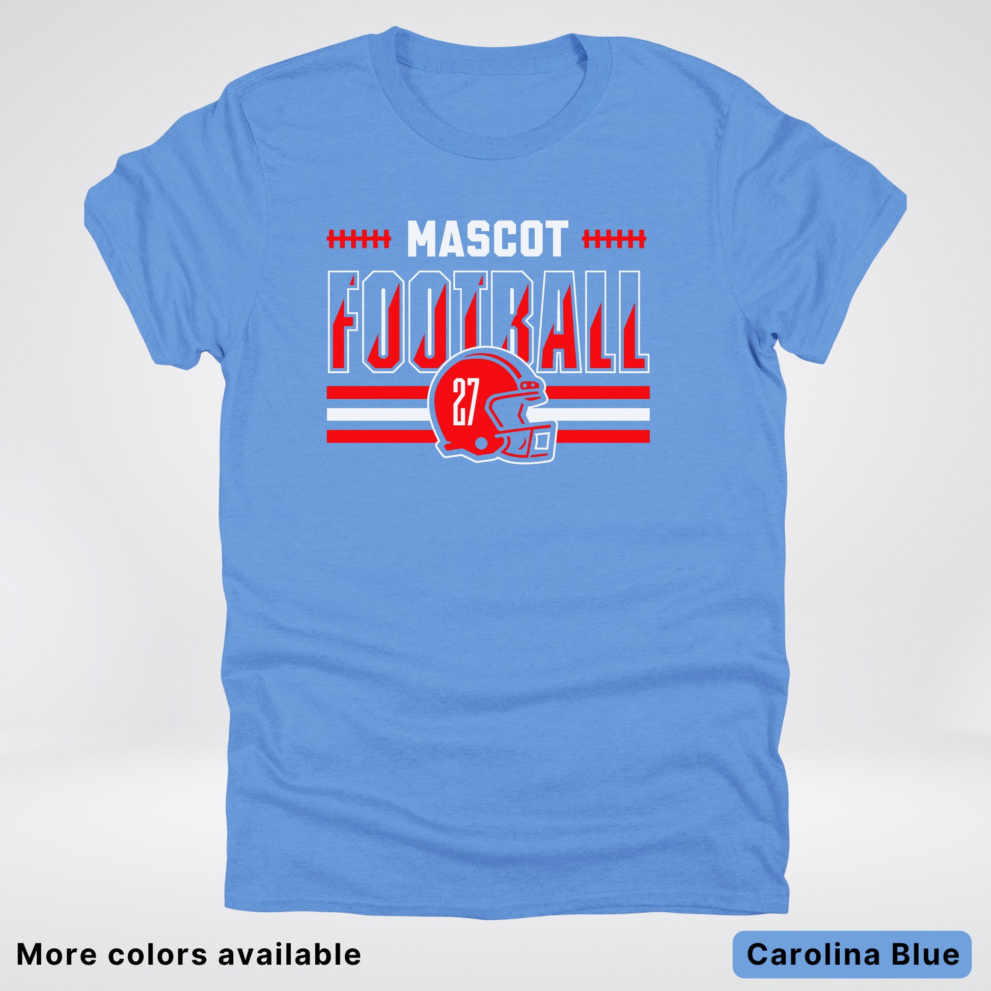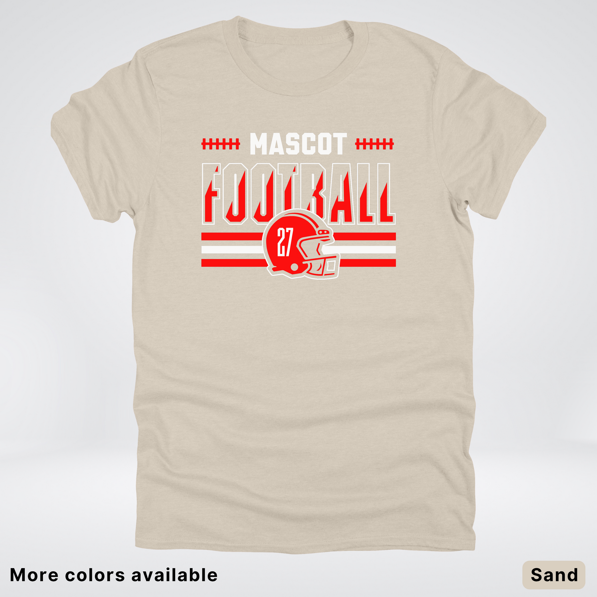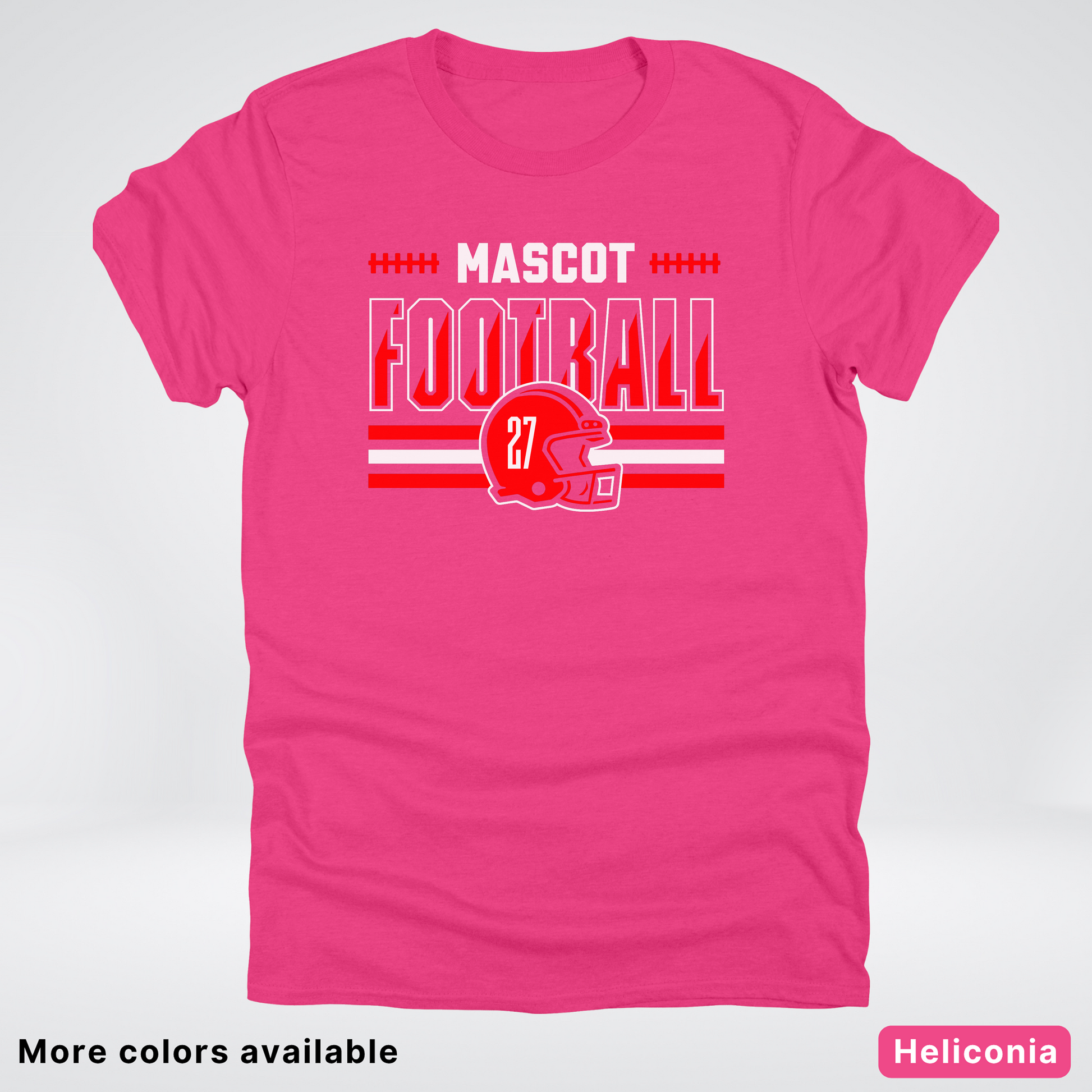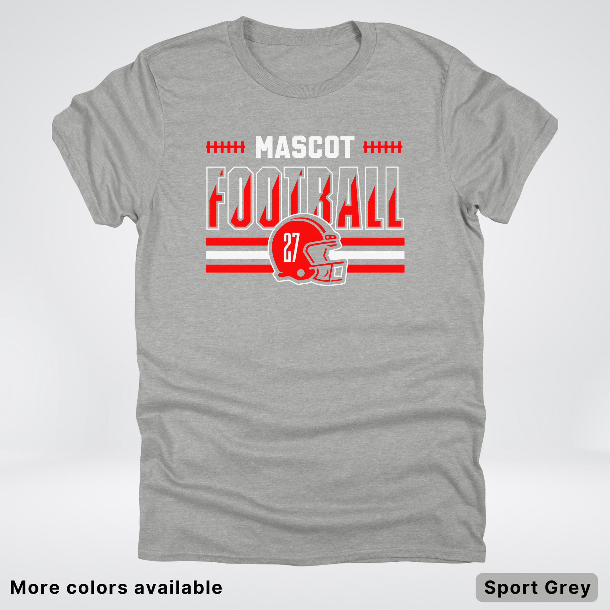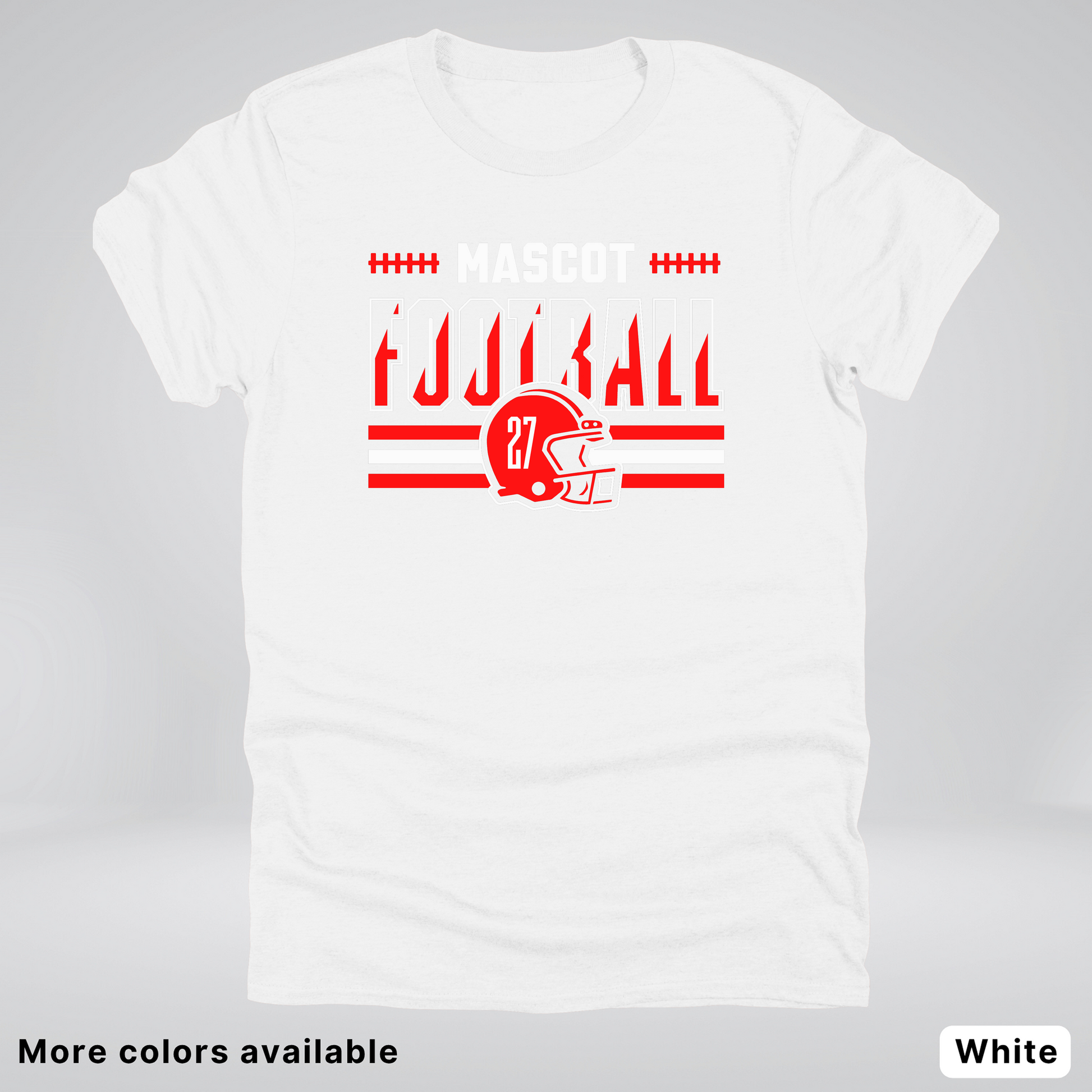 Show your team spirit with this vibrant red football T-shirt featuring a customizable mascot and number. Perfect for game days or casual wear, it lets you personalize your look while staying comfortable. Get ready to cheer in style and stand out on and off the field!