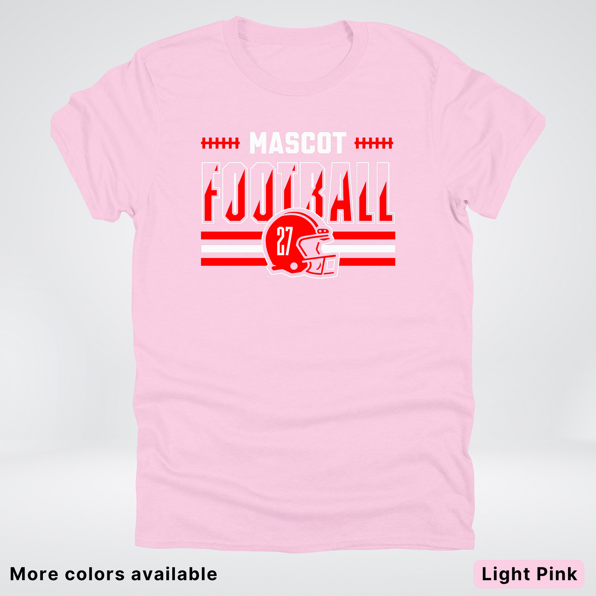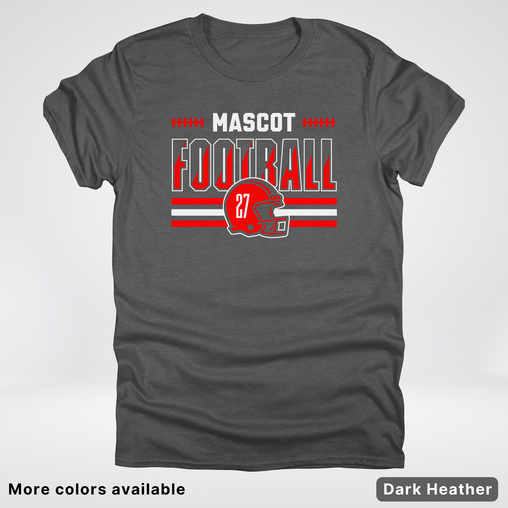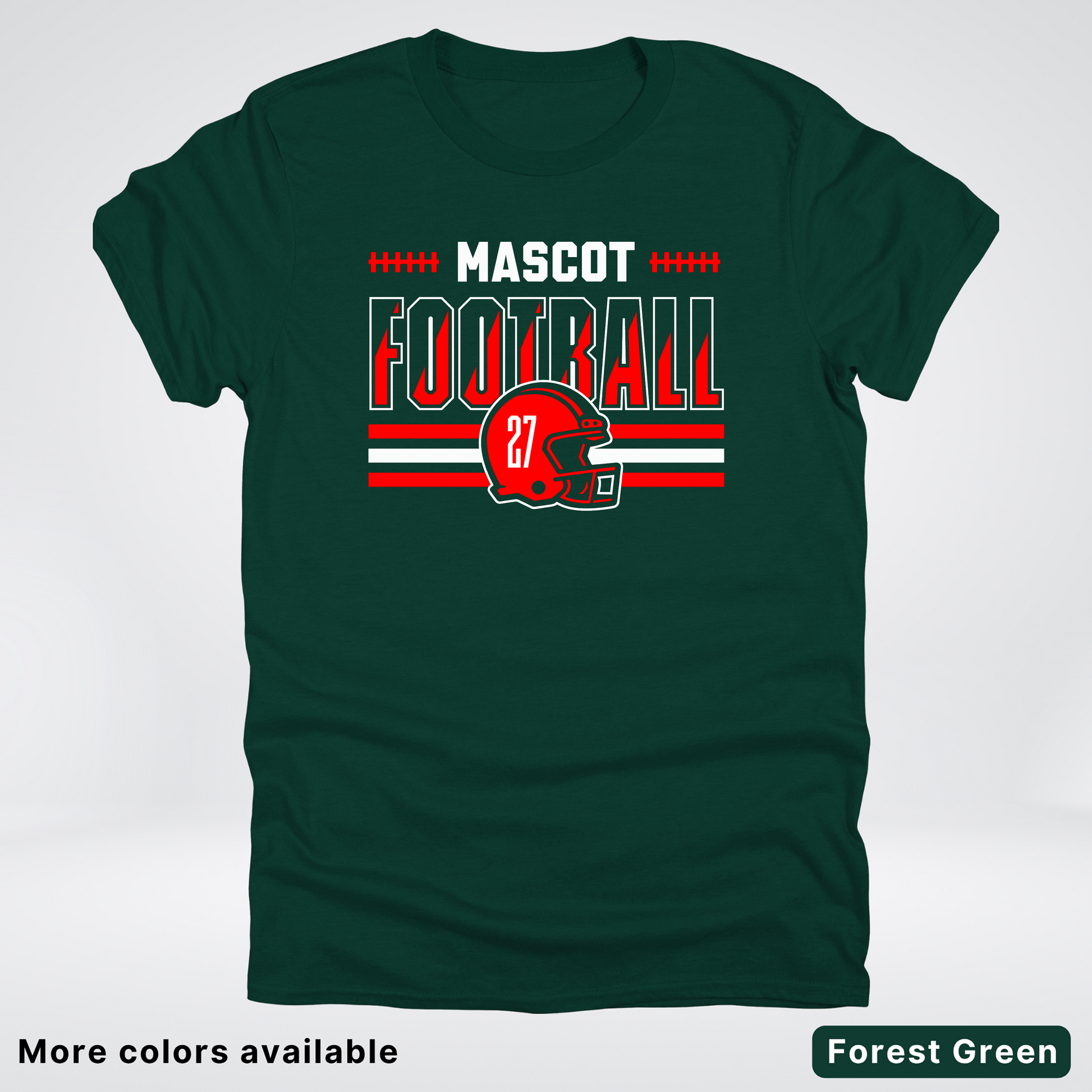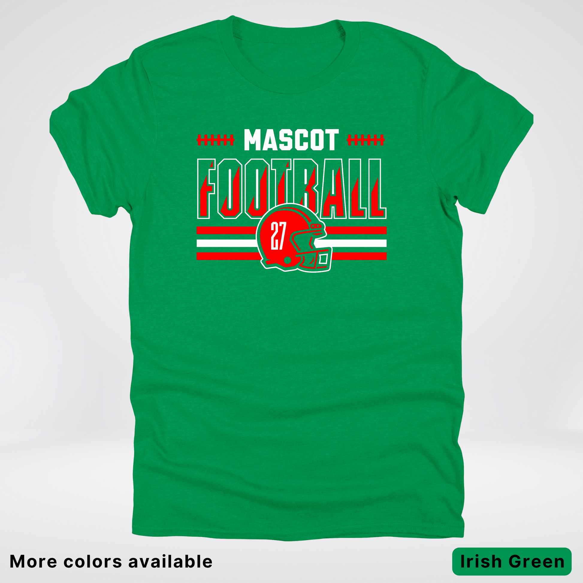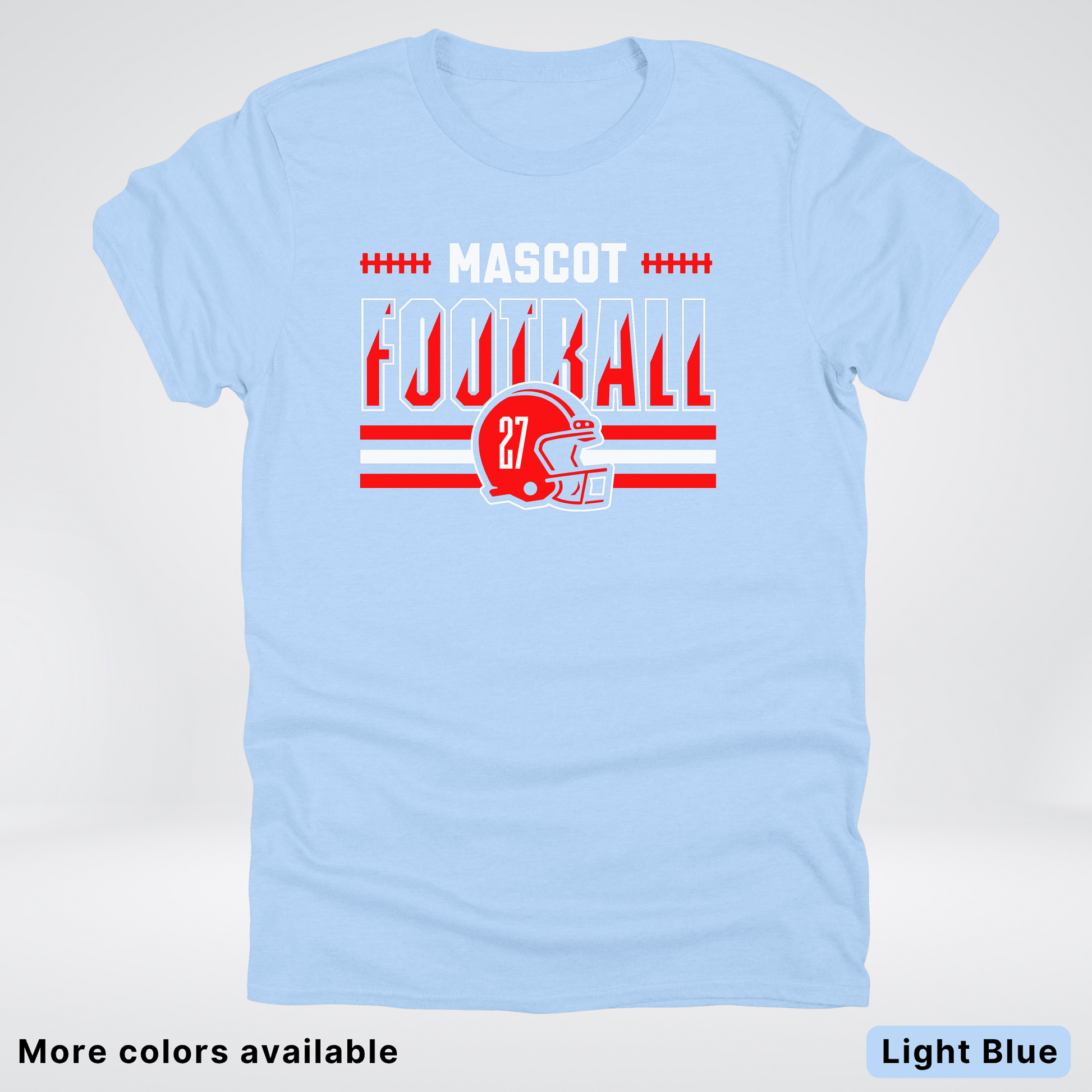 Show your team spirit with this vibrant red football T-shirt featuring a customizable mascot and number. Perfect for game days or casual wear, it lets you personalize your look while staying comfortable. Get ready to cheer in style and stand out on and off the field!