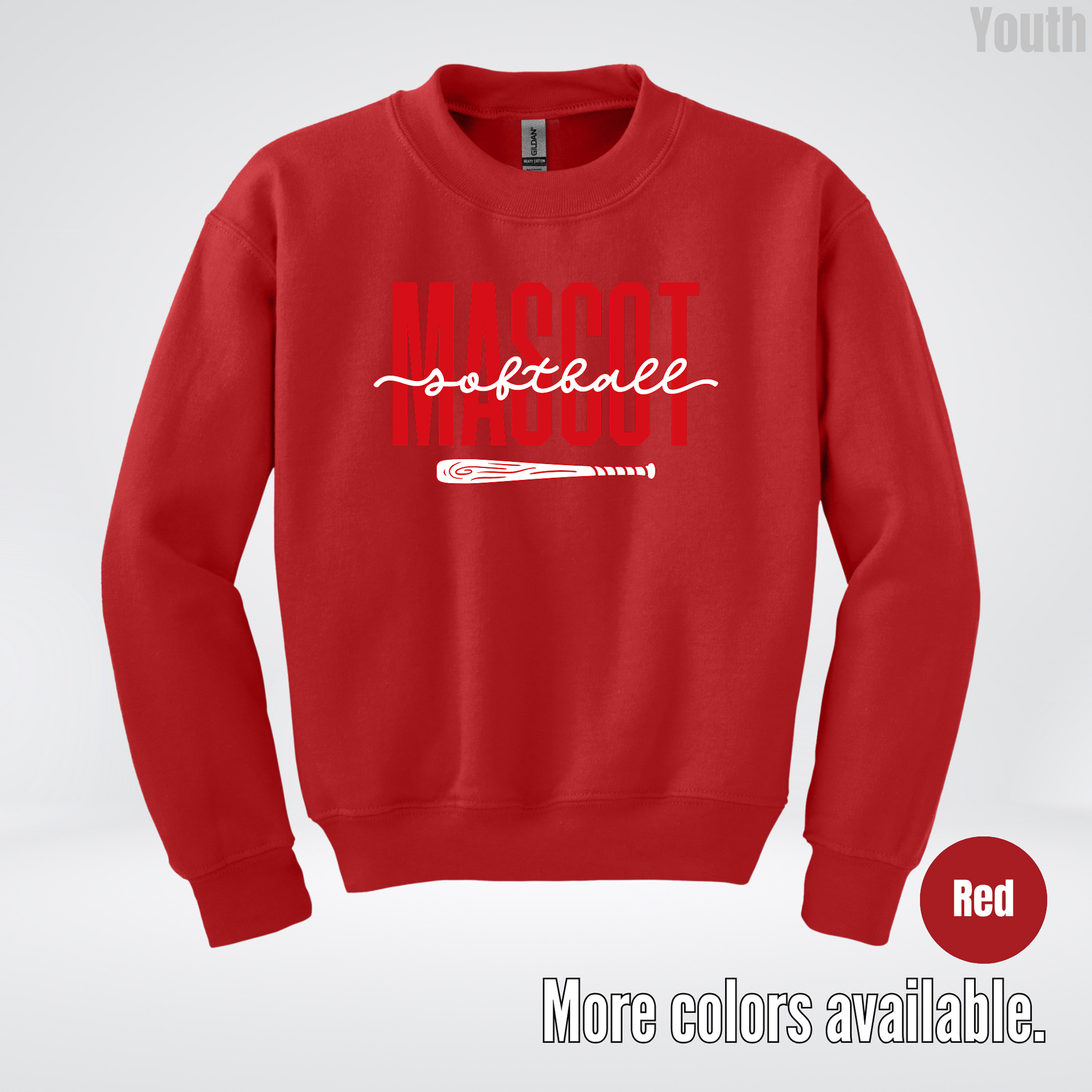 Custom Mascot – Red - Softball Design 28 Youth Crewneck Sweatshirt
