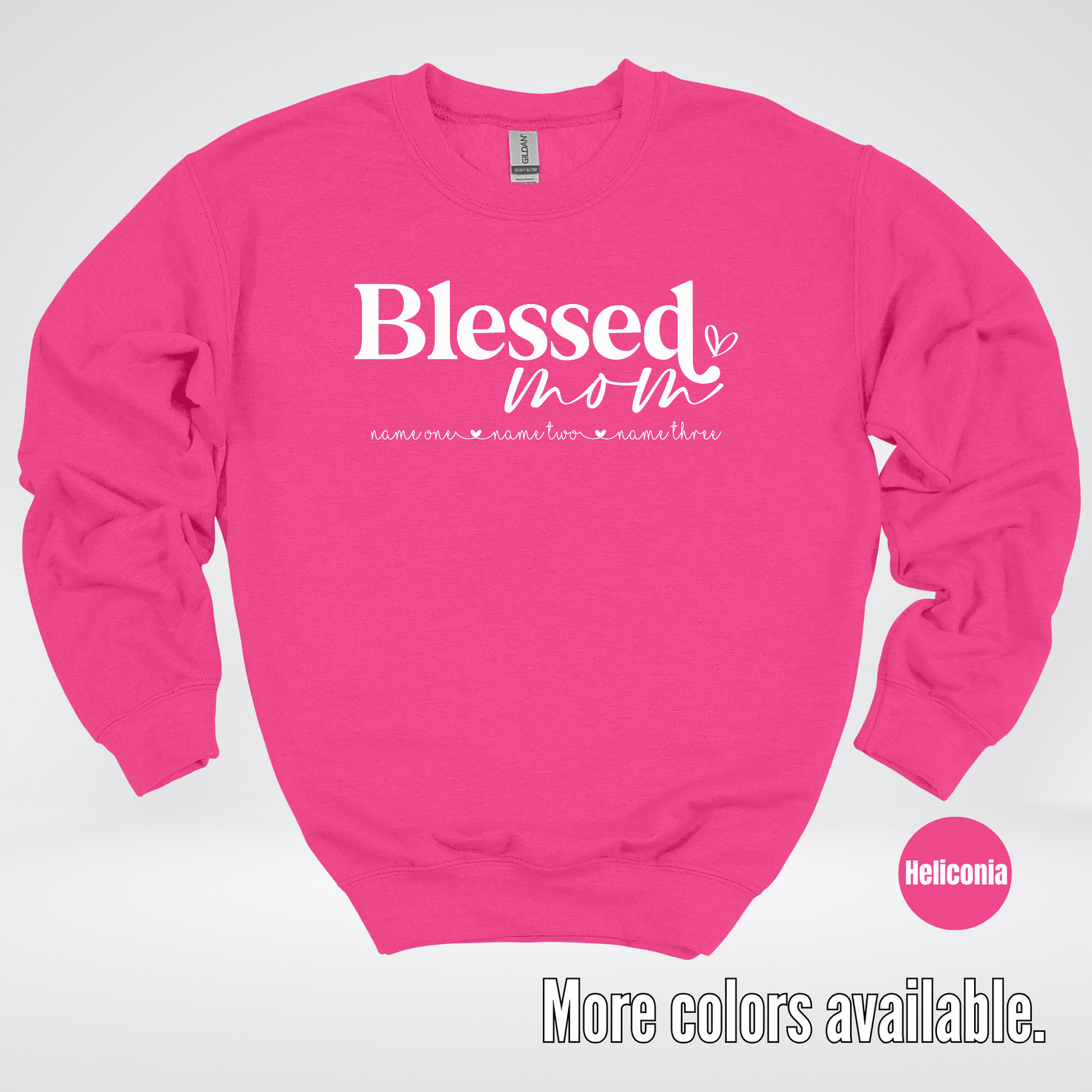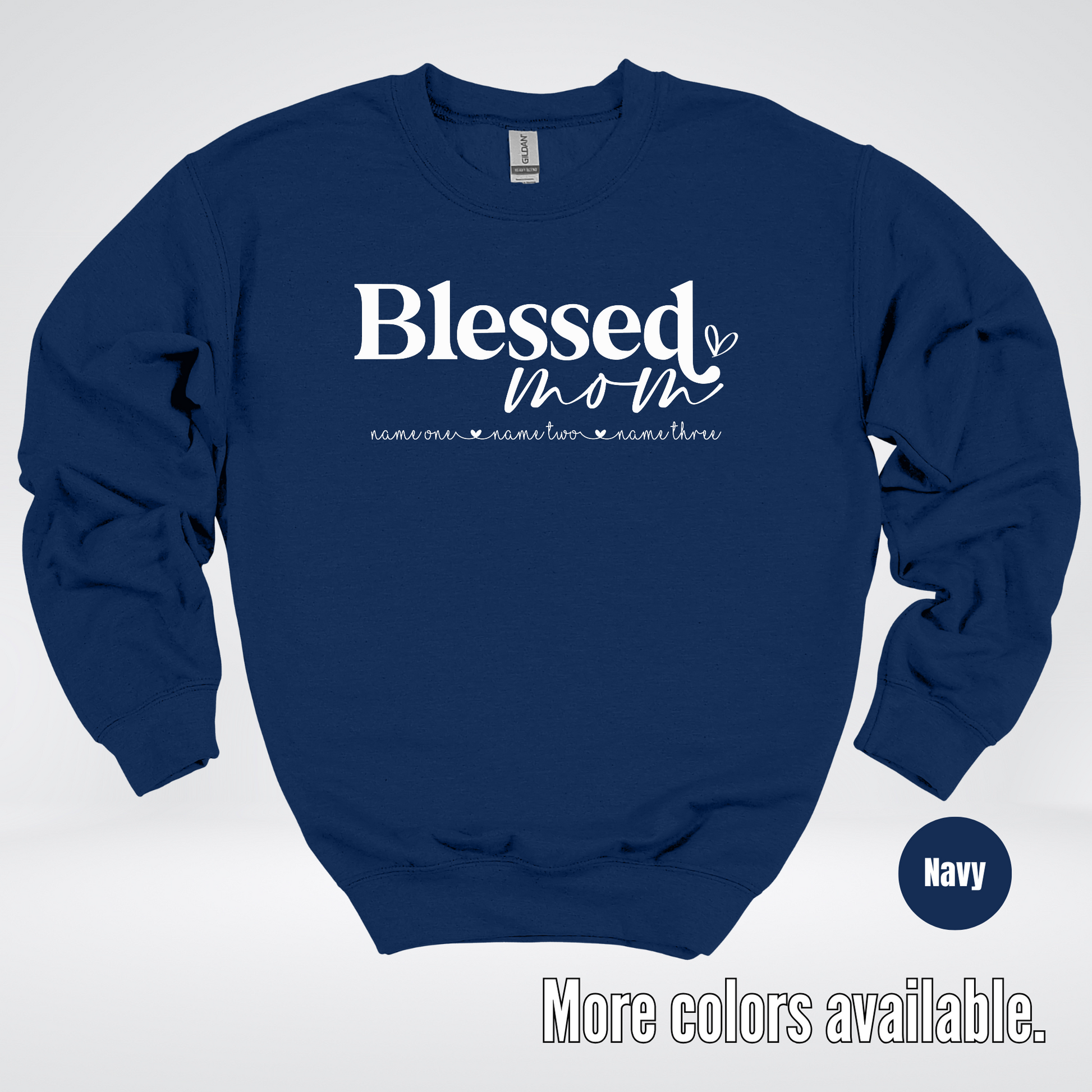 Custom Names Blessed Mom - White Design - Crewneck Sweatshirt
