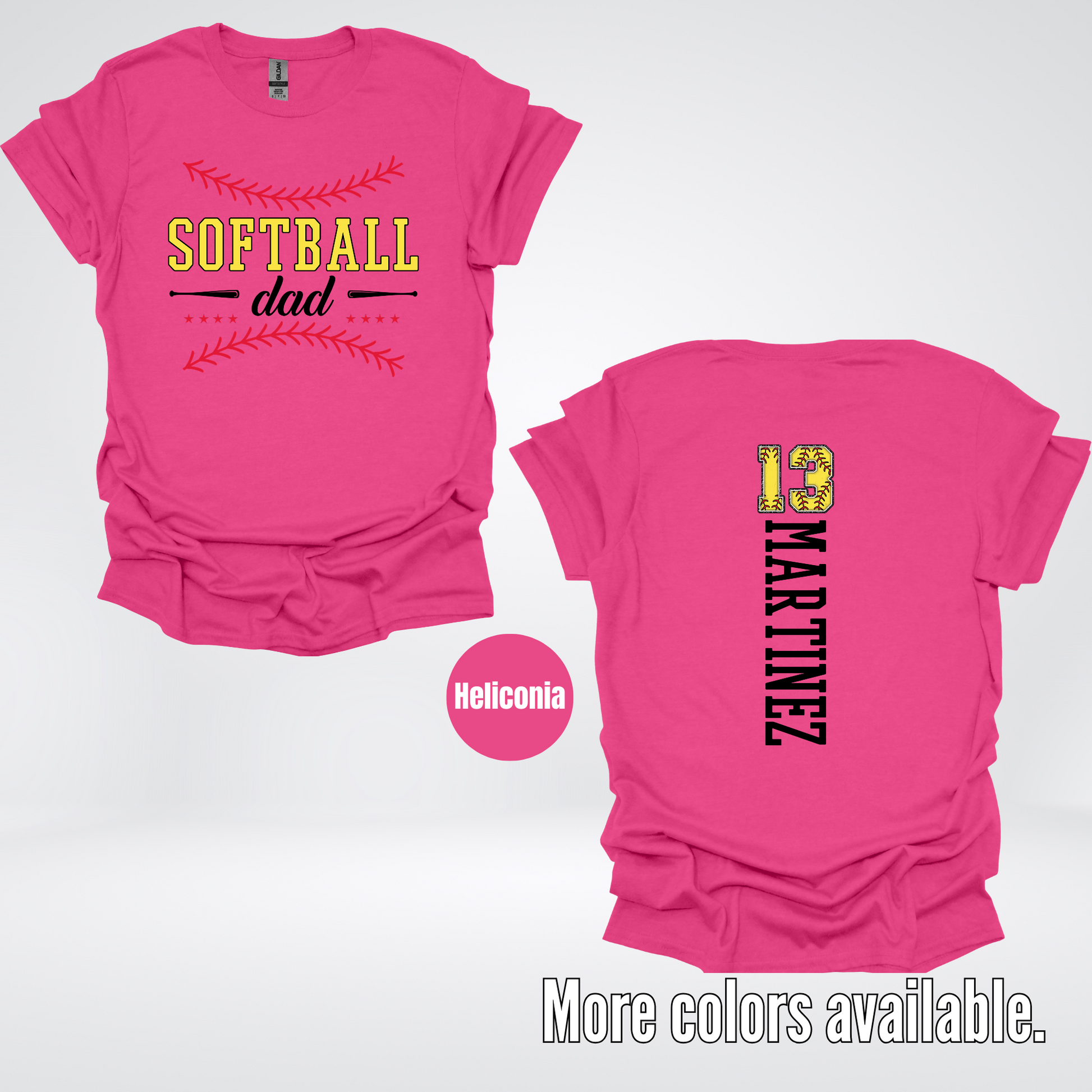 Get ready to cheer for your softball player with this CUSTOM Softball Dad Number And Name T-Shirt! Show off your team spirit with a unique shirt customized with your player's name and number. Perfect for wearing to games or as a proud parent on the sidelines. Go team!