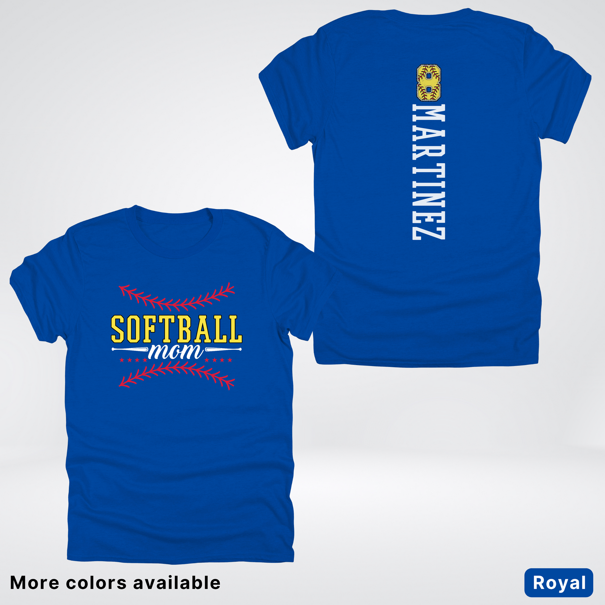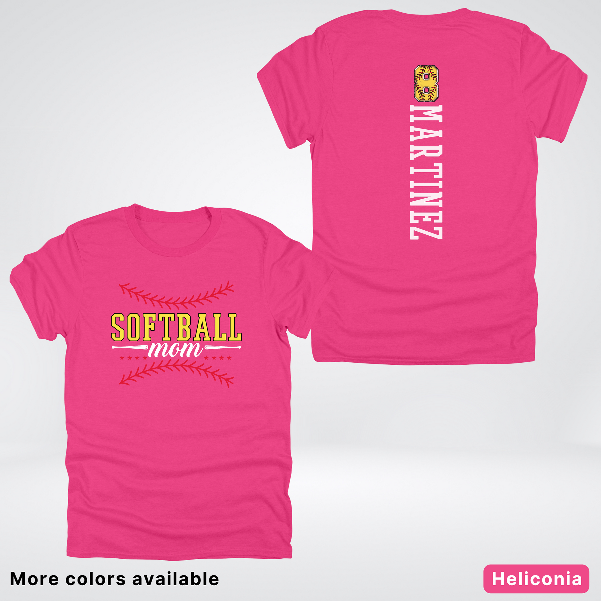 Show your team spirit with this CUSTOM Softball Mom T-shirt featuring your chosen number and name in bold white lettering. Perfect for cheering from the sidelines, it combines comfort with personalized flair to make every game day extra special. Wear it proud and let everyone know who’s the biggest fan!