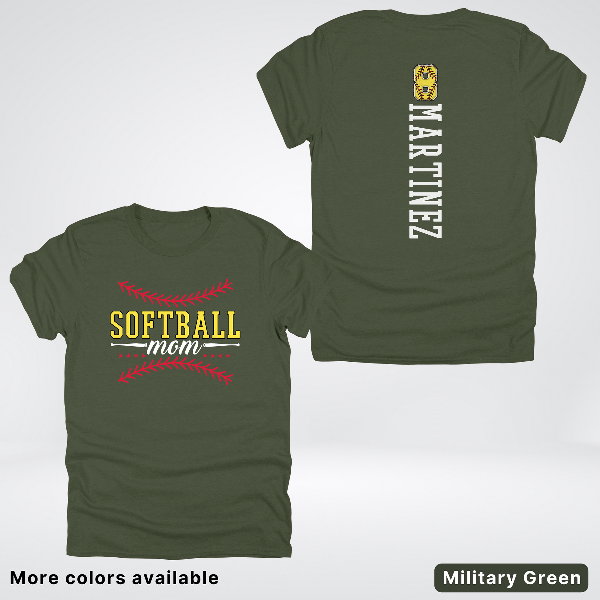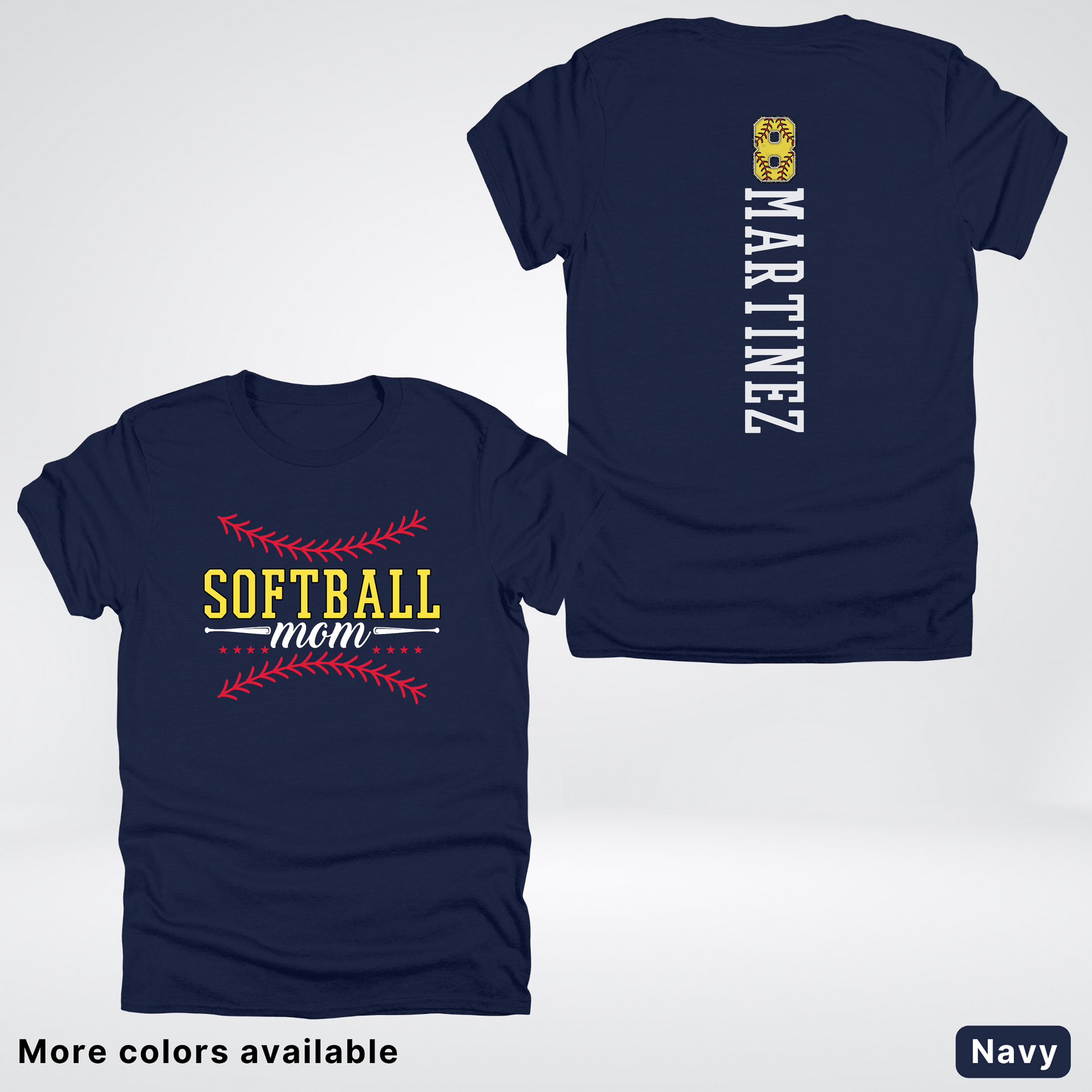 CUSTOM Softball Mom Number & Name- White Lettering - T-Shirt