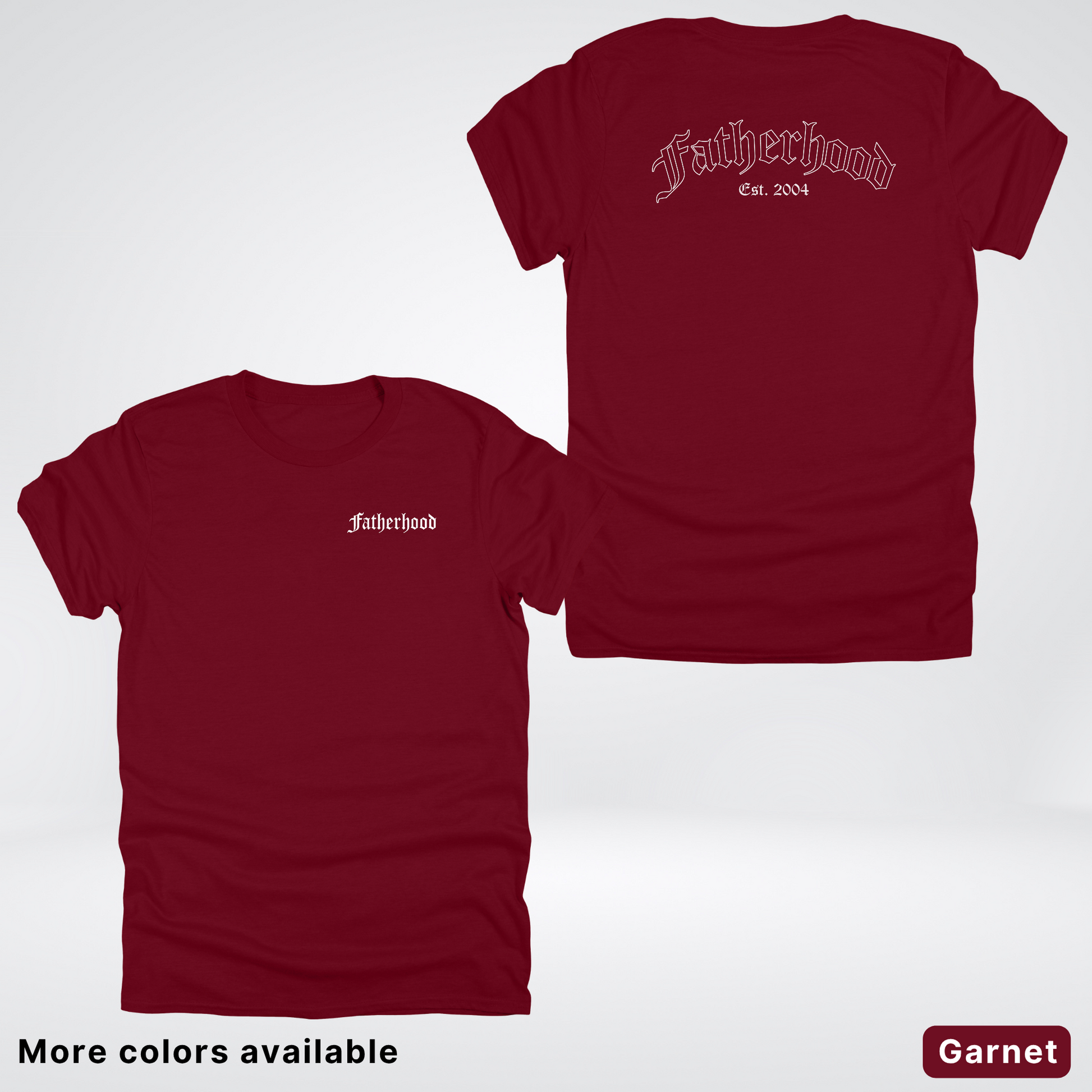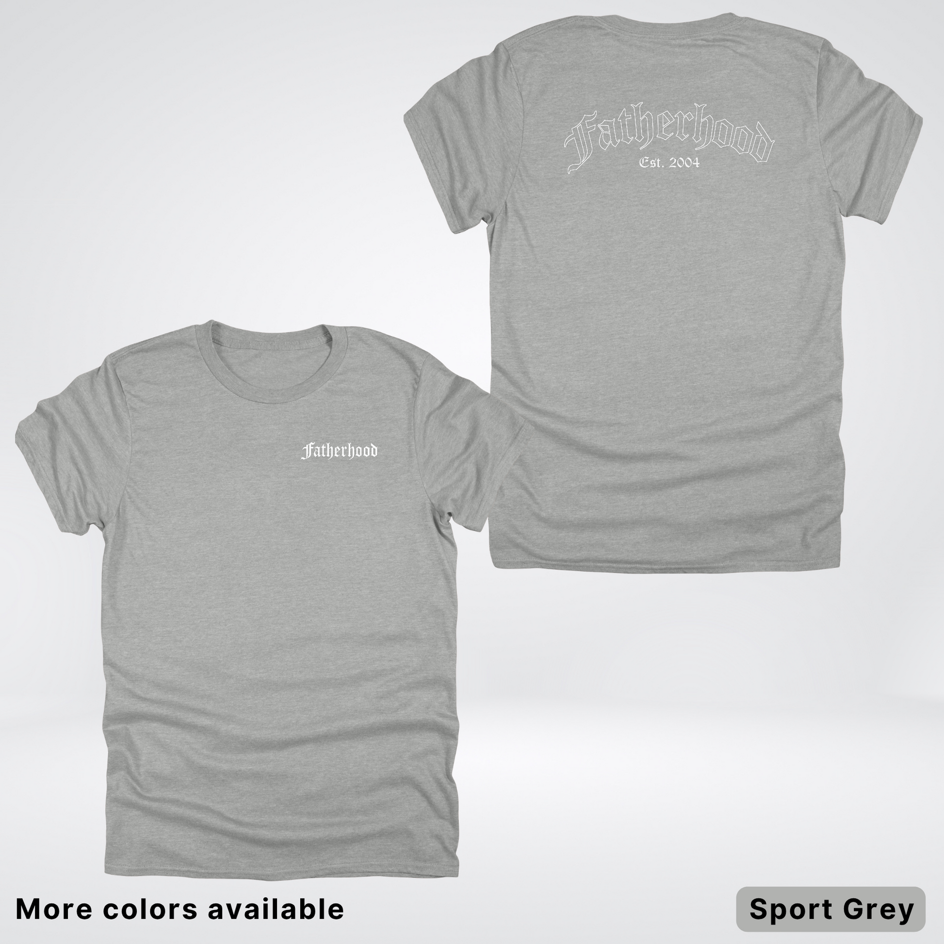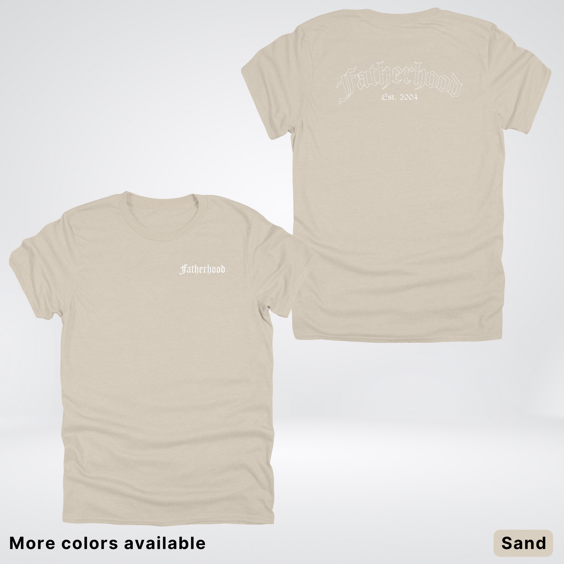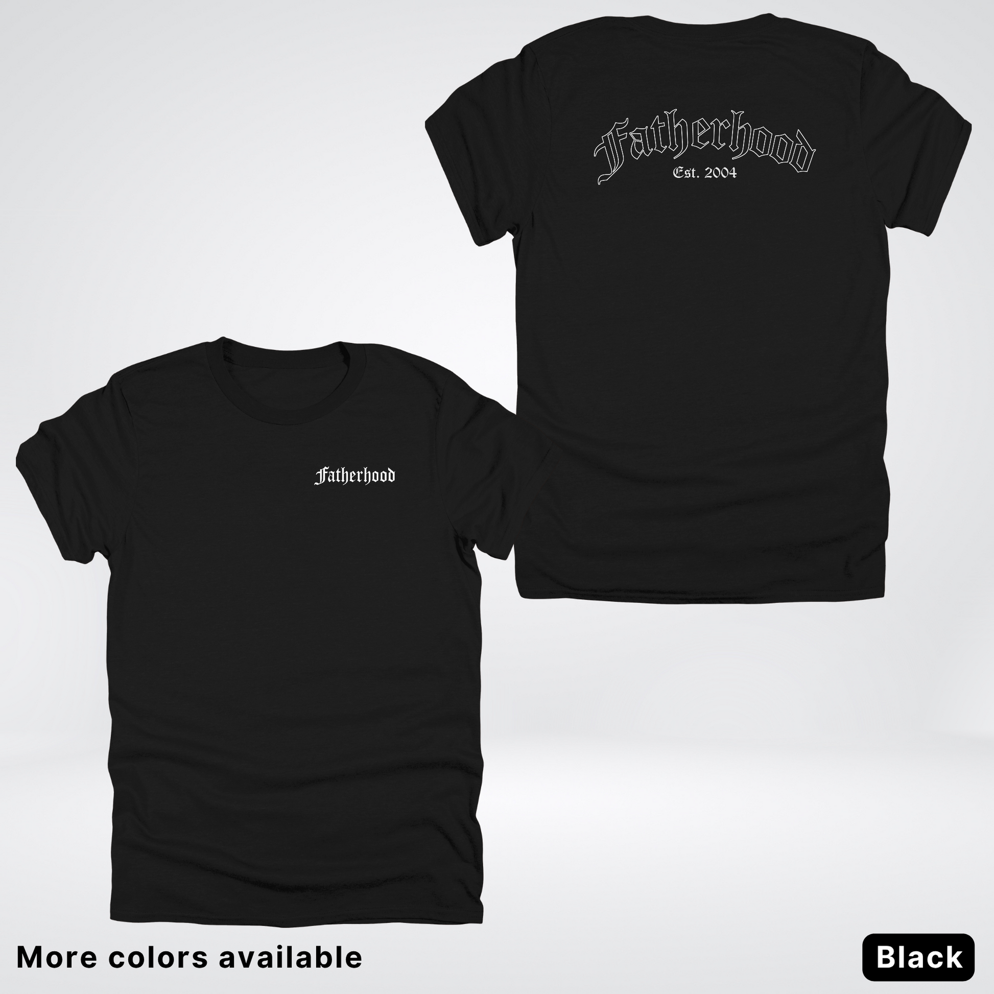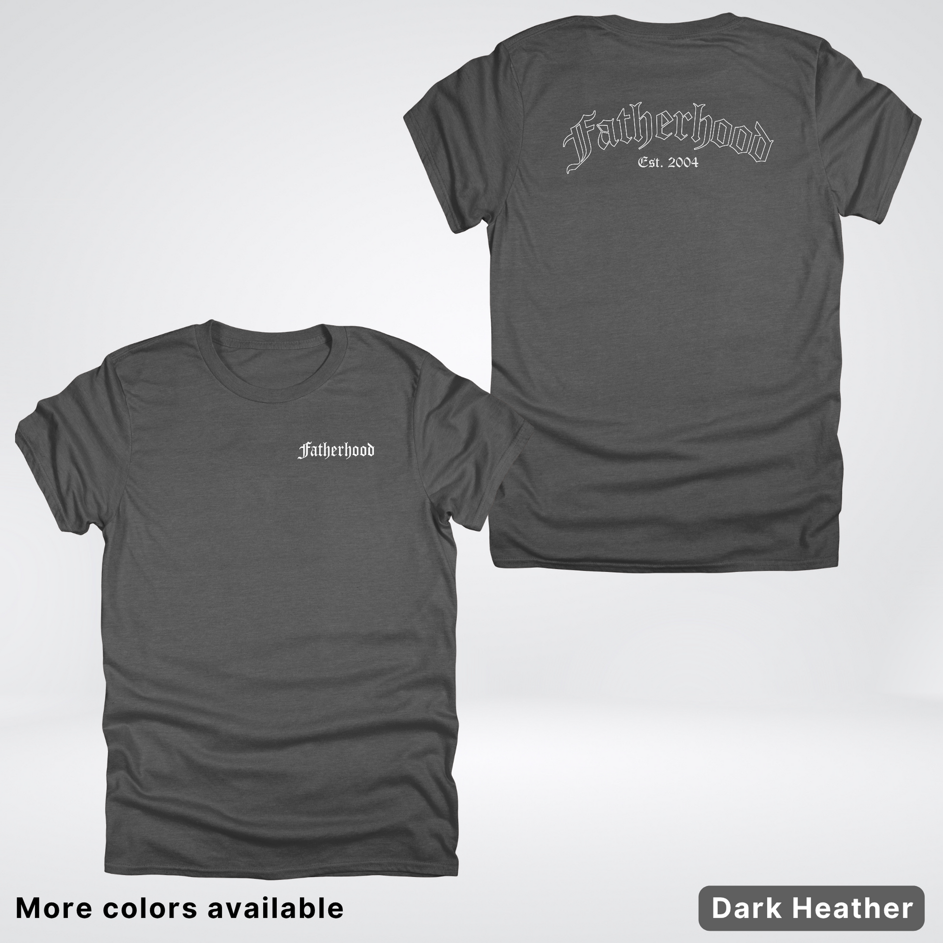 Celebrate Dad's journey with our personalized Father's Day tee! This custom shirt features an elegant white "Fatherhood" design in classic Old English lettering, paired with your choice of year to mark his parenting milestone. Perfect for first-time dads or seasoned fathers, it's a playful way to showcase his dad status while keeping his style game strong. A gift he'll actually want to wear!