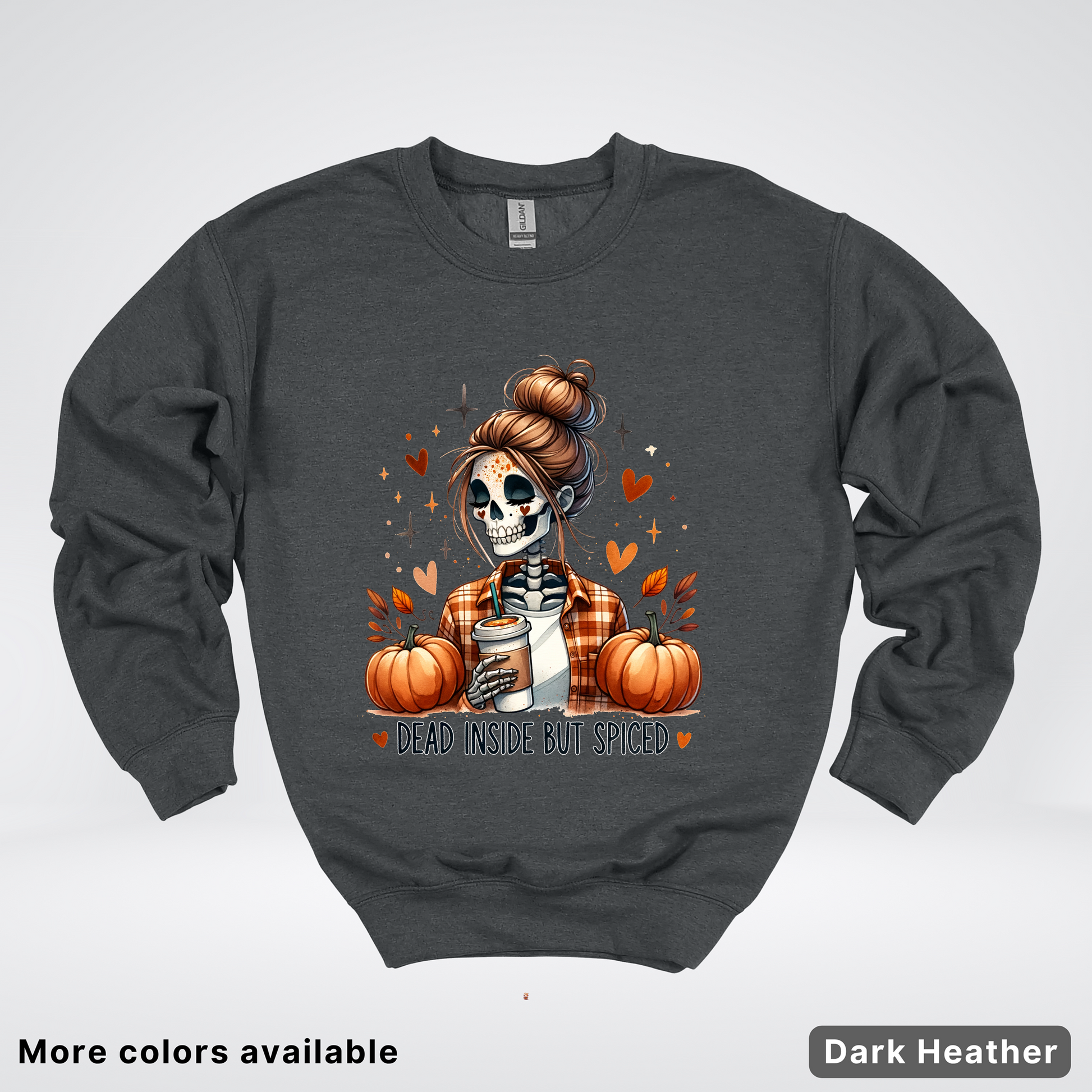 Dead Inside But Spiced Skeleton Coffee Pumpkin Fall - Crewneck Sweatshirt