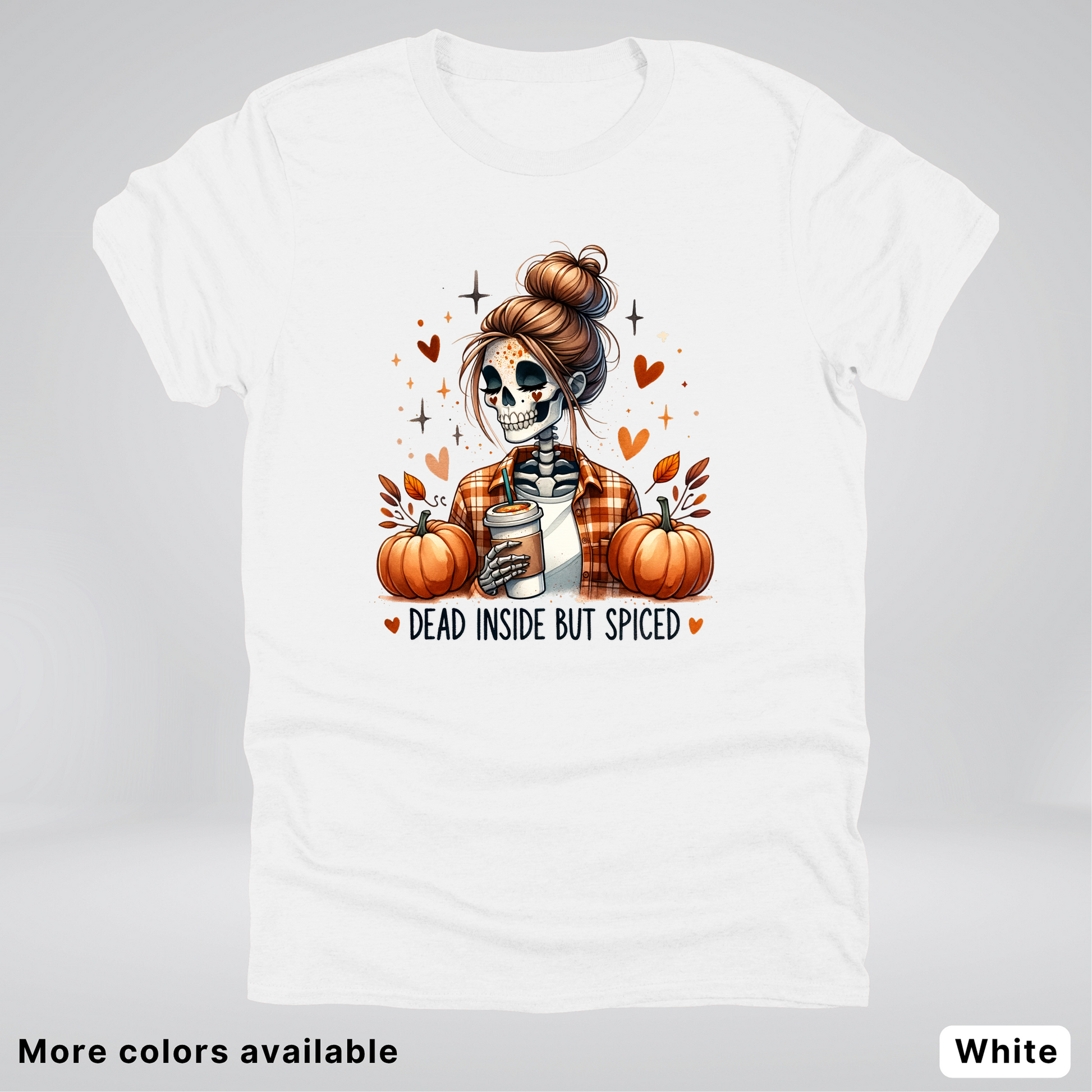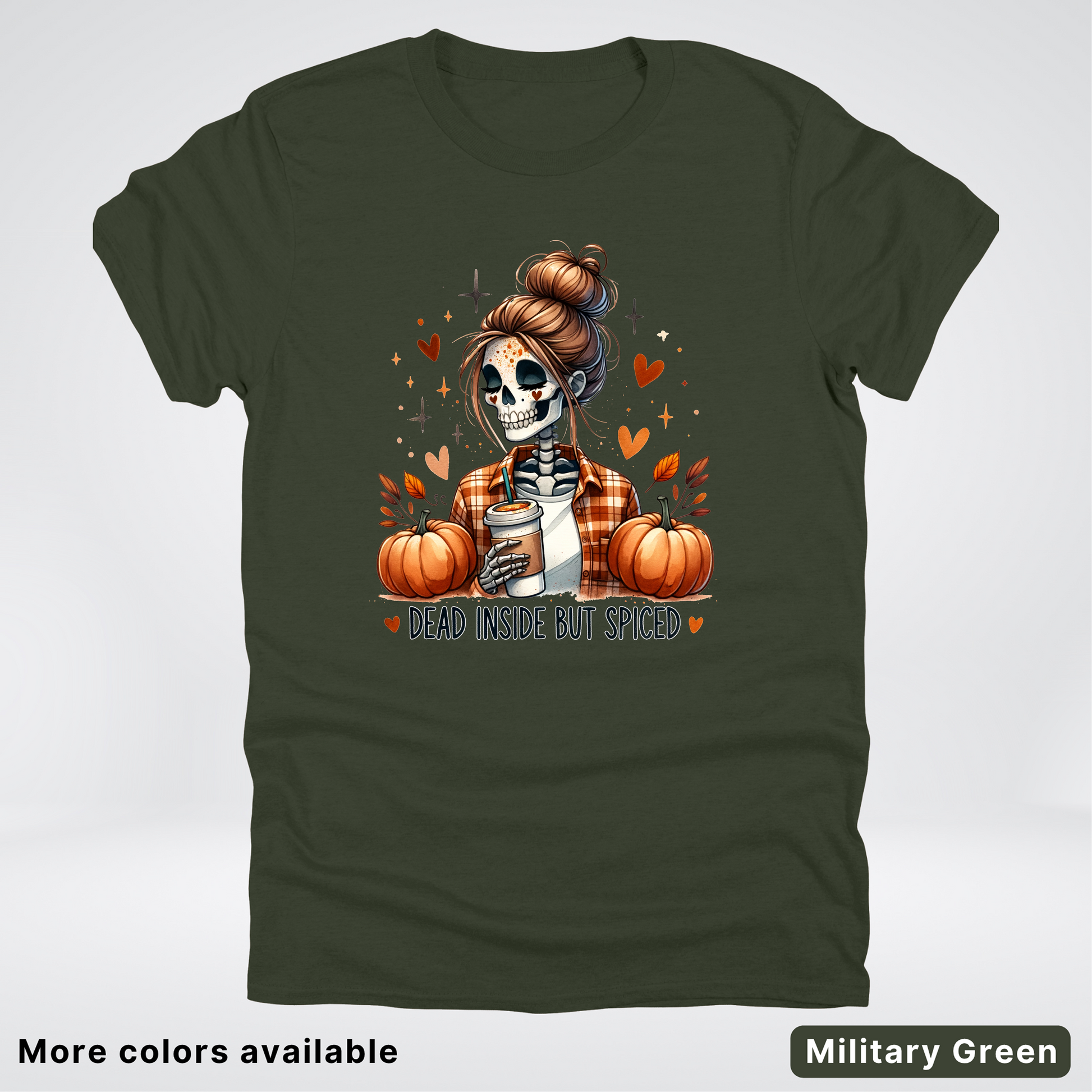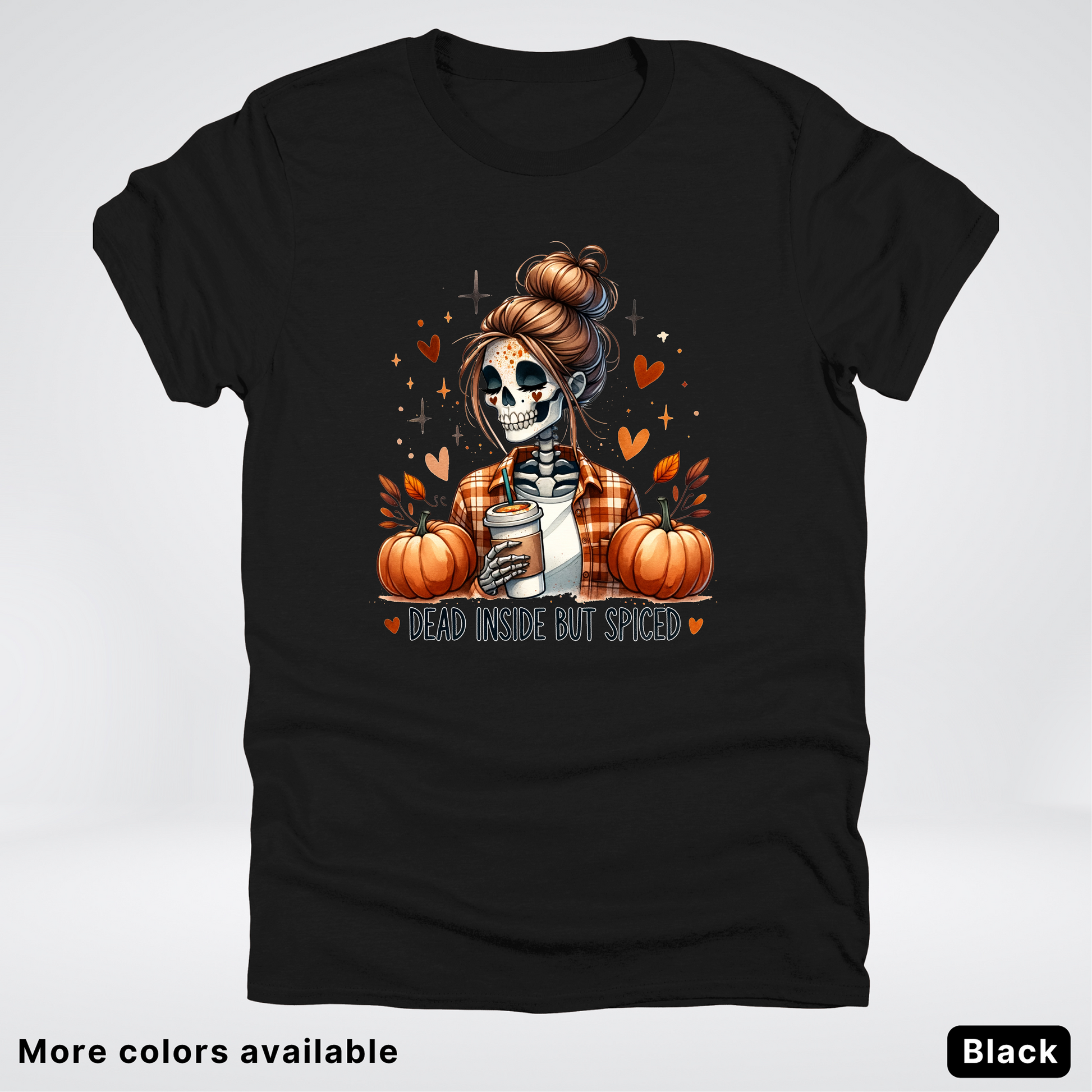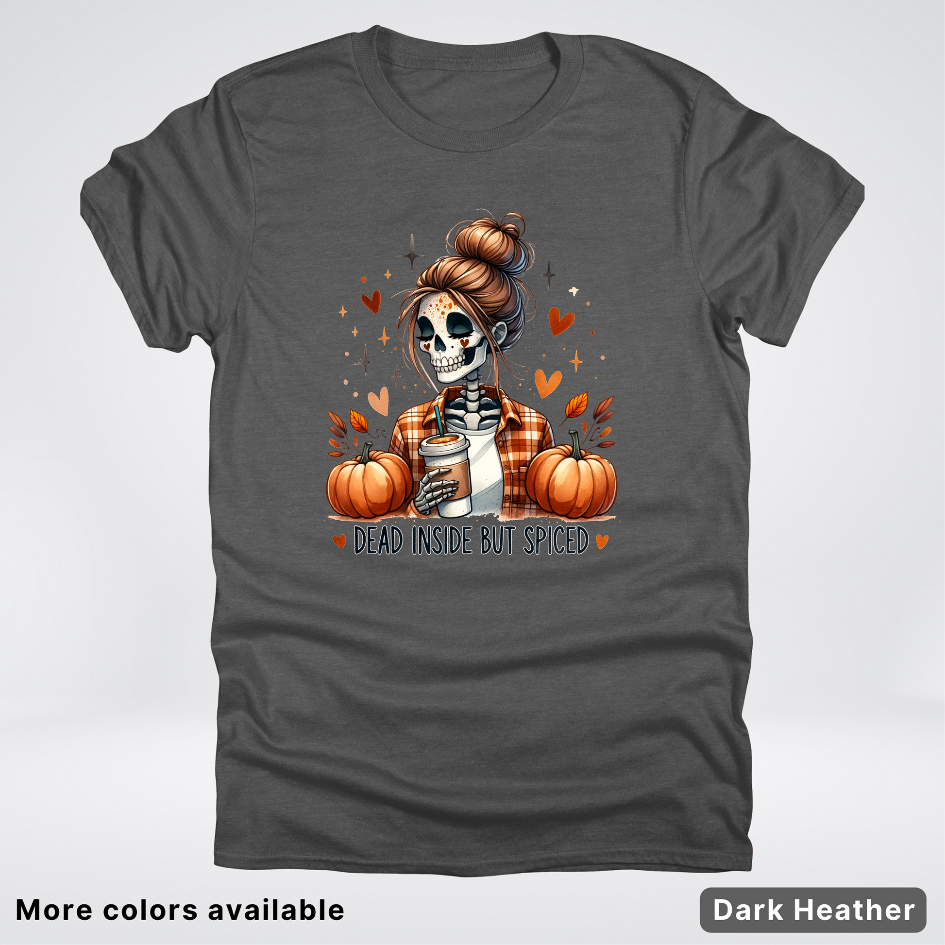 Dead Inside But Spiced Skeleton Coffee Pumpkin Fall - T-Shirt