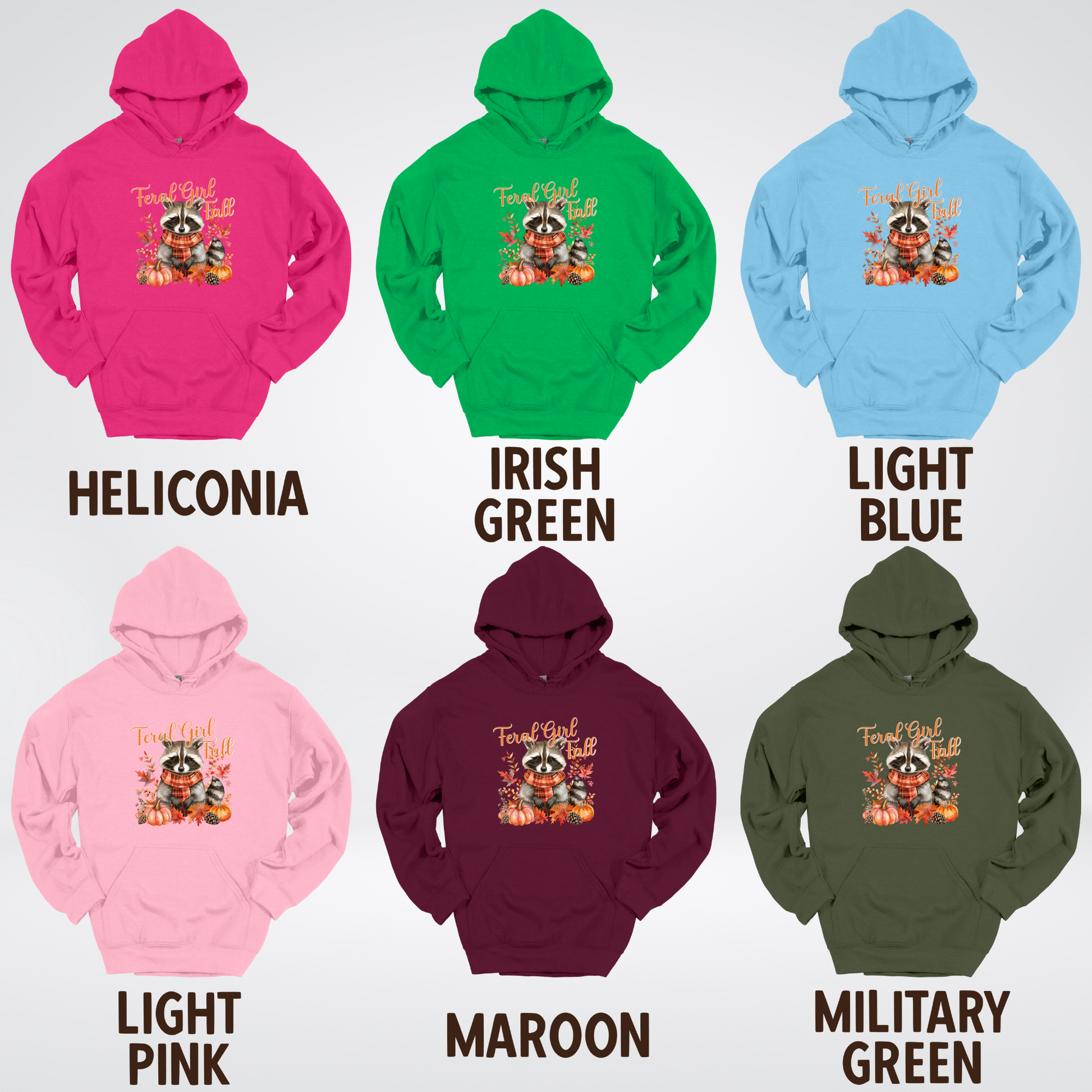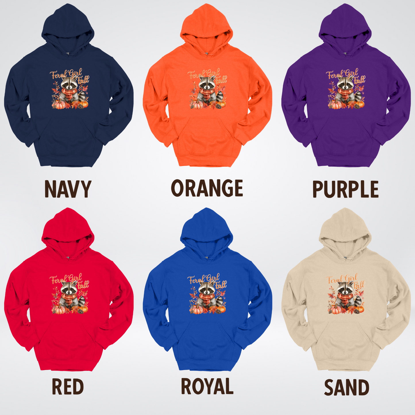 Introducing the Feral Girl Fall Hoodie. Stay cozy and cool this season with this quirky, double-meaning hoodie. Perfect for the wild child in all of us. (Limit 2 exclamation points.)