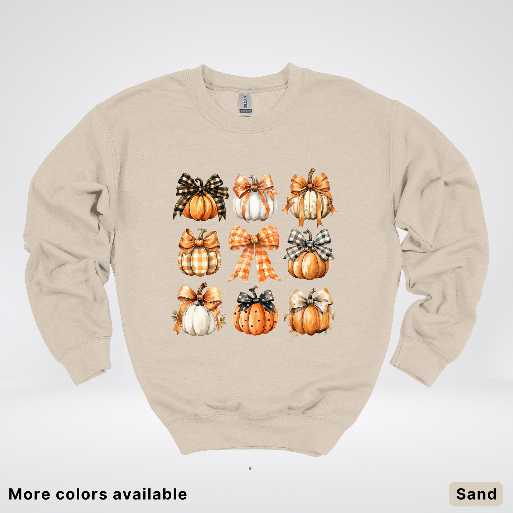 Flannel Bows & Pumpkin Coquette Fall Autumn - Crewneck Sweatshirt