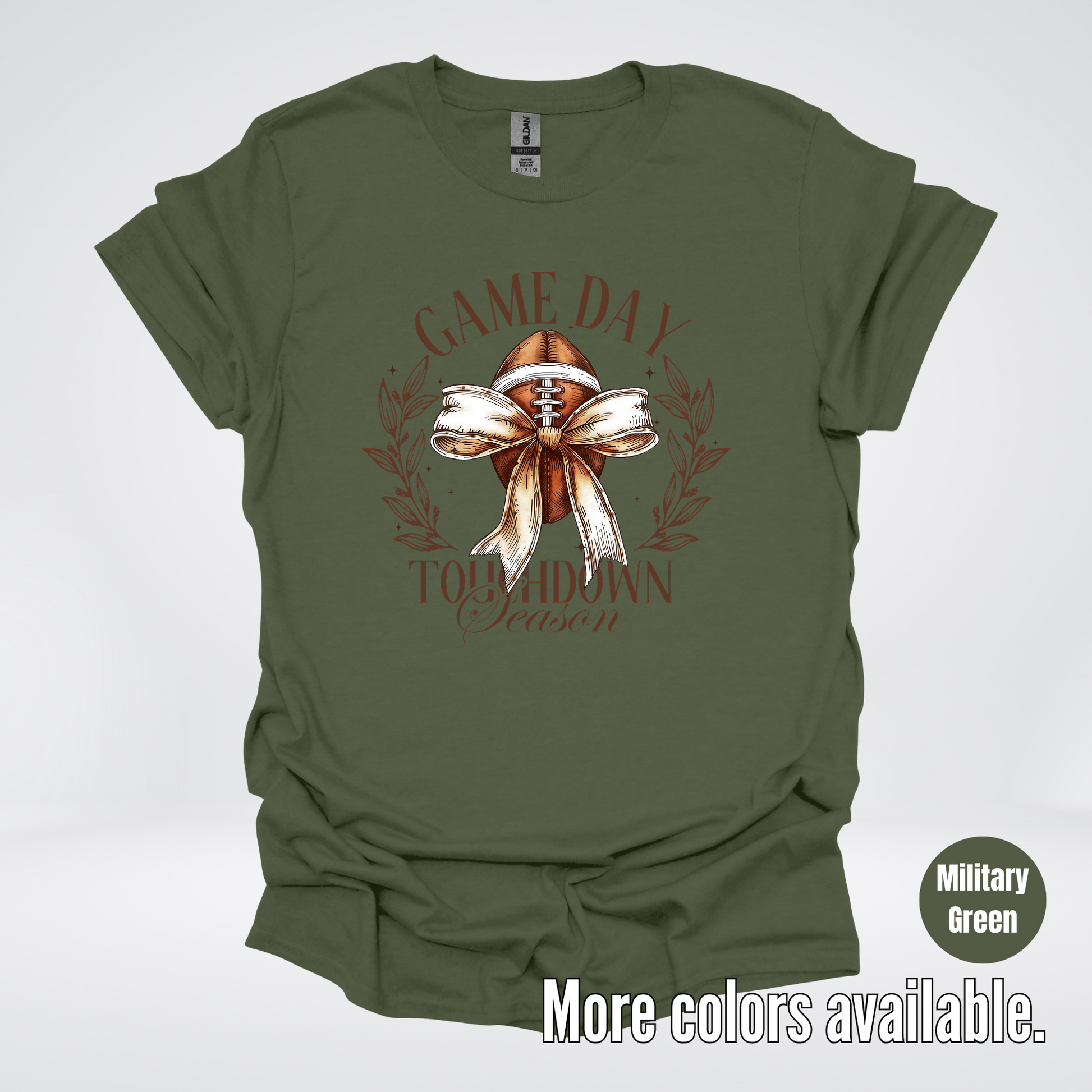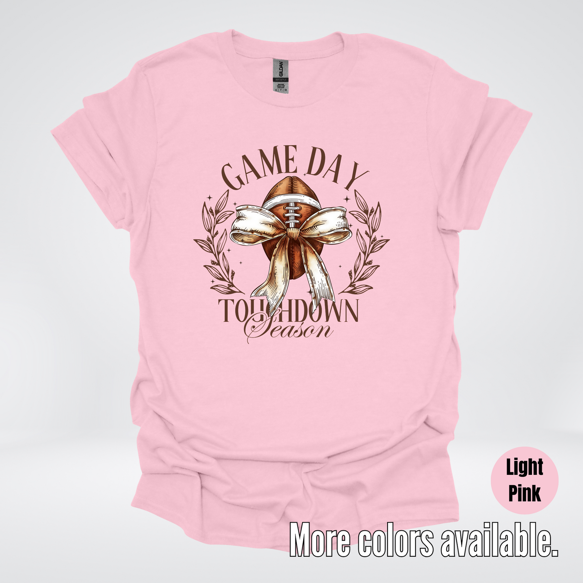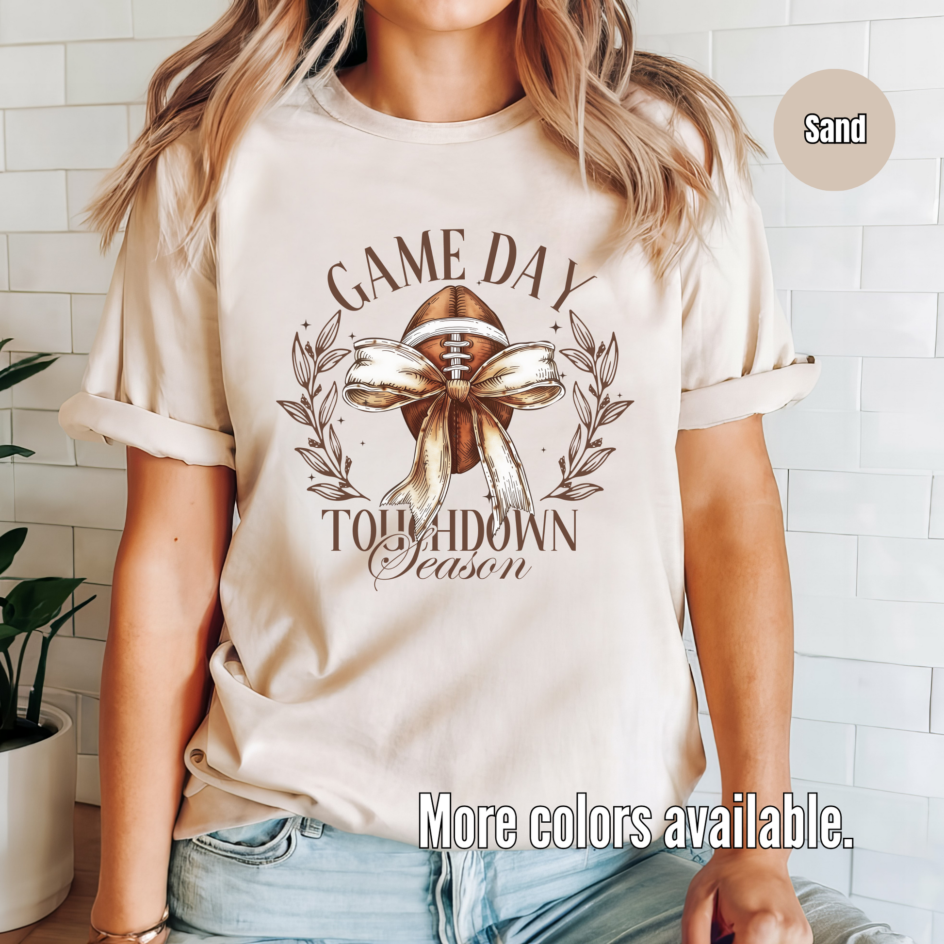 Get ready to score big with our Game Day Touchdown Season Coquette T-Shirt! This playful shirt is perfect for any football fan, with a quirky design that showcases your love for the game. Made of high-quality materials, it's comfortable for all-day wear. Show off your unique style on game day (or any day!) with this fun and stylish t-shirt.