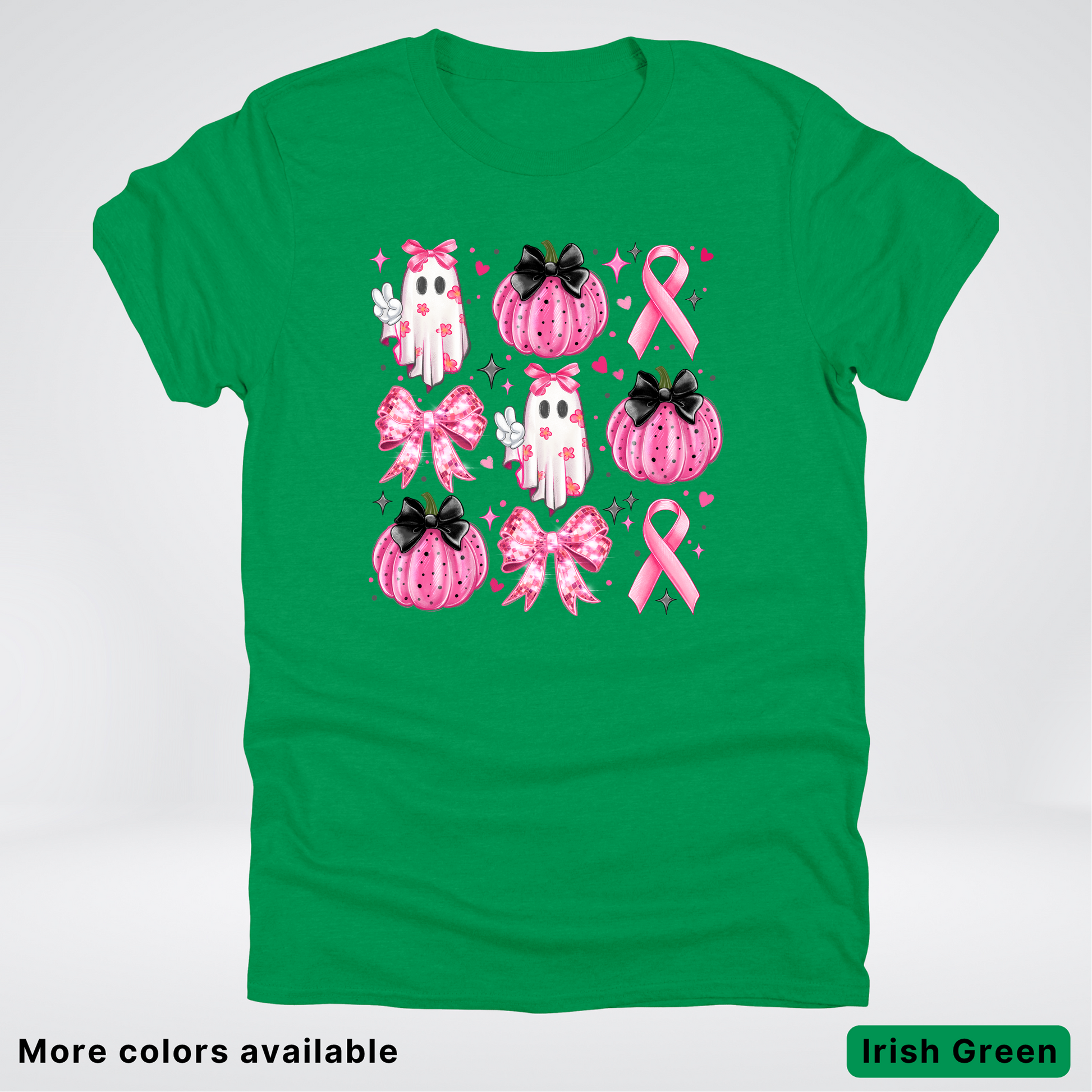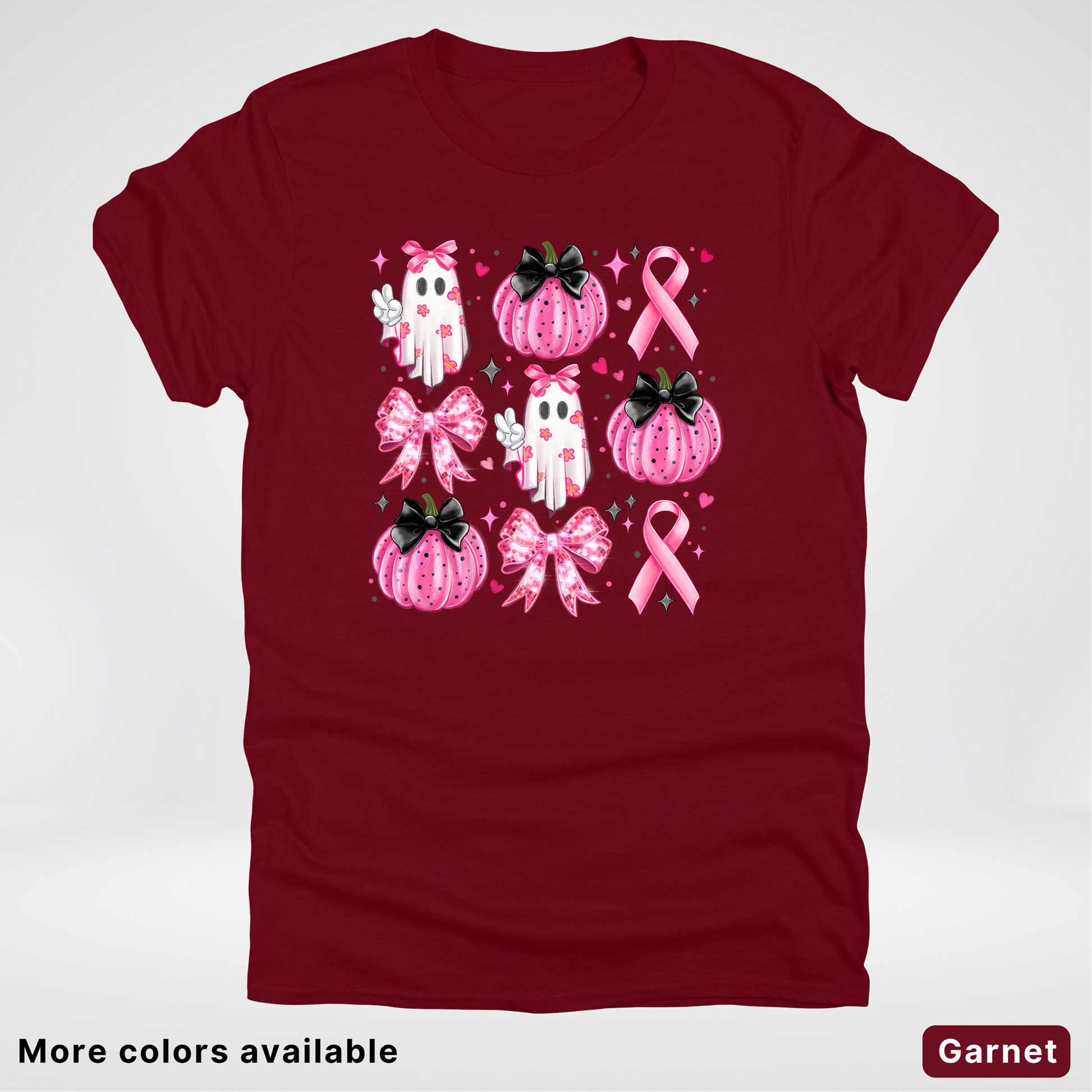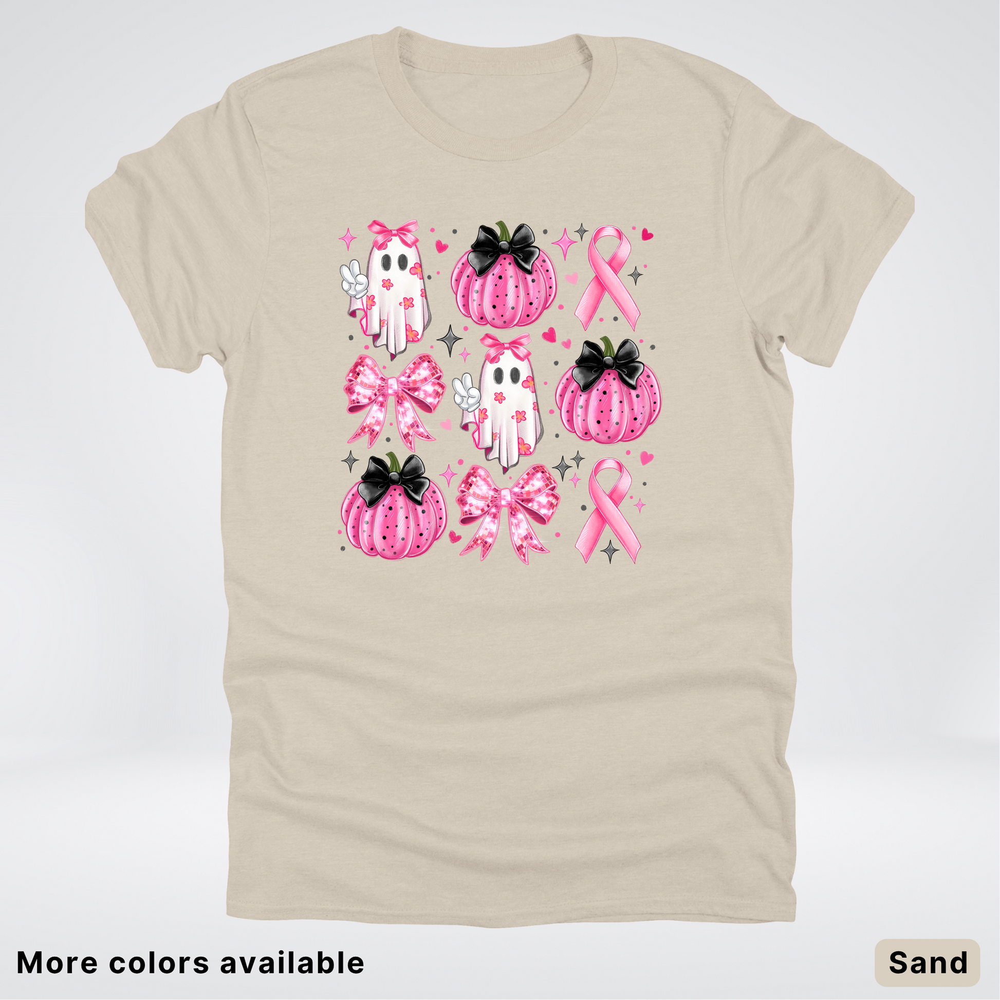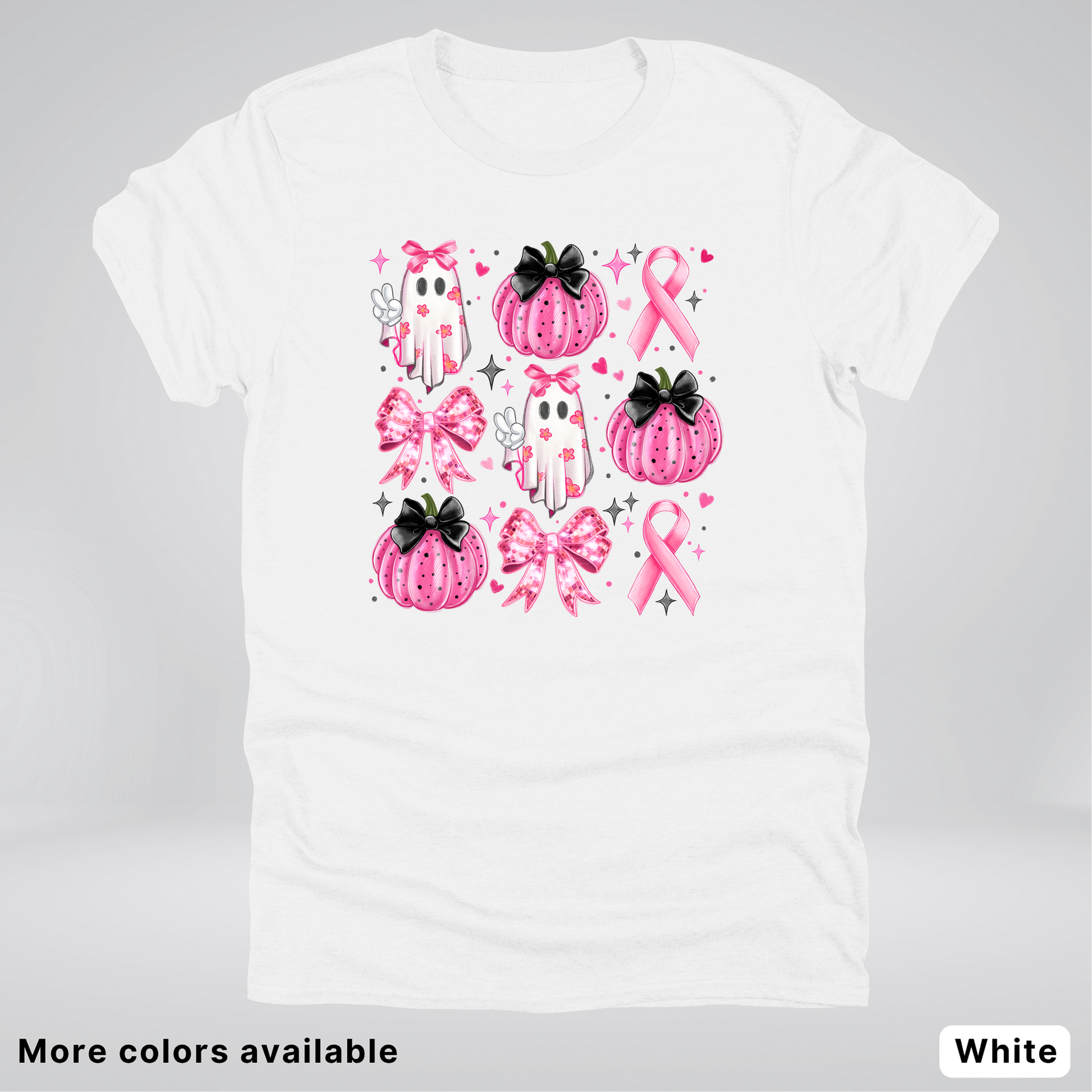 Ghost & Pink Out Pumpkins Coquette Cute Ghost Disco Bow - T-Shirt