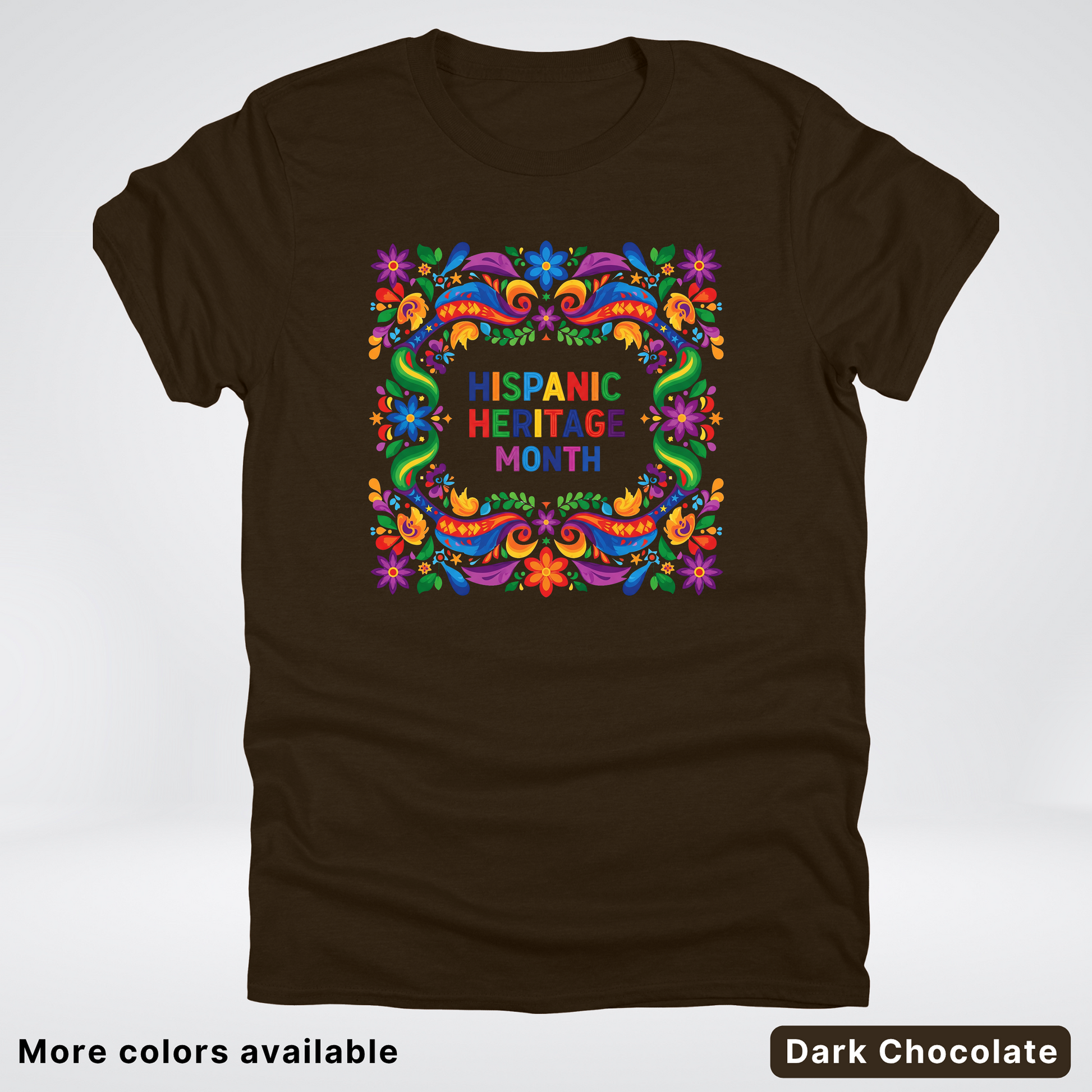 Celebrate culture in style with our Hispanic Heritage Month T-Shirt! This vibrant tee blends comfort and pride, making every day a fiesta. Perfect for showing off your roots or honoring the rich traditions that inspire us all. Slip on this playful shirt and carry a colorful piece of heritage wherever you go.
