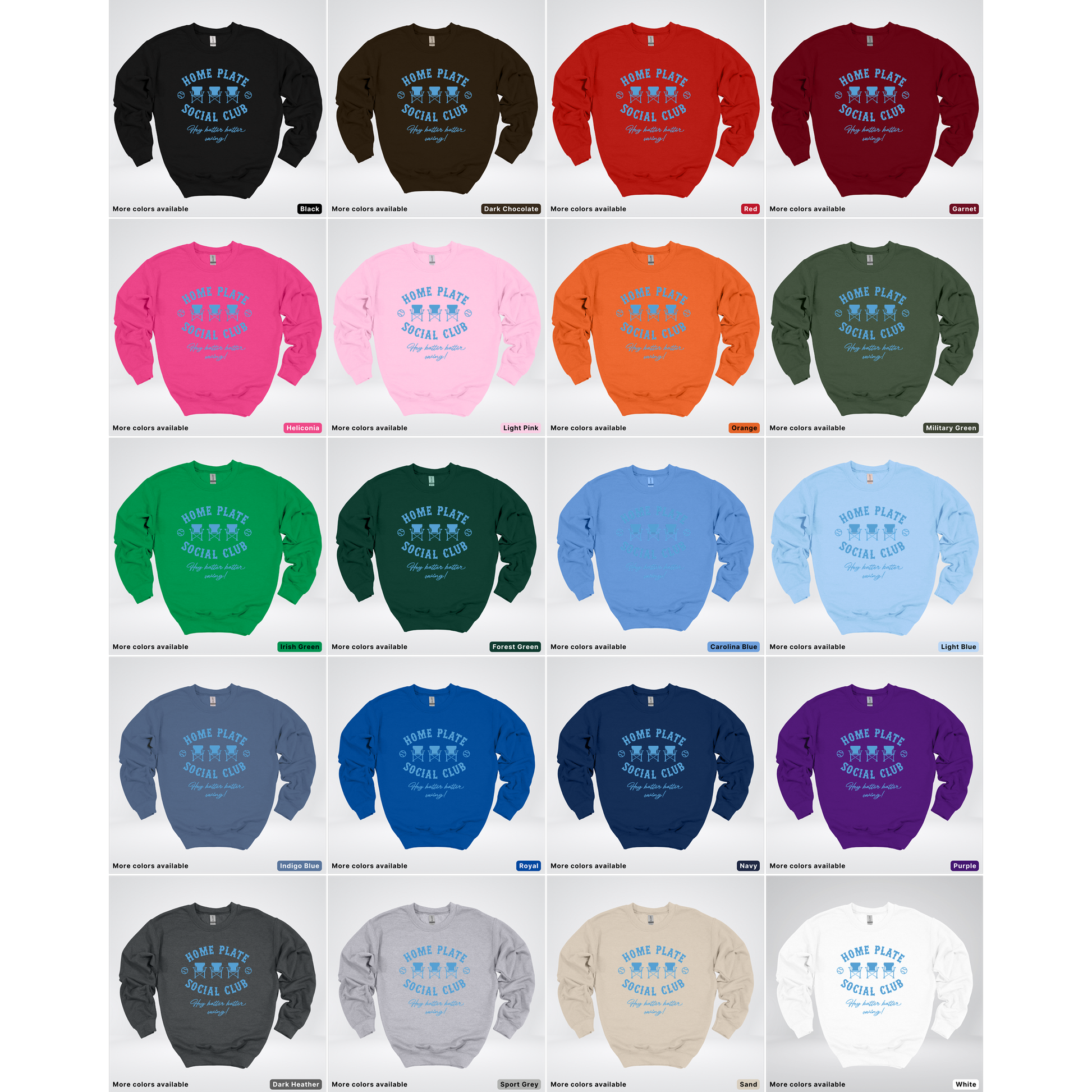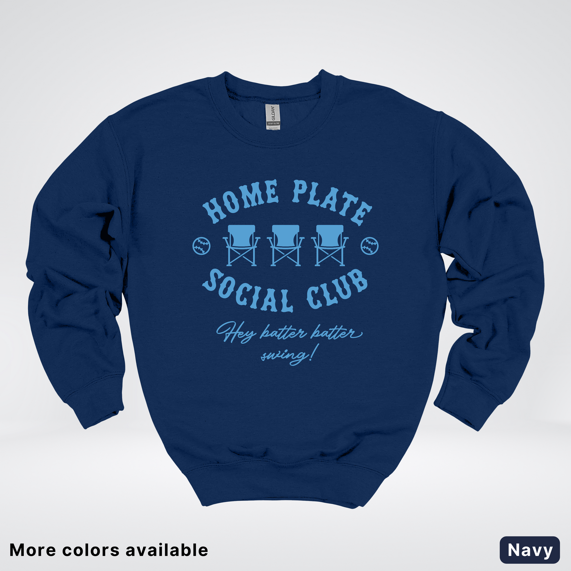 Home Plate Social Club – Light Blue Design - Sweatshirt Celebrate your love of the game with this comfortable light blue sweatshirt featuring the Home Plate Social Club design. Perfect for game days, casual outings, or showing your team spirit year-round. The soft fabric provides warmth and durability, while the classic design makes it a versatile addition to any wardrobe. Whether you're a dedicated fan or just appreciate quality apparel, this sweatshirt delivers both style and comfort in one piece.