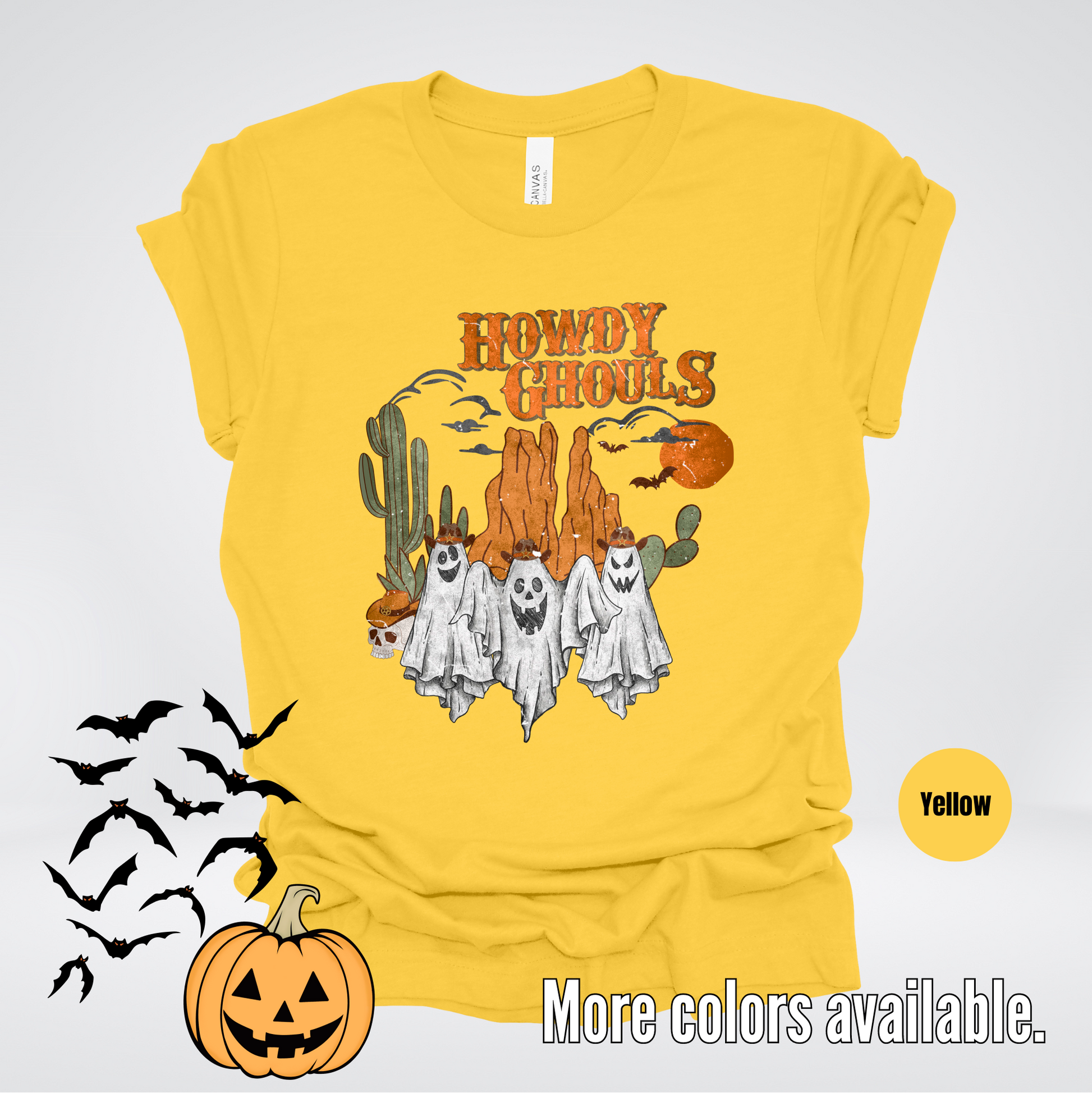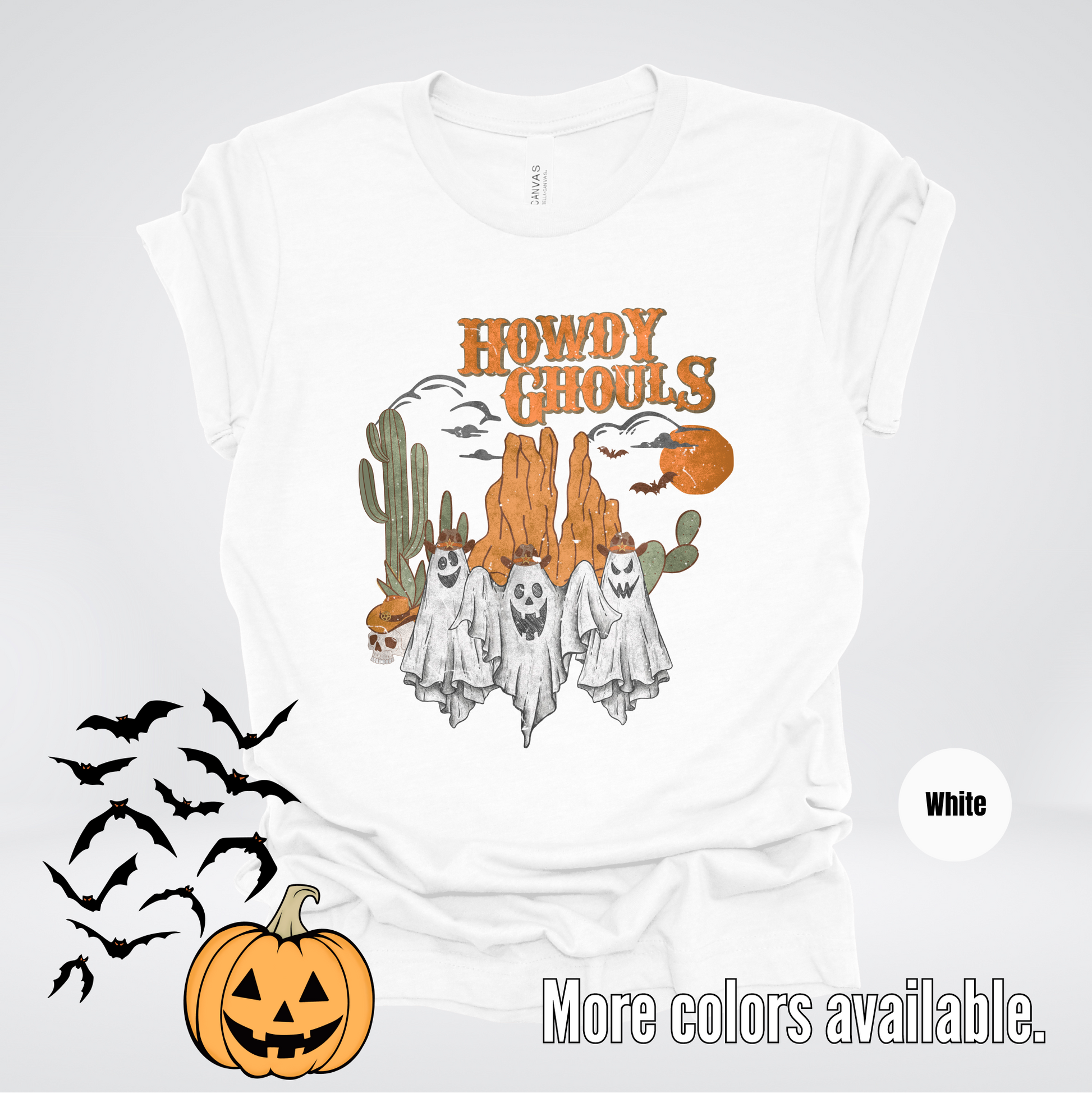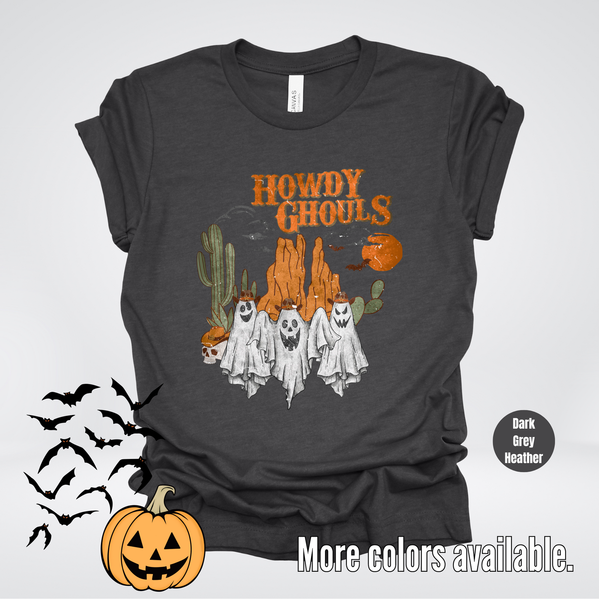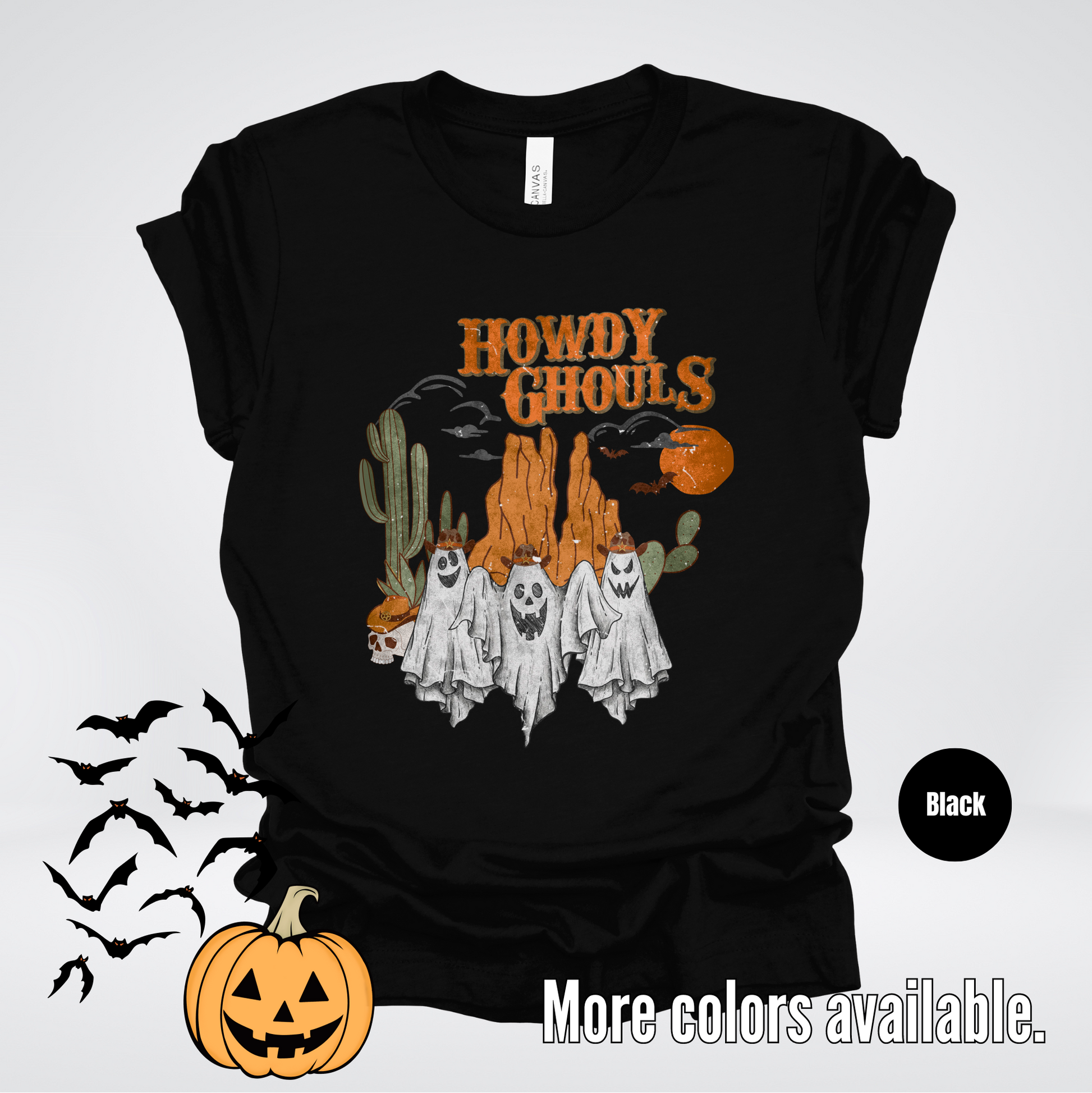 Join the spooky fun with our Howdy Ghouls T-Shirt. This playful and punny shirt is perfect for Halloween or anytime you want to add some quirky humor to your wardrobe. Made from soft and comfortable materials, it's the perfect addition to any t-shirt collection.