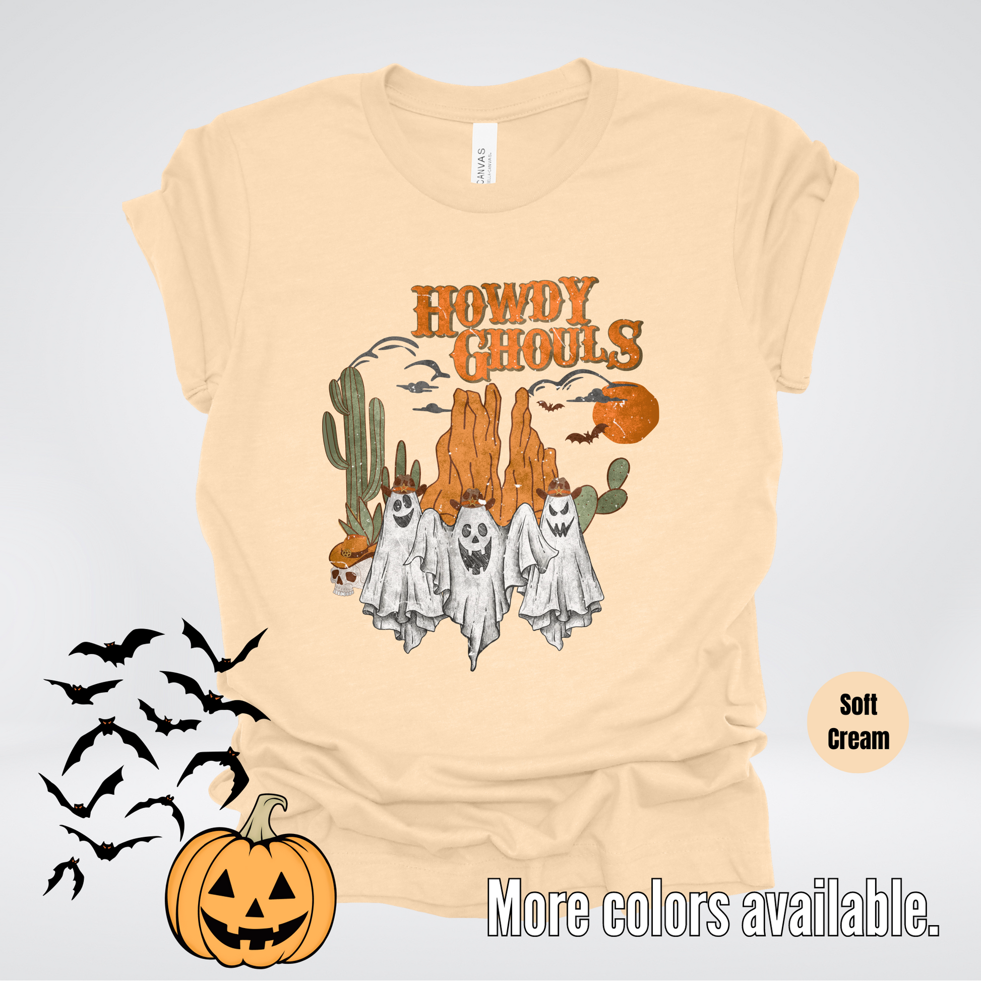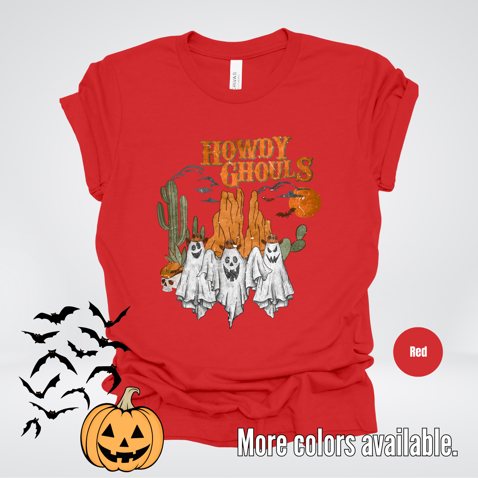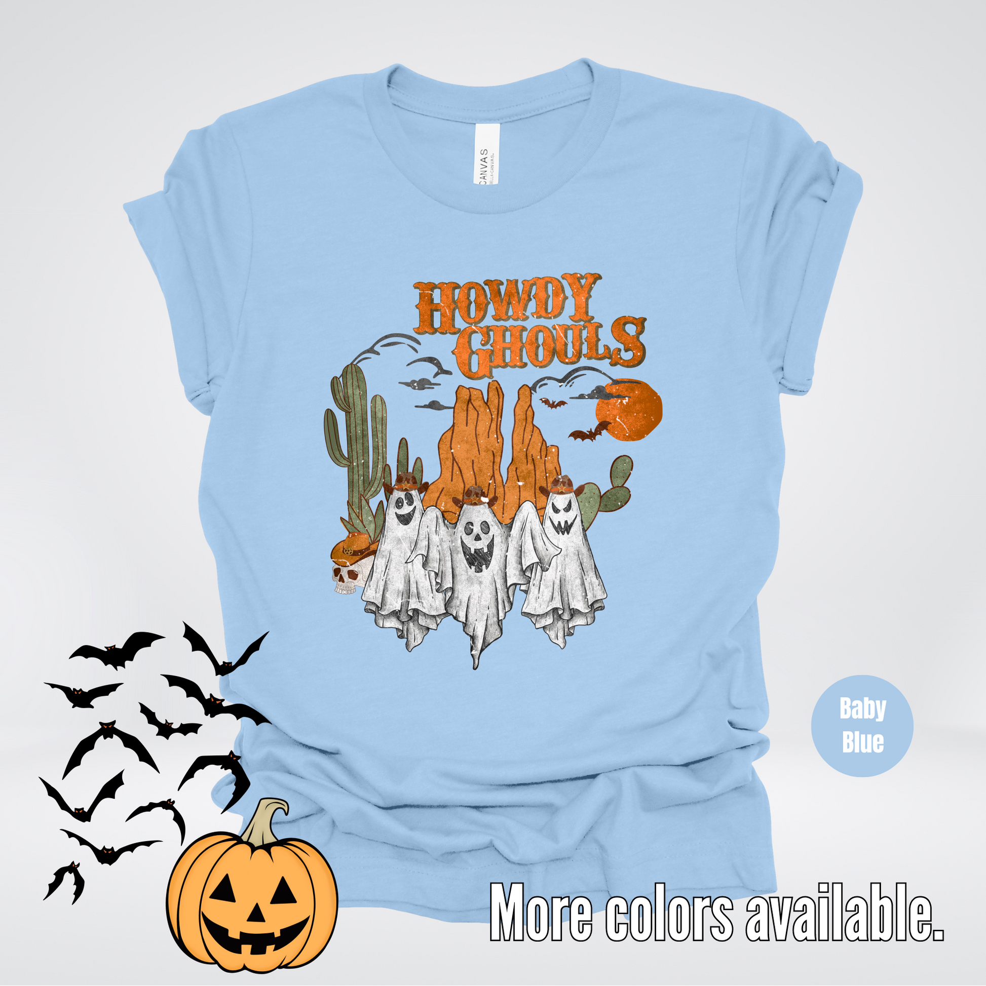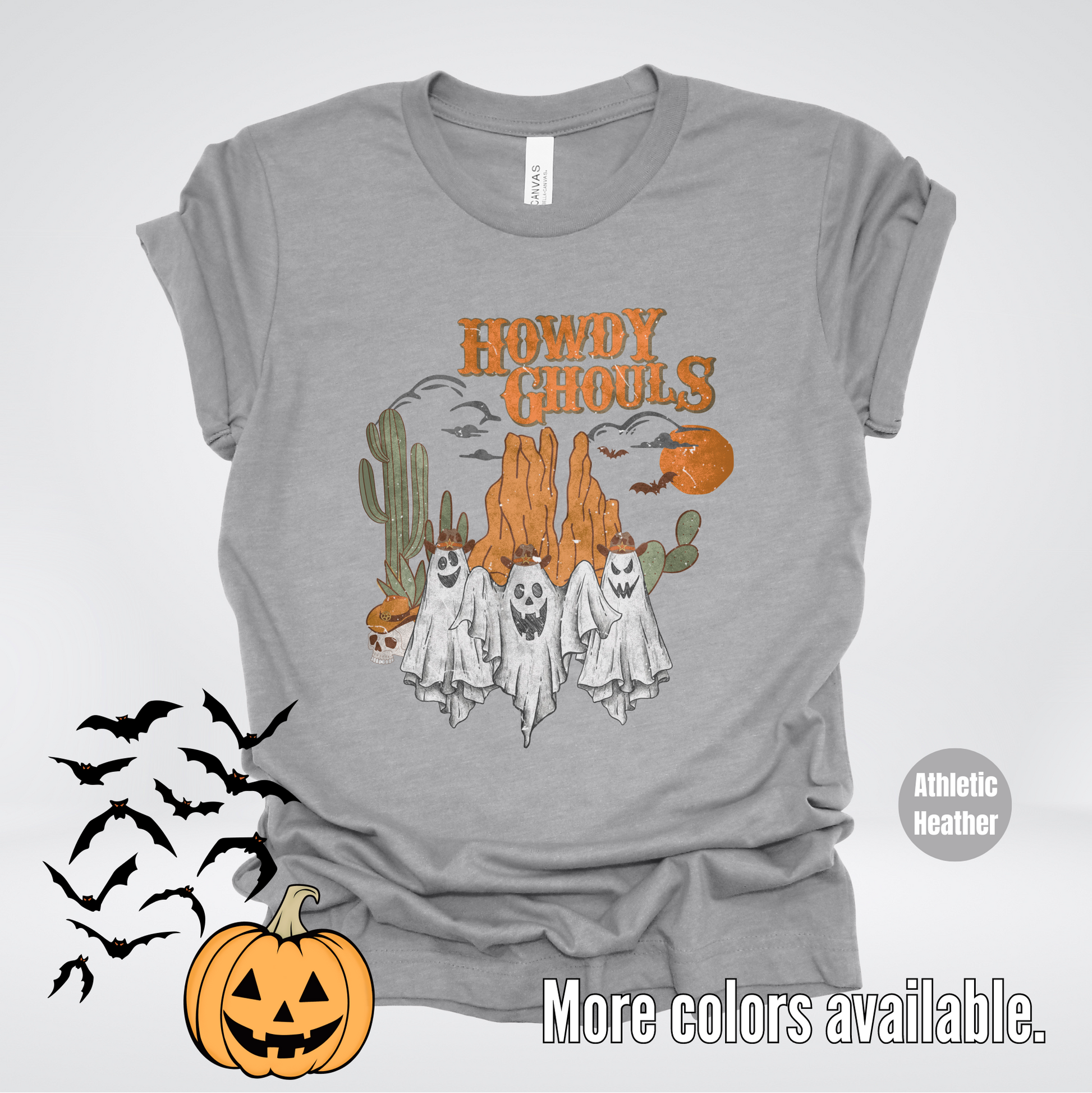 Join the spooky fun with our Howdy Ghouls T-Shirt. This playful and punny shirt is perfect for Halloween or anytime you want to add some quirky humor to your wardrobe. Made from soft and comfortable materials, it's the perfect addition to any t-shirt collection.