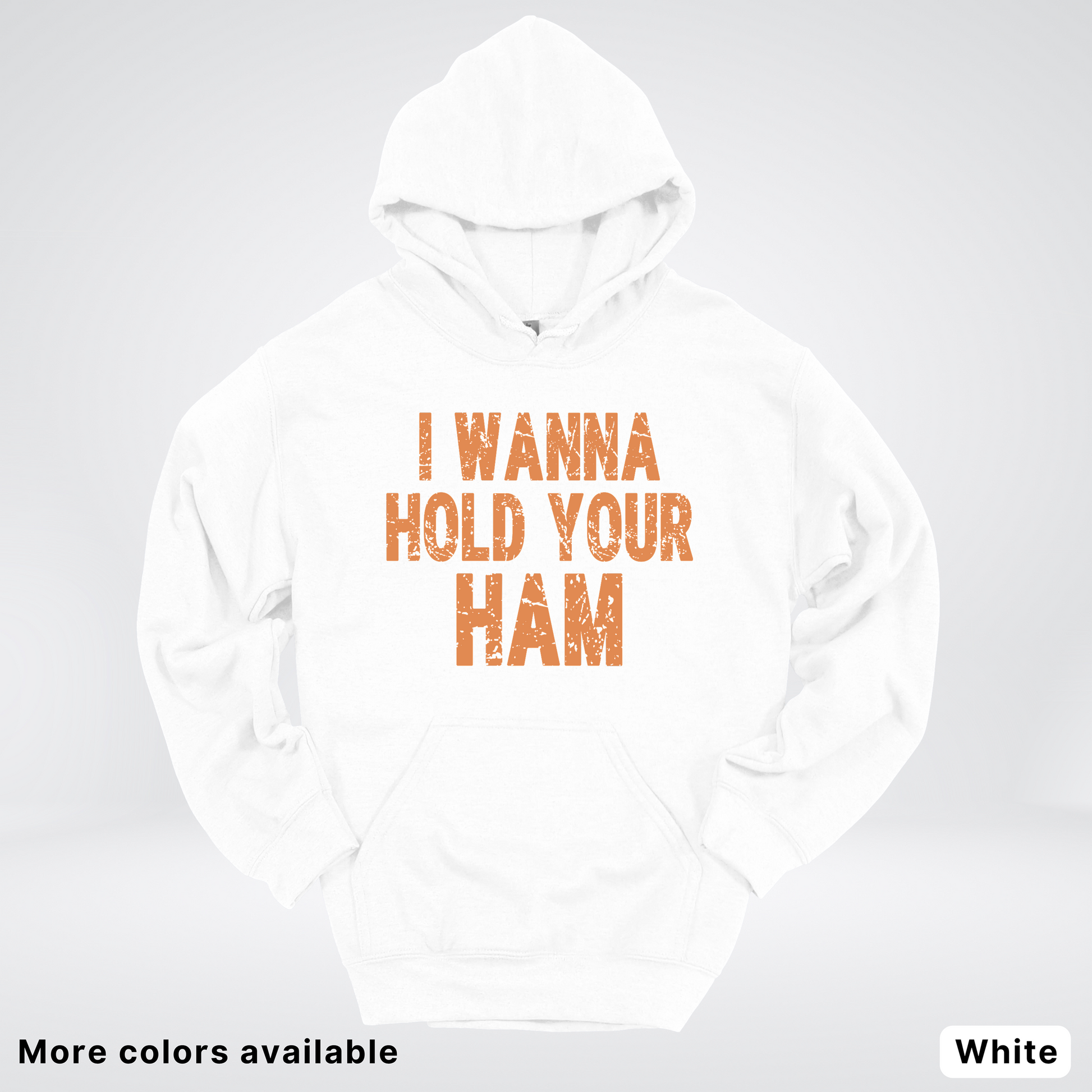Wrap your hands around comfort with this quirky "I Wanna Hold Your Ham" hoodie—a playful nod to Beatles fans with a deliciously funny twist. Crafted from soft, cozy fabric, it's perfect for casual hangouts, lazy days, or making your friends smile. Whether you're a music lover, a pun enthusiast, or just someone who appreciates witty humor, this hoodie delivers laughs and warmth in equal measure. Rock your unique style and let everyone know you've got a sense of humor as bold as your fashion choices.