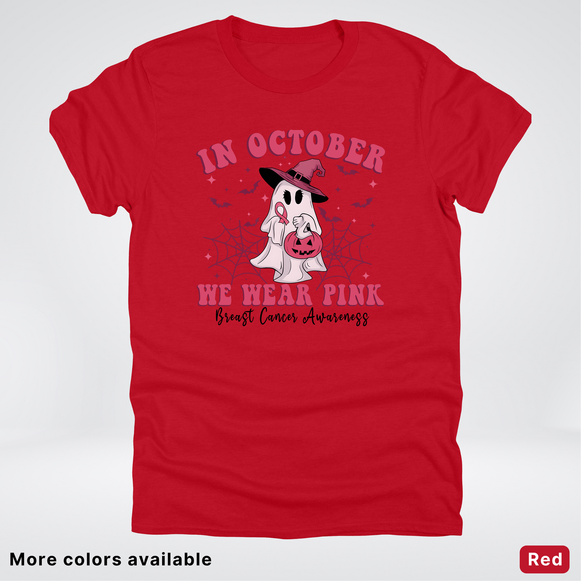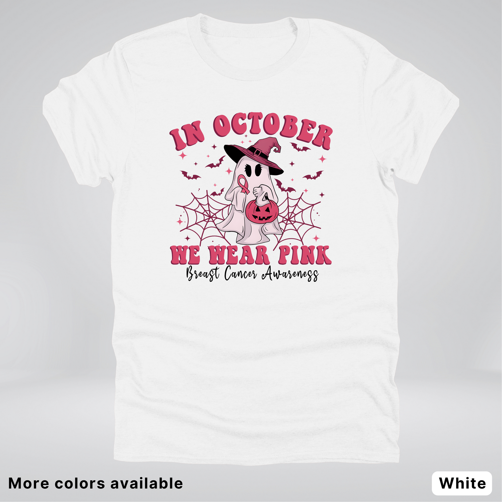 In October We Wear Pink Trick or Treating Ghost Witch - T-Shirt