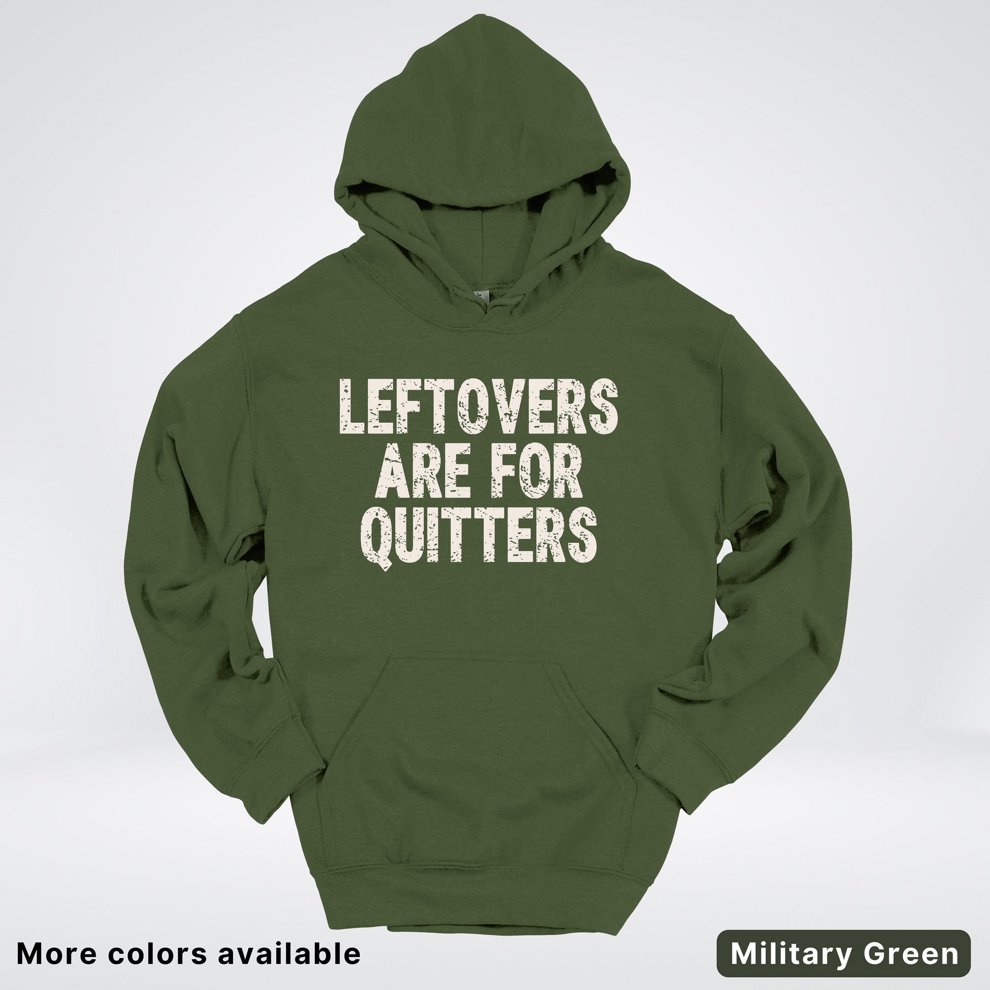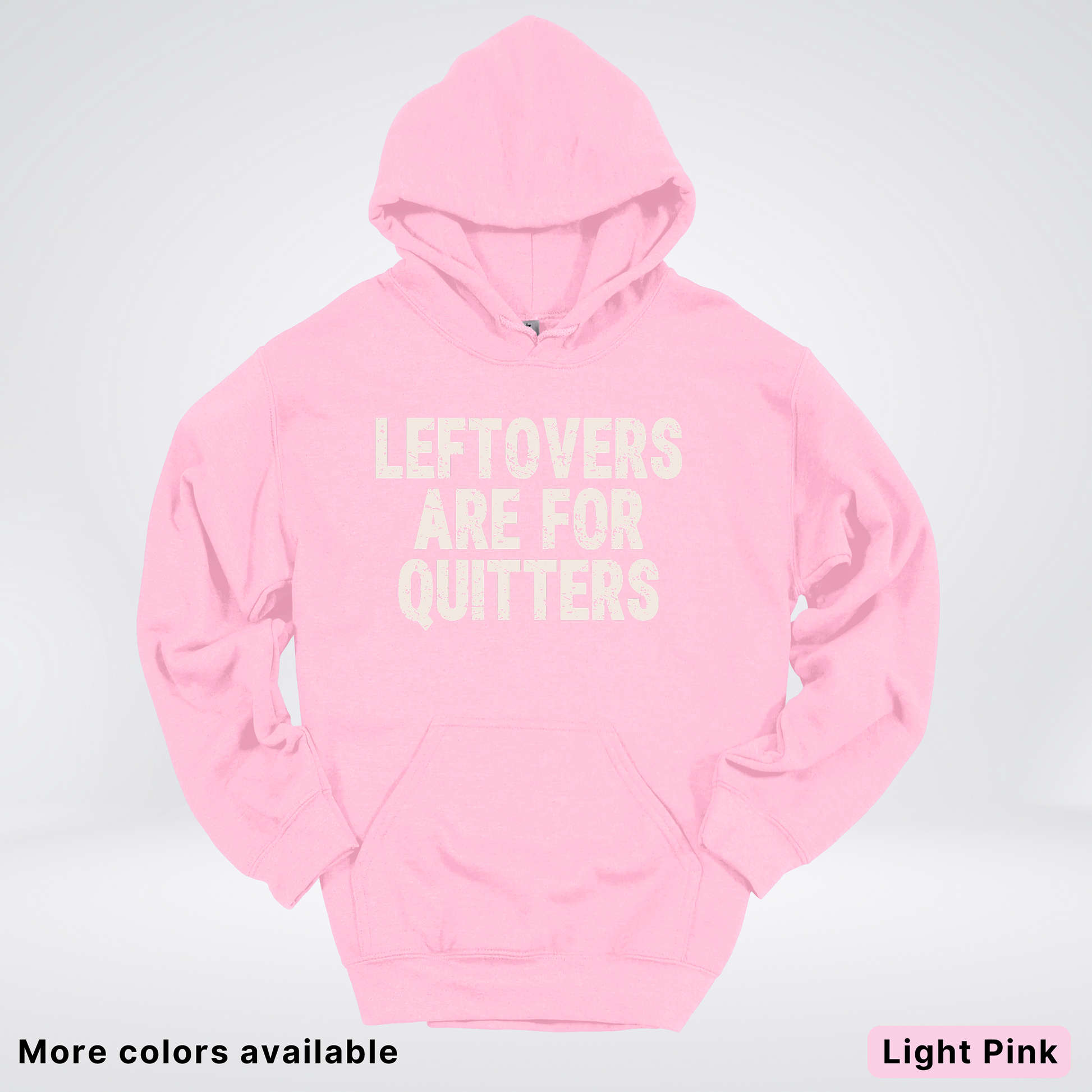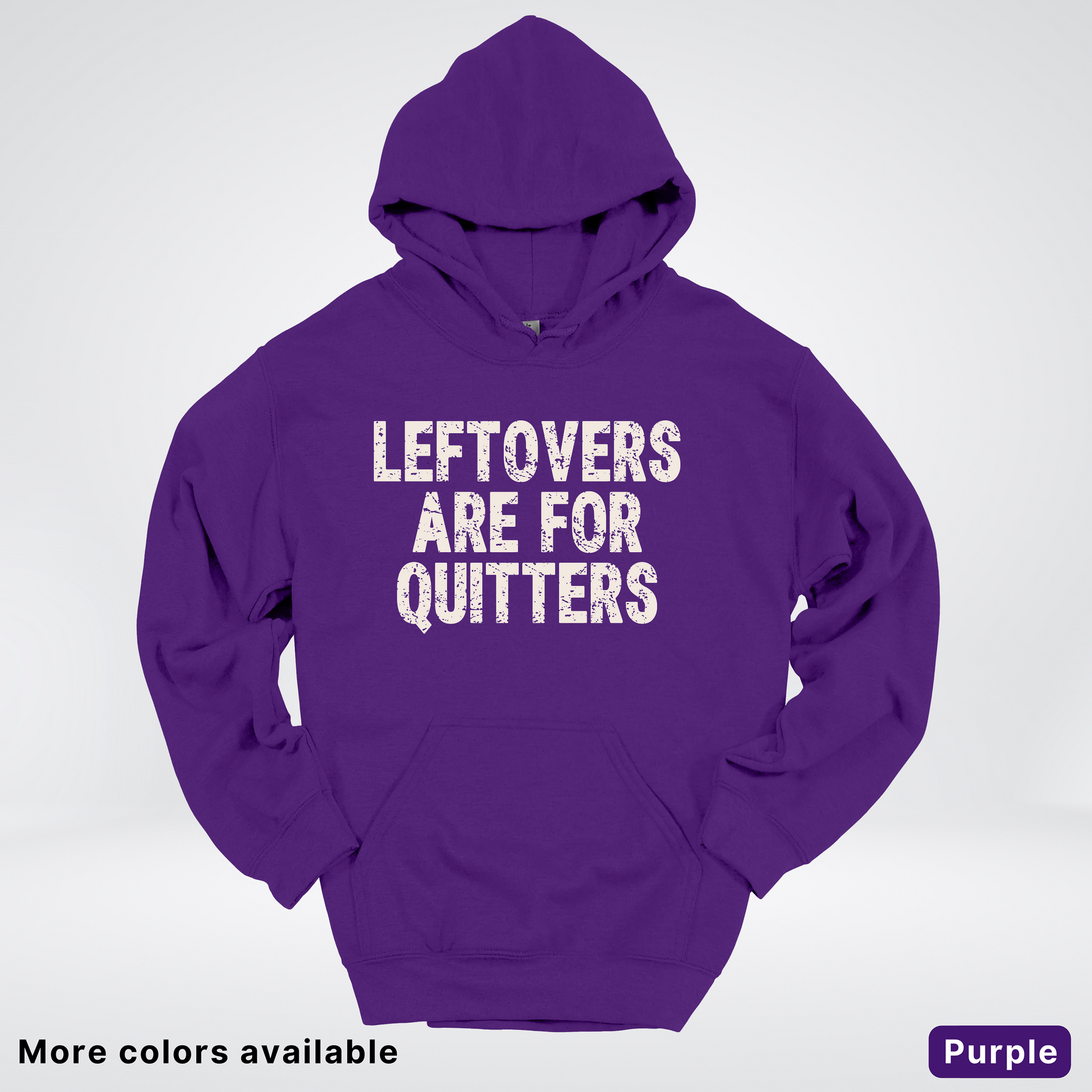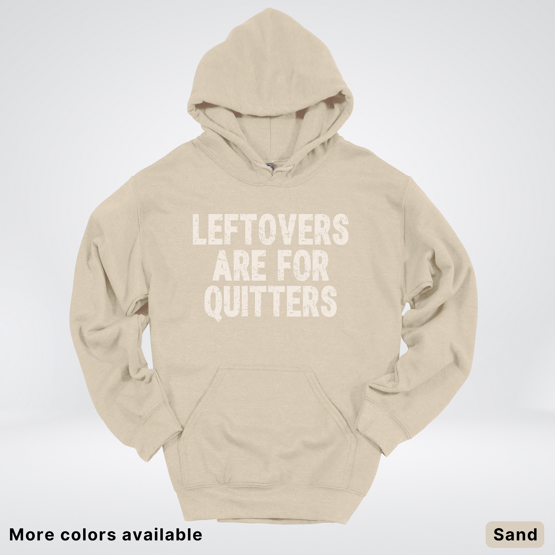 Leftovers Are For Quitters - Hoodie Embrace your no-nonsense attitude with this bold, tongue-in-cheek hoodie that celebrates those who go all-in. Perfect for anyone with a competitive spirit and a sense of humor, this cozy pullover features a witty statement that'll get laughs and nods of approval. Whether you're heading to game day, casual hangouts, or just want to make a statement, this hoodie delivers comfort wrapped in attitude. Soft, durable, and unapologetically fun—because settling for leftovers just isn't your style.