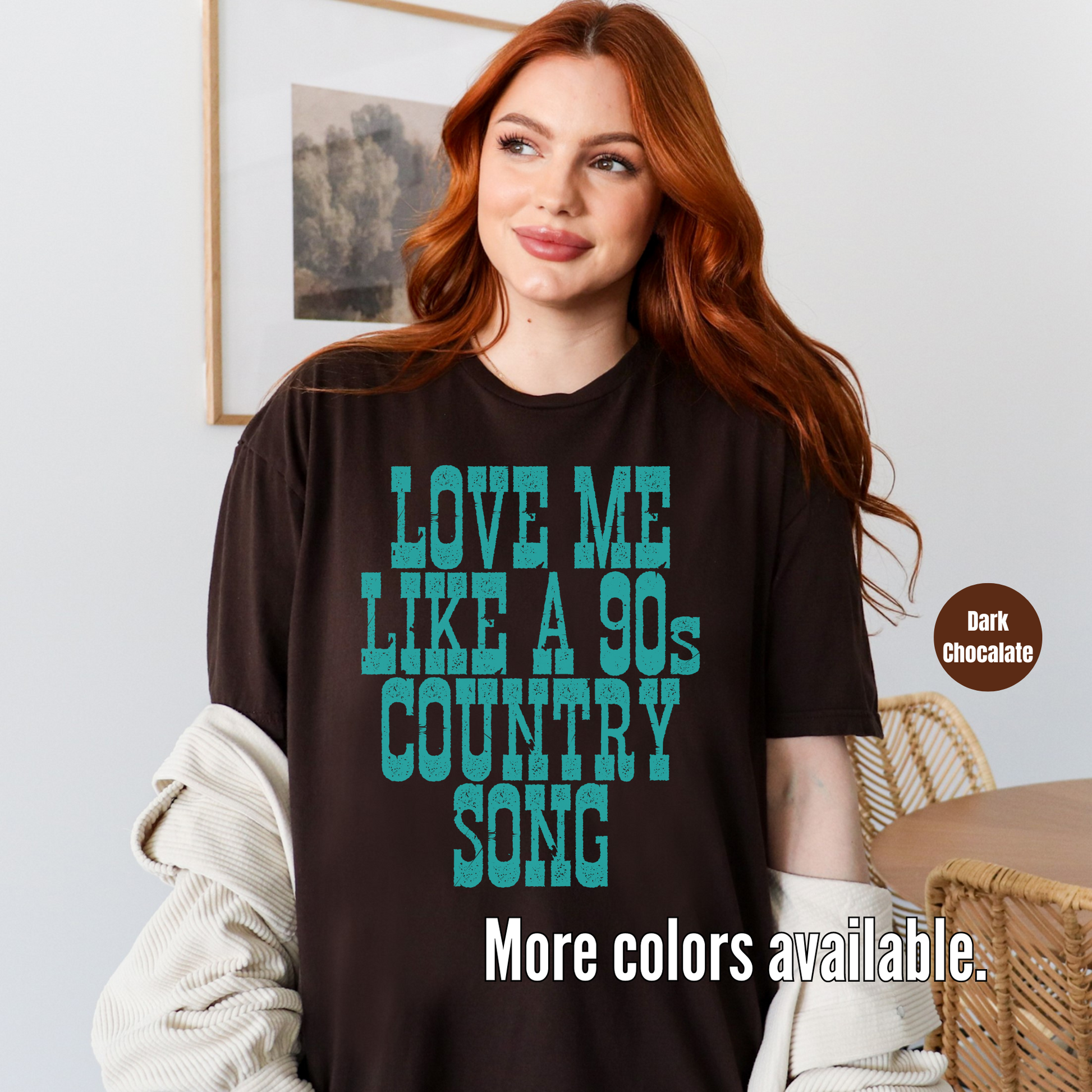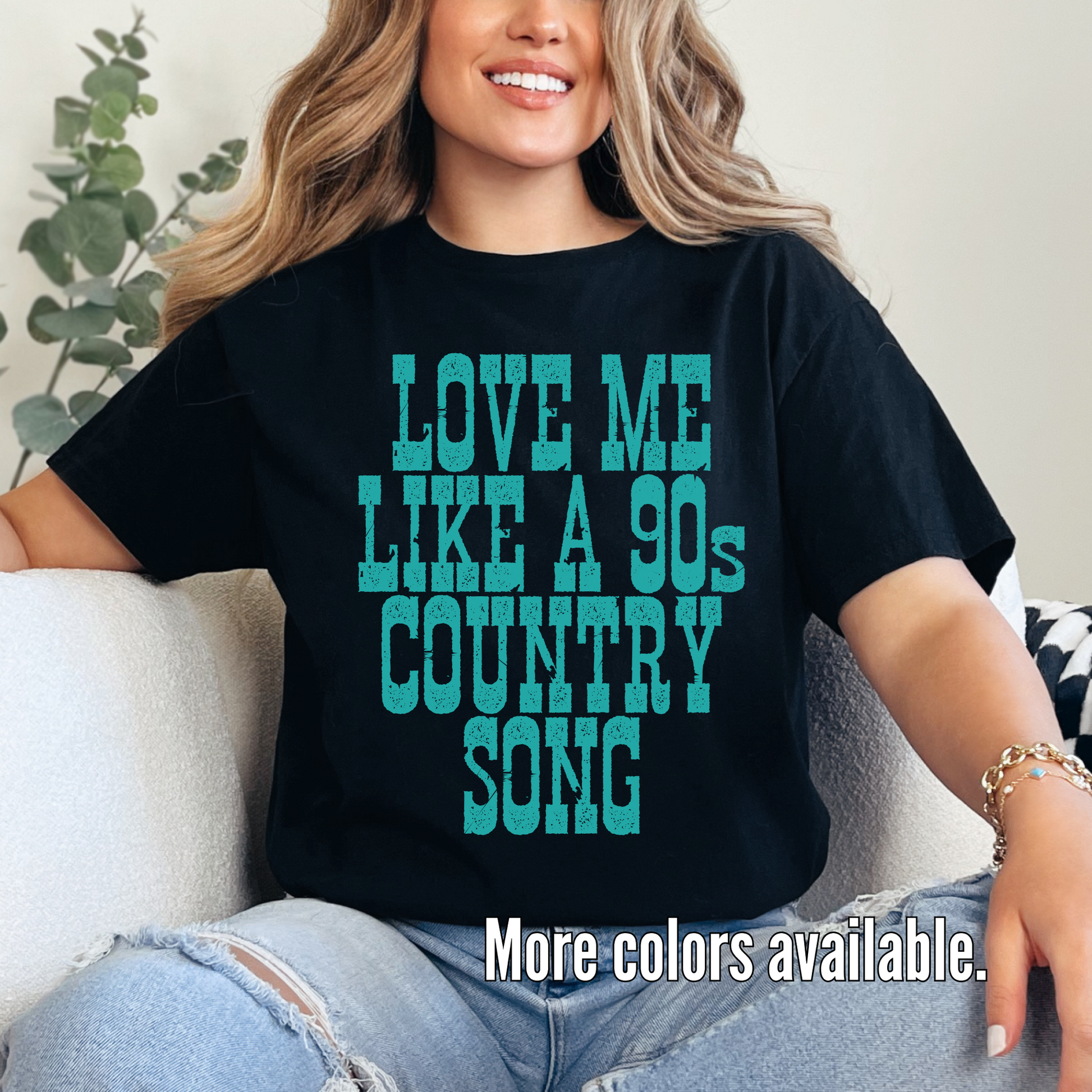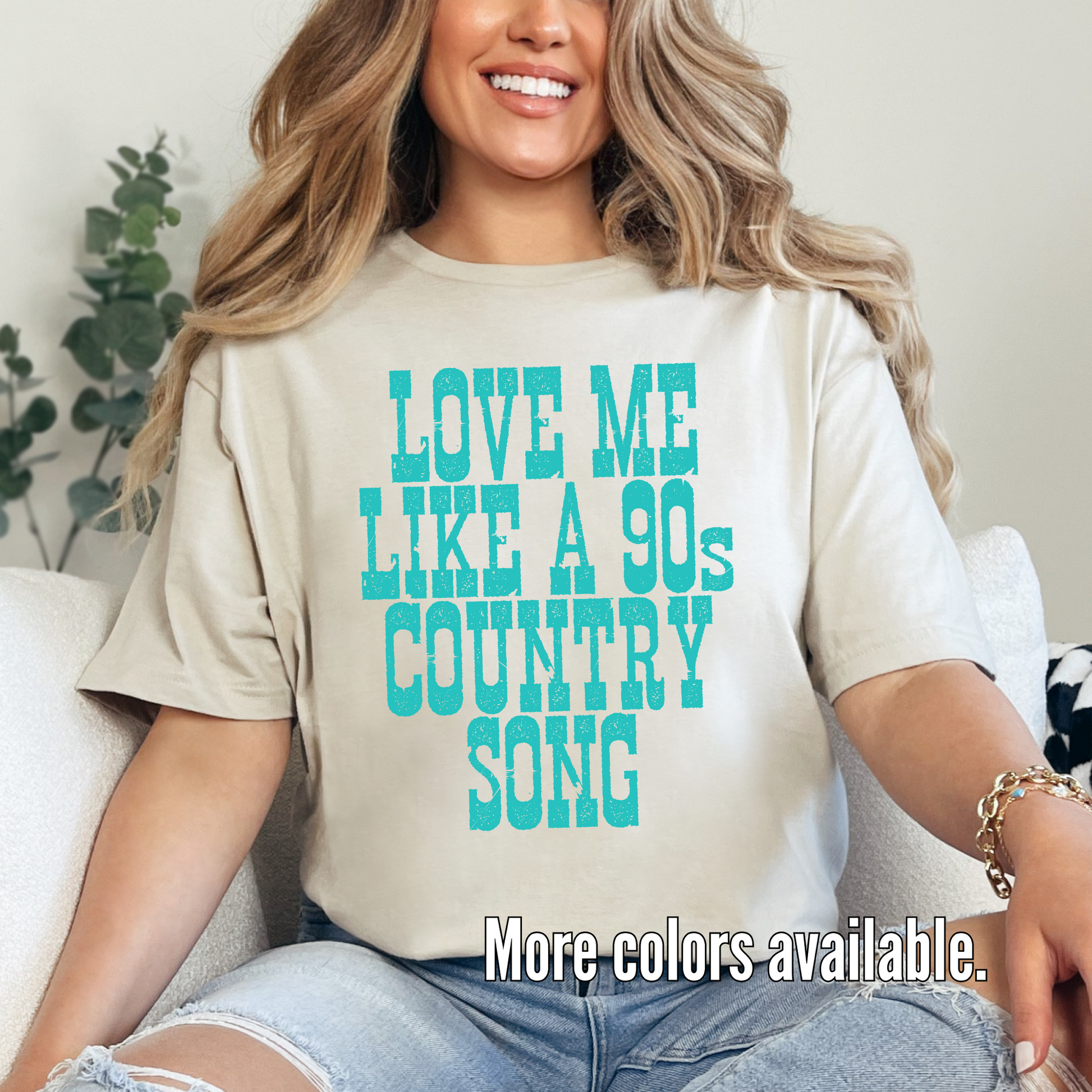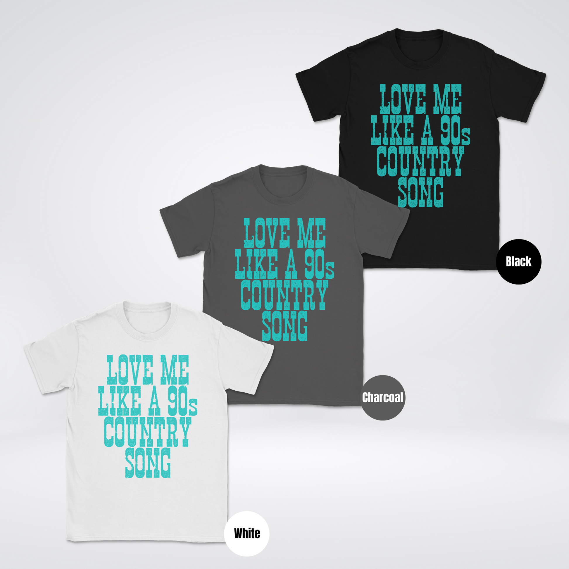 Get ready to be serenaded with nostalgia in our Love Me Like A 90s Country Song t-shirt. Made with soft, high-quality material (can't get any softer than a 90s love song!) this unisex shirt will give you all the feels. Perfect for country music lovers, 90s kids, or anyone looking for a t-shirt that's as comfortable as it is catchy. Y'all gonna love it!
