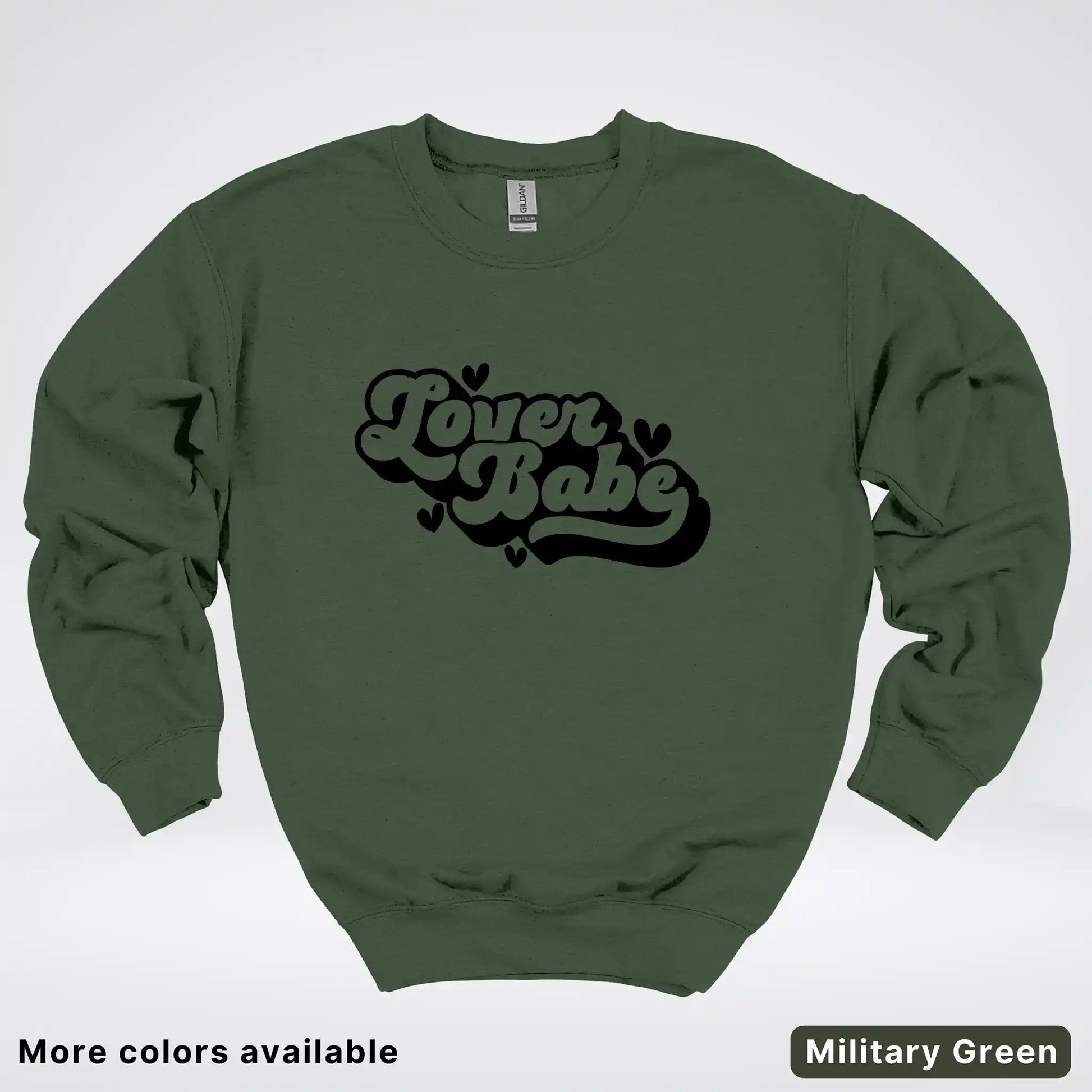 Embrace your softer side with this cozy crewneck sweatshirt featuring an understated "Lover Babe" design in classic black. Perfect for layering or wearing solo, this wardrobe staple combines comfort with a touch of personality. The relaxed fit makes it ideal for casual days, coffee runs, or unwinding at home. Crafted for everyday wear, it's the kind of piece you'll reach for again and again.