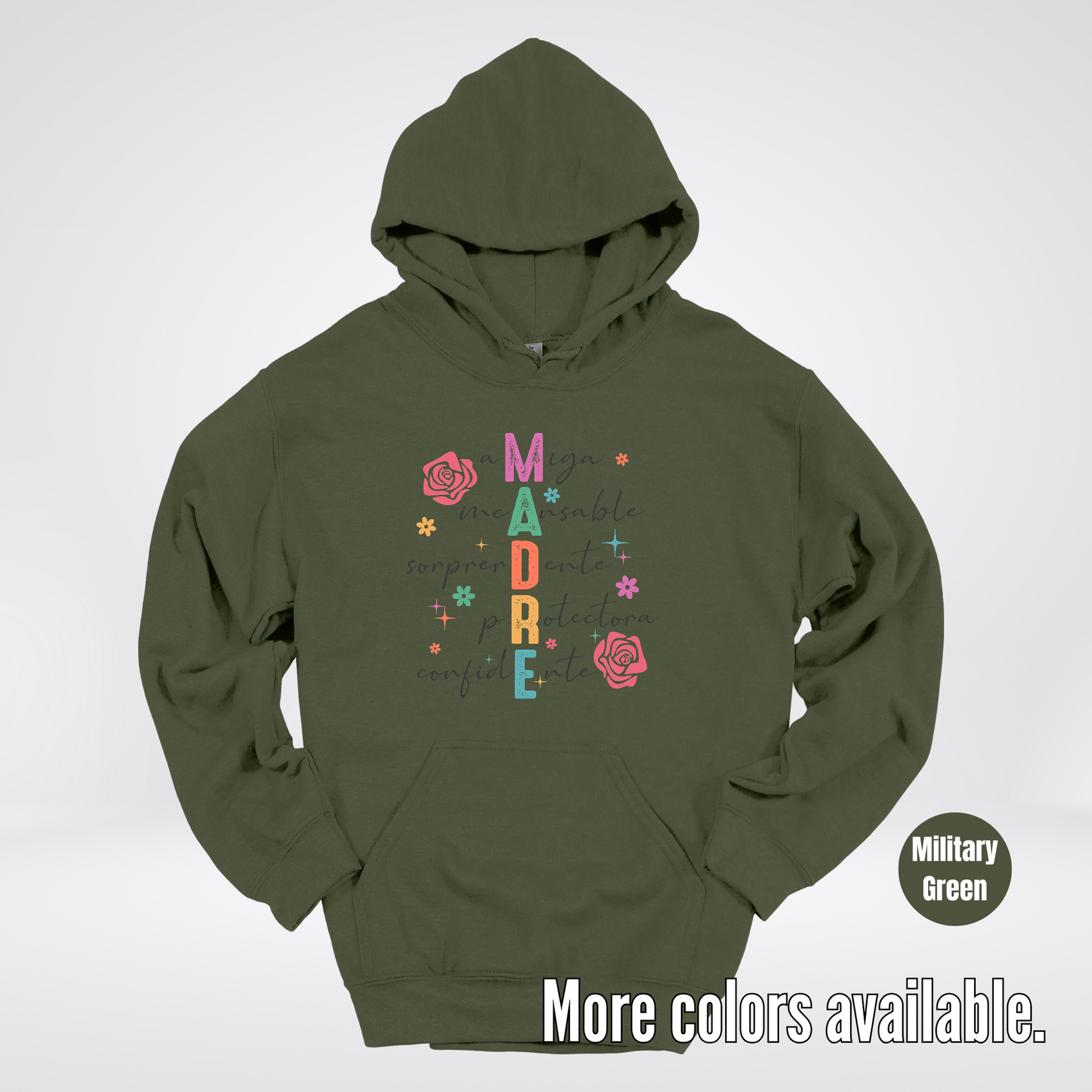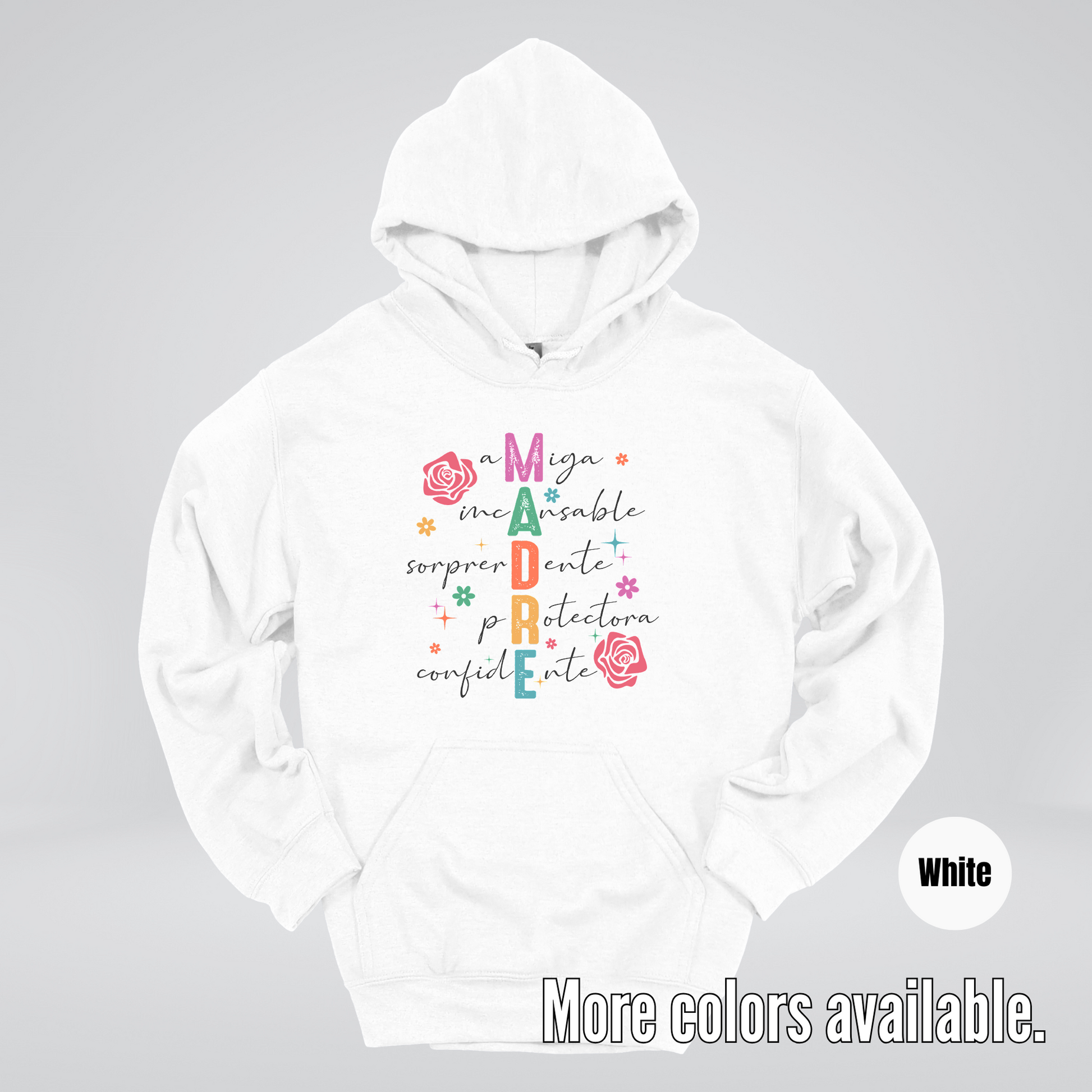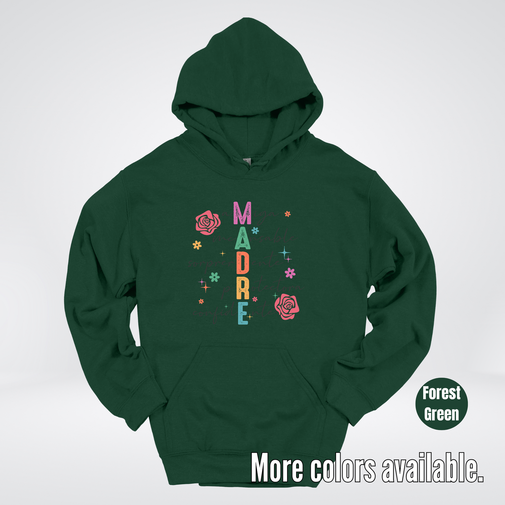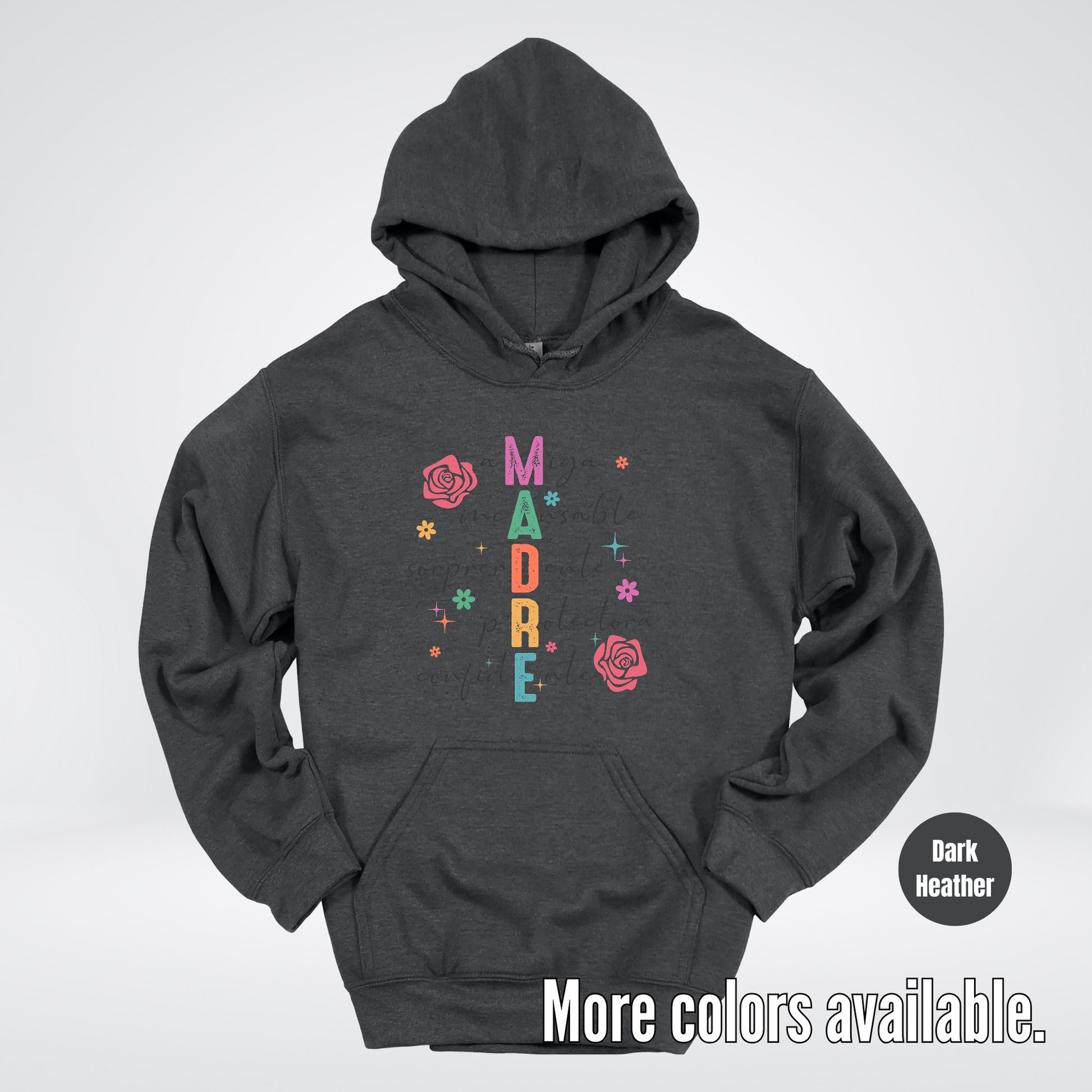 Celebrate Mother's Day with this "Madre" (Spanish for mother) hoodie! Show your love with this quirky, fun hoodie that will make everyone say, "Madre Mia!" Perfect for any mom who doesn't take herself too seriously.