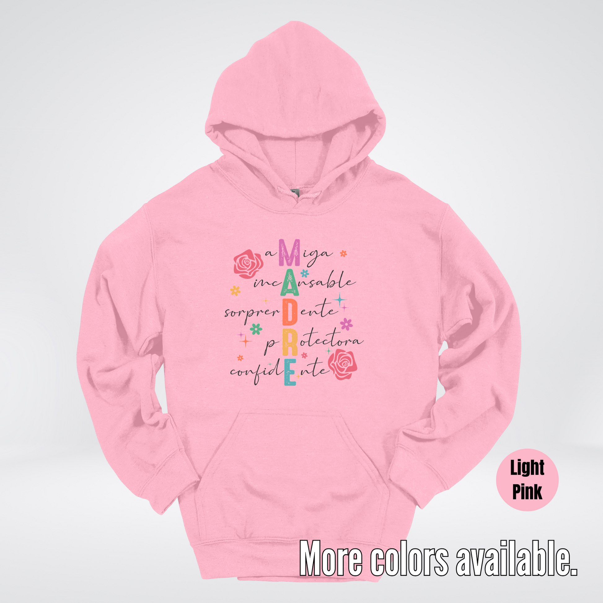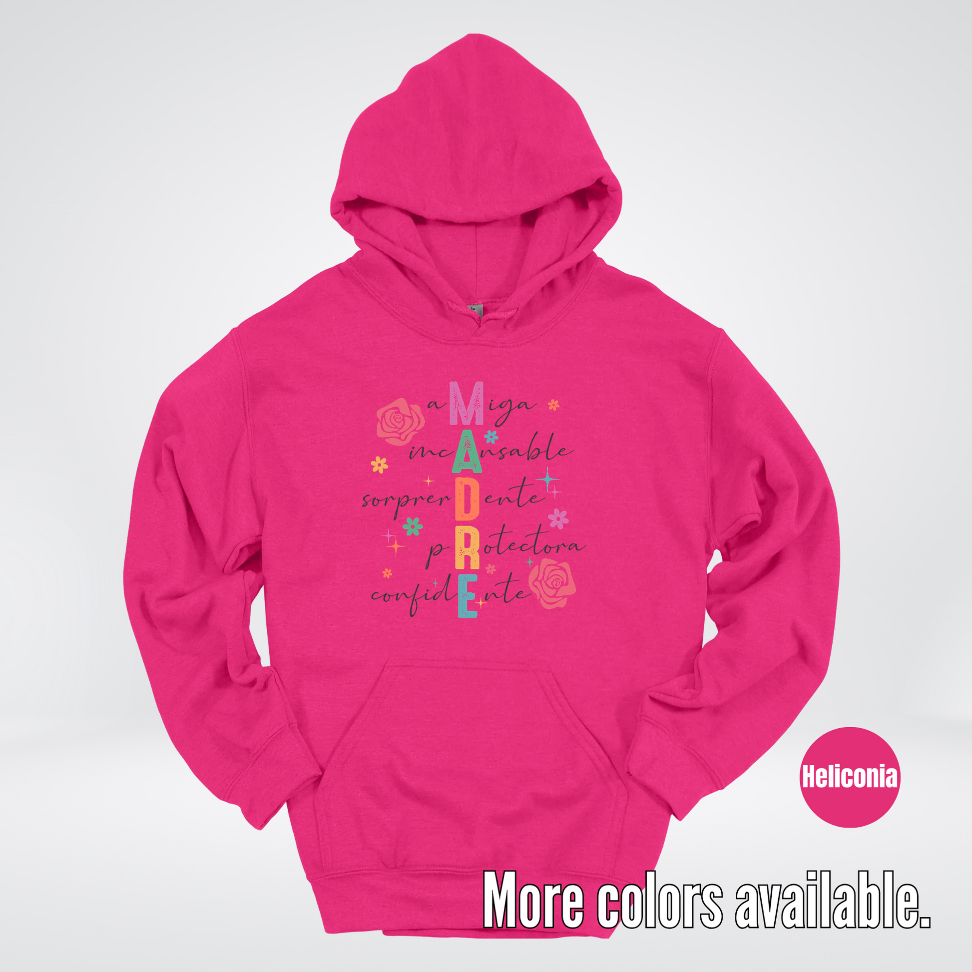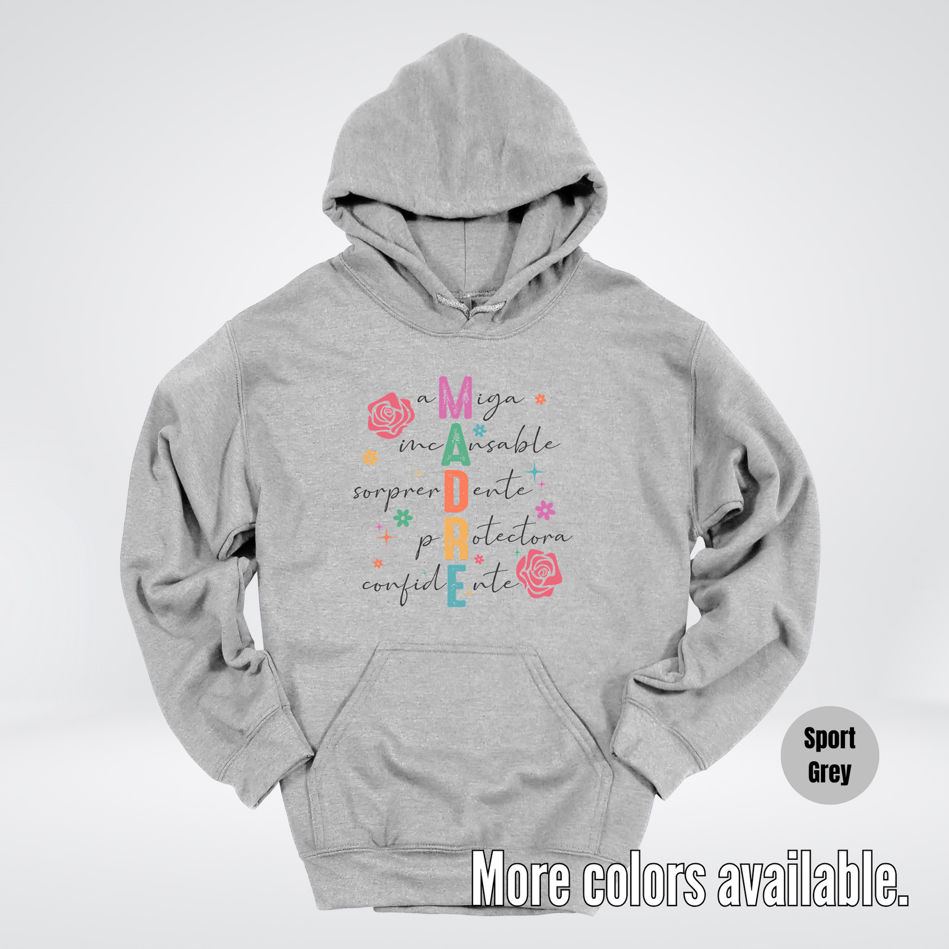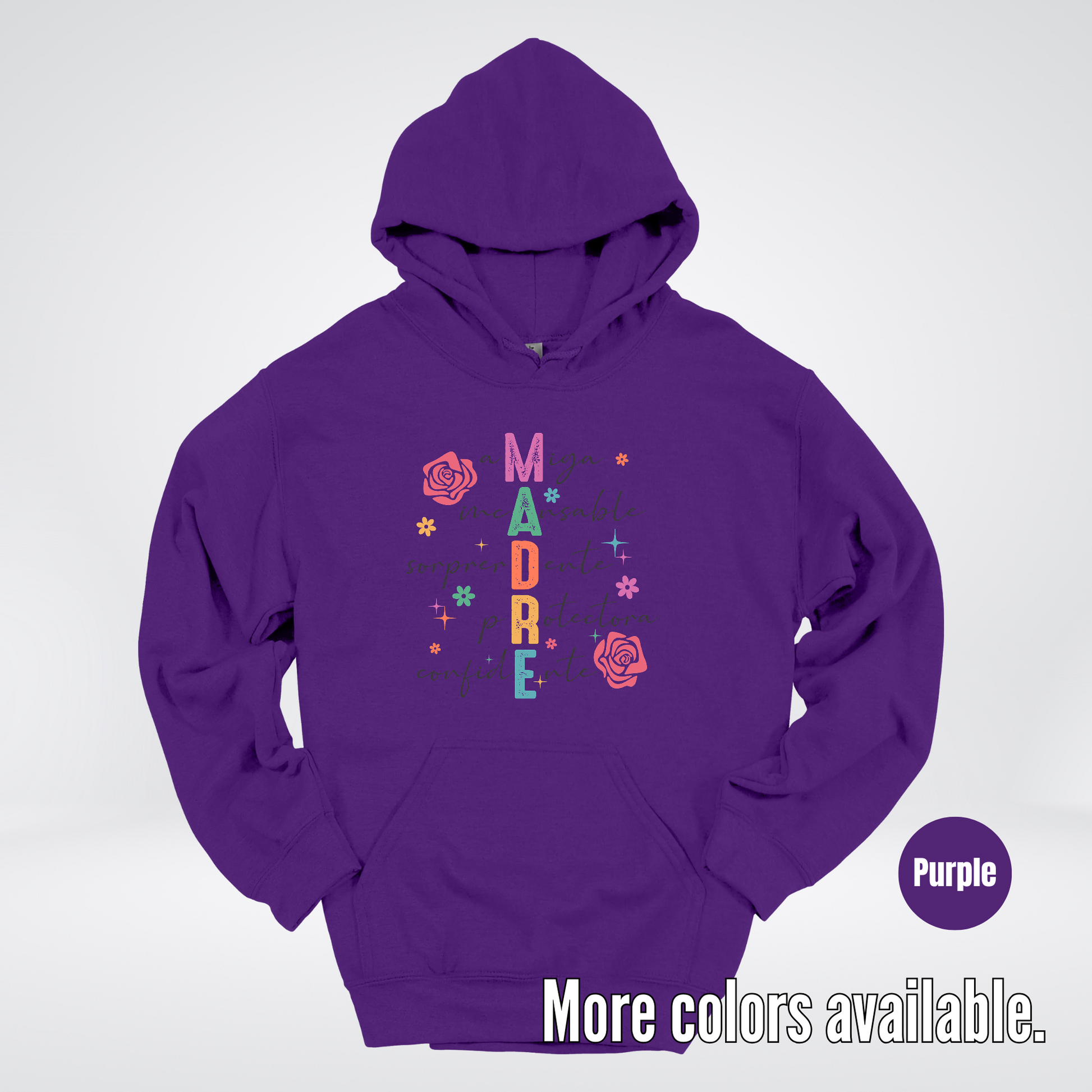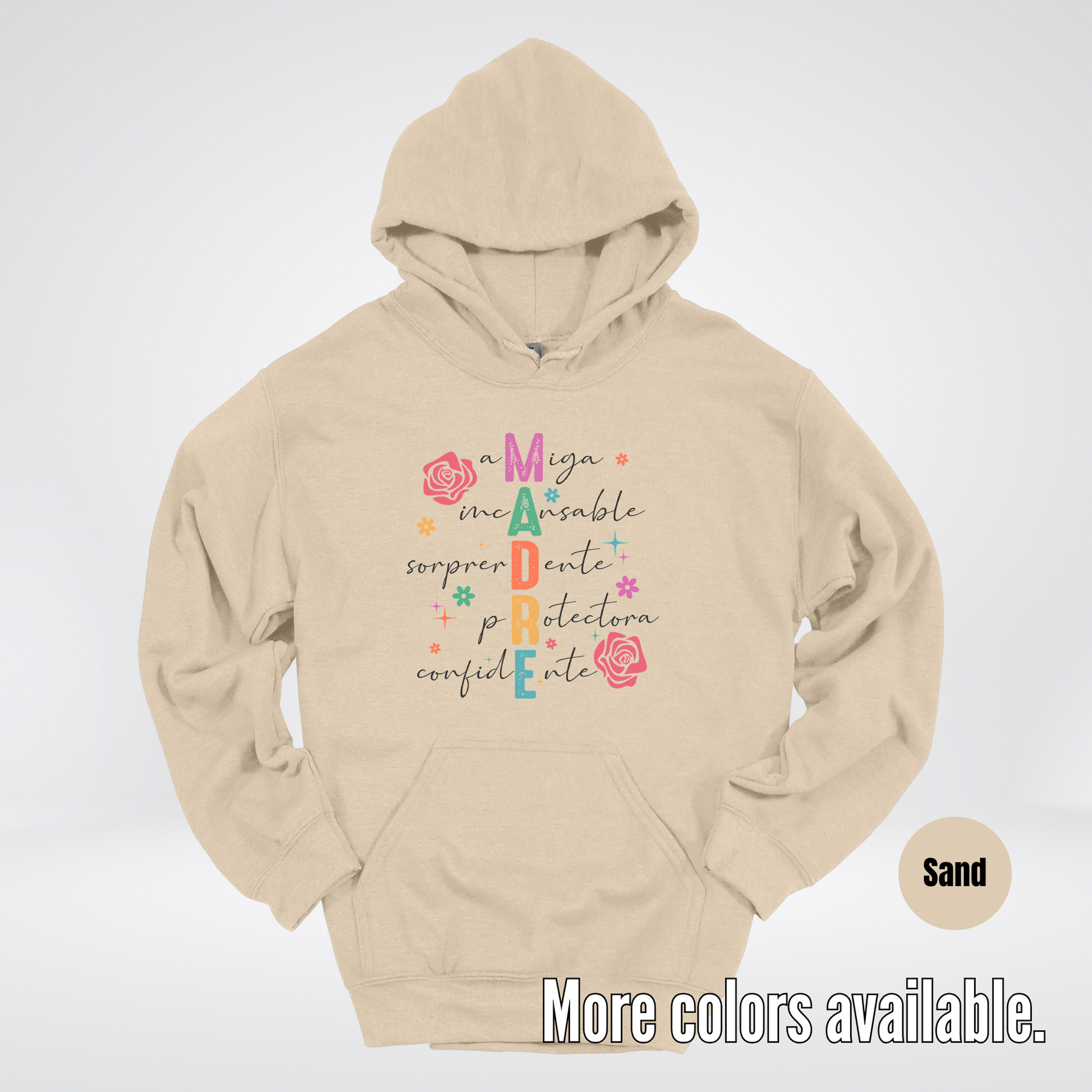 Celebrate Mother's Day with this "Madre" (Spanish for mother) hoodie! Show your love with this quirky, fun hoodie that will make everyone say, "Madre Mia!" Perfect for any mom who doesn't take herself too seriously.
