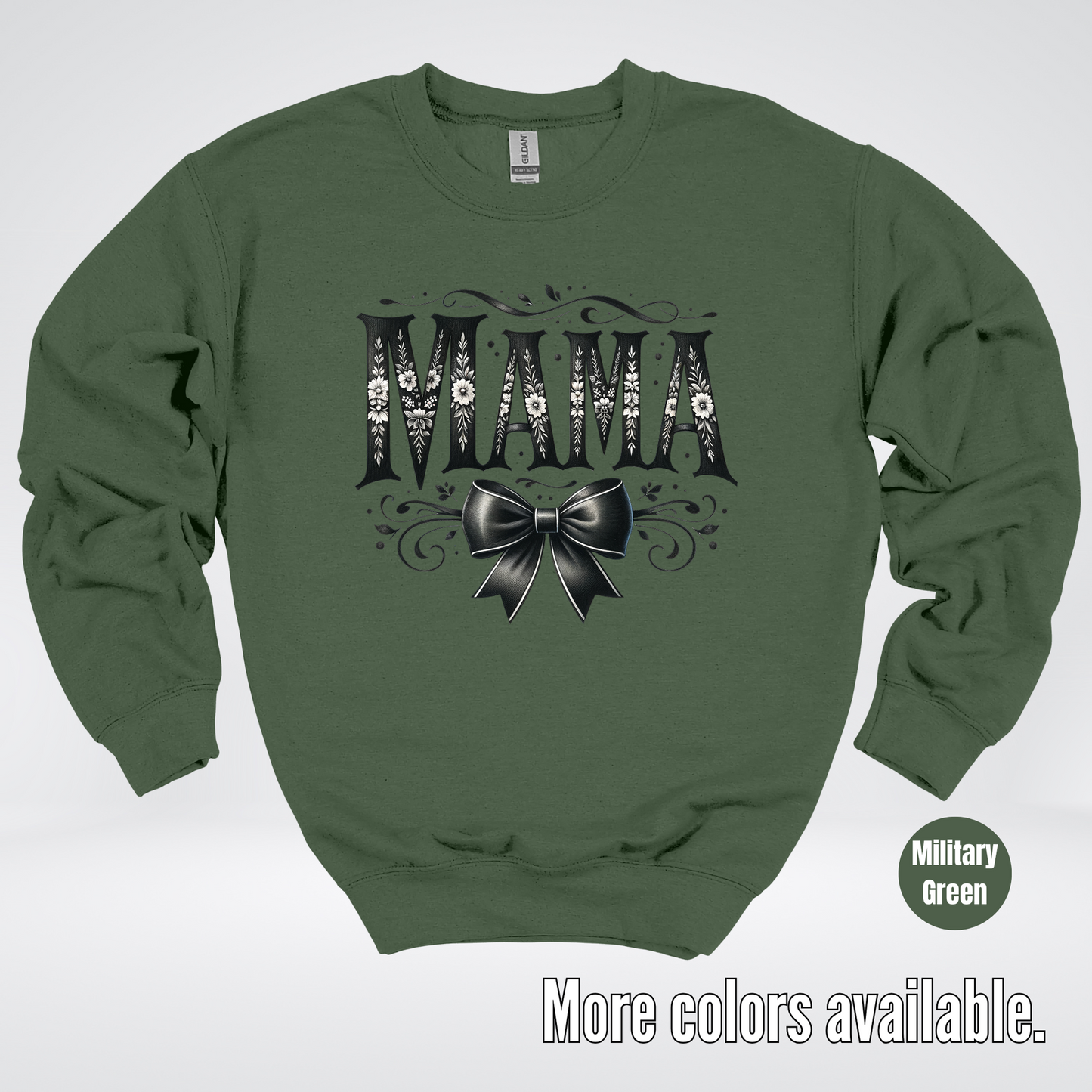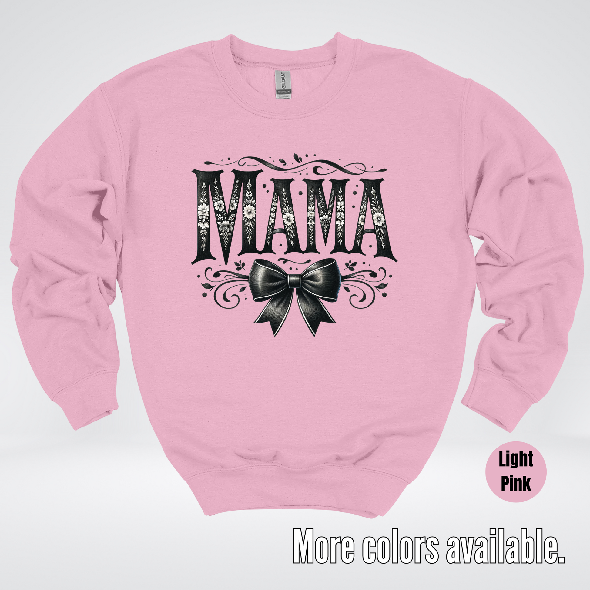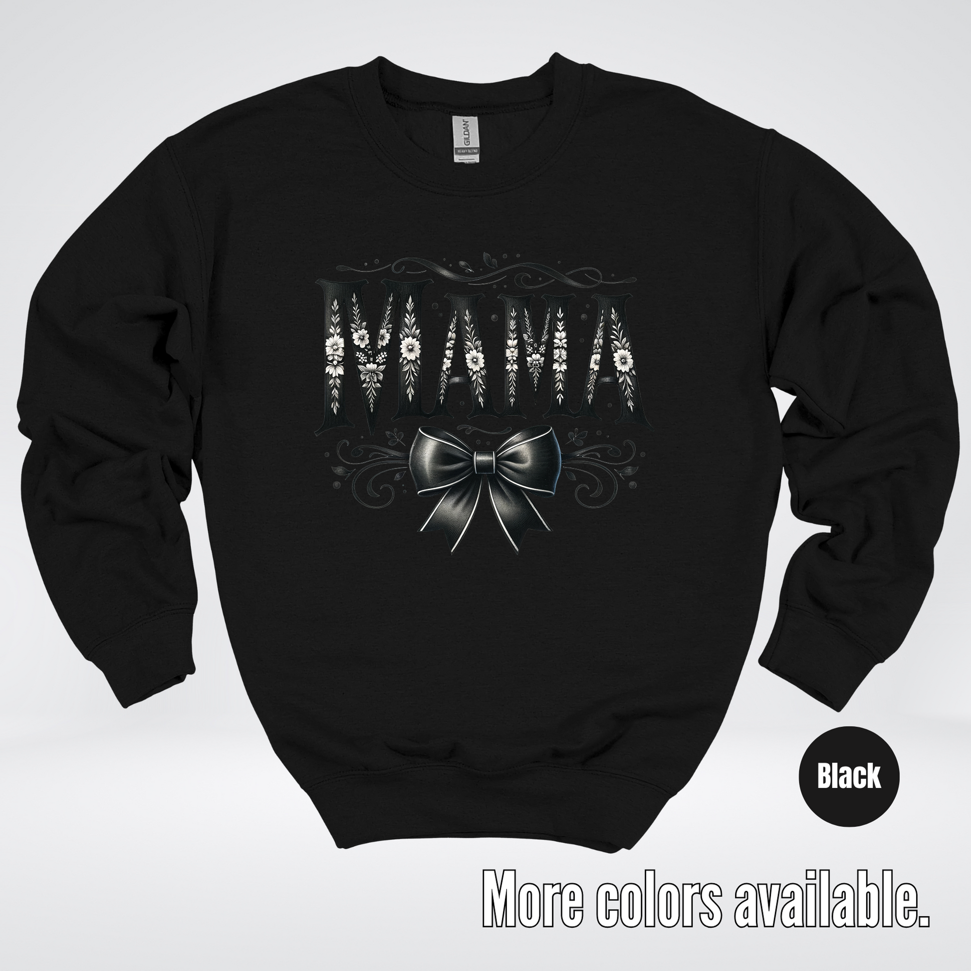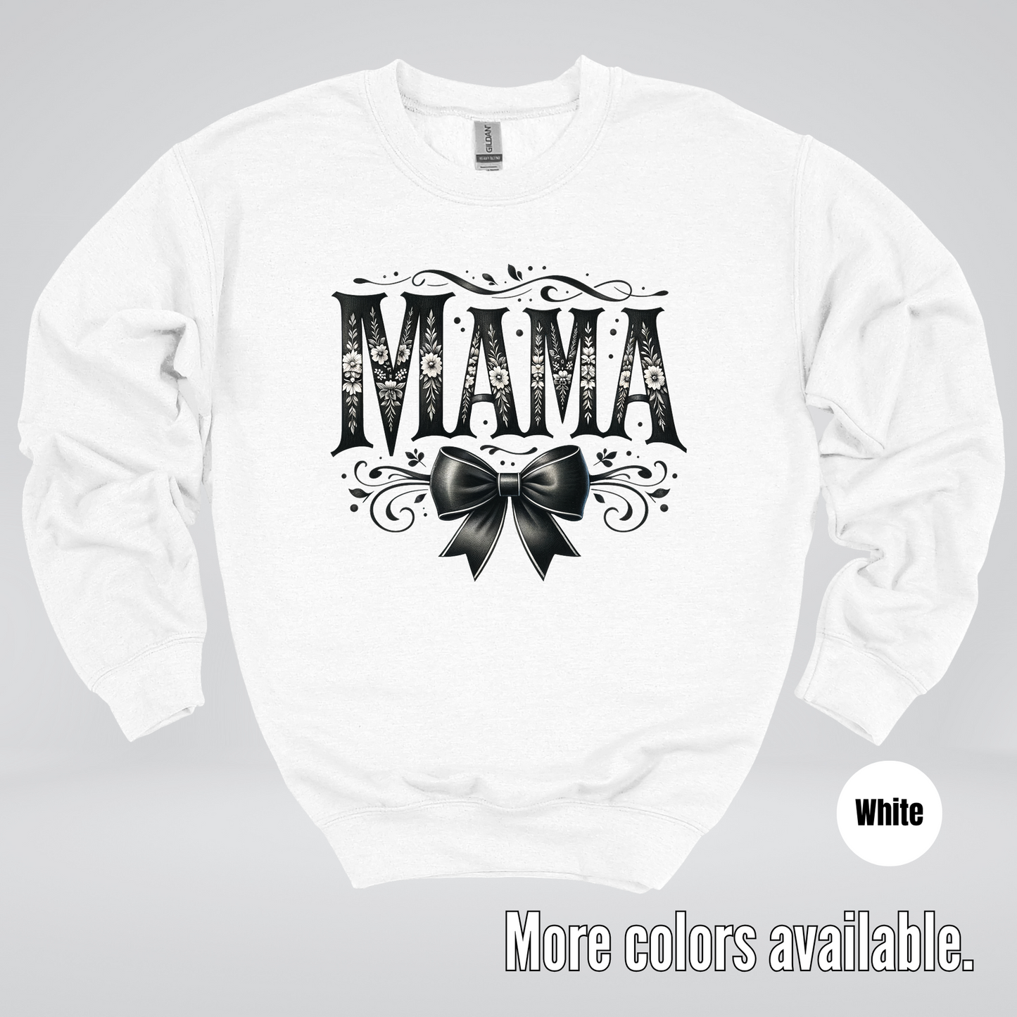Bring a touch of playfulness to your wardrobe with the Mama Black & White Coquette Crewneck Sweatshirt. With its quirky design and comfortable fit, this sweatshirt is perfect for mamas who don't take themselves too seriously. Stay stylish and cozy in this unique piece!