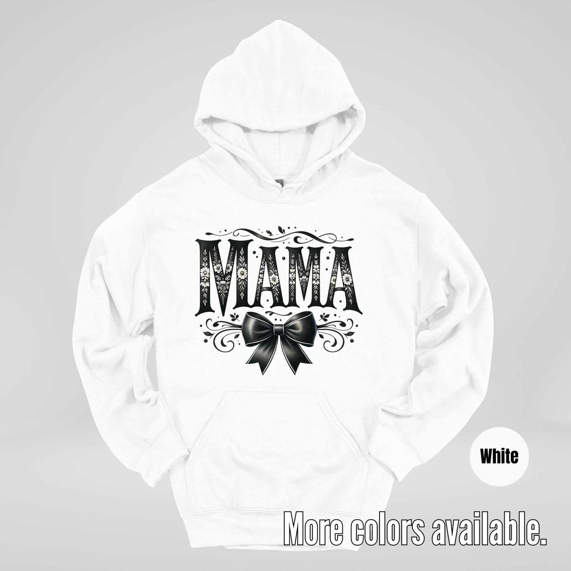 Rock this Mama Black & White Coquette Hoodie and show off your playful side. Made with a comfortable, soft material, this hoodie features a unique black and white design that will make you stand out. Perfect for moms on-the-go, this hoodie combines style and comfort in one quirky package.