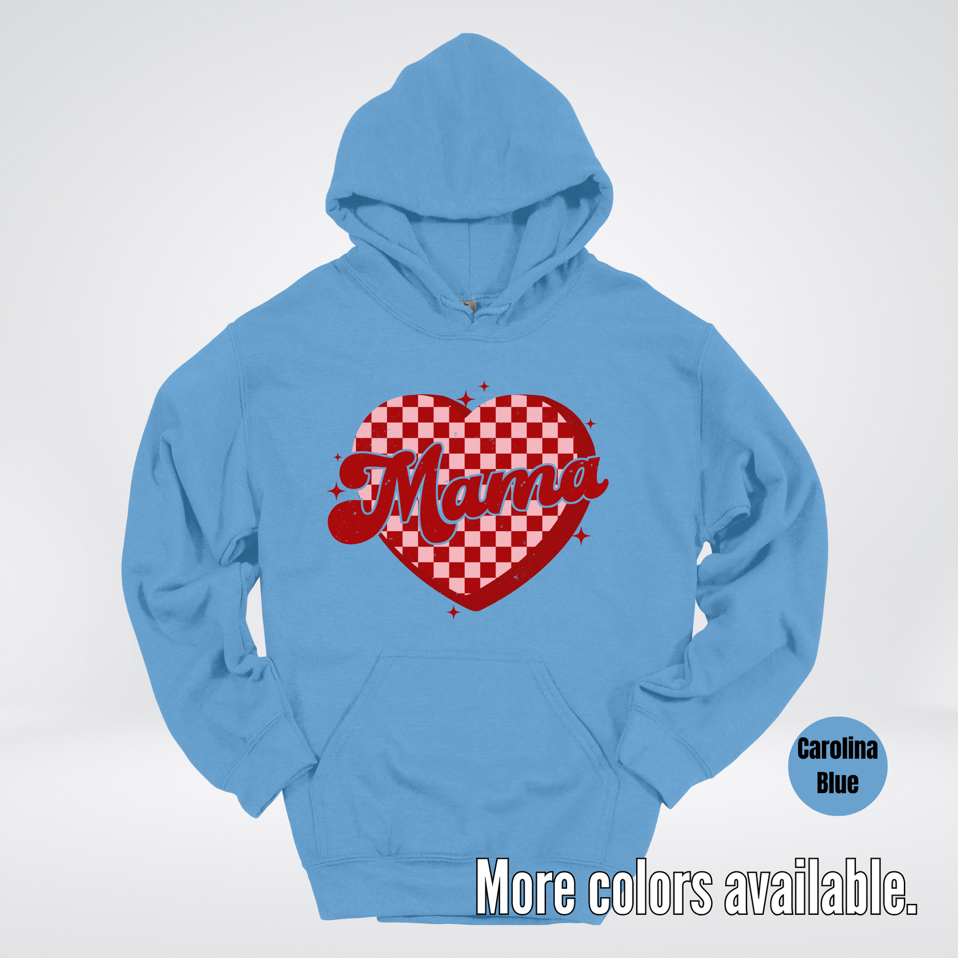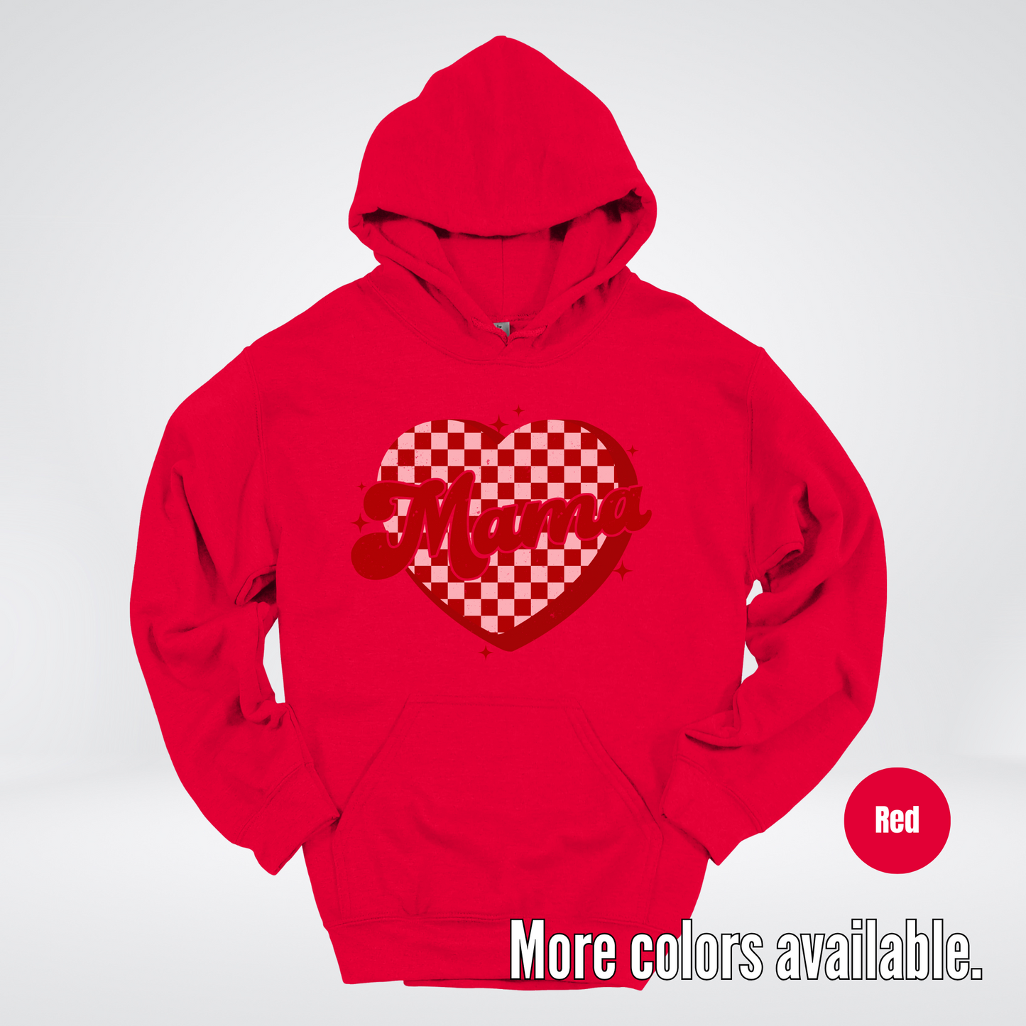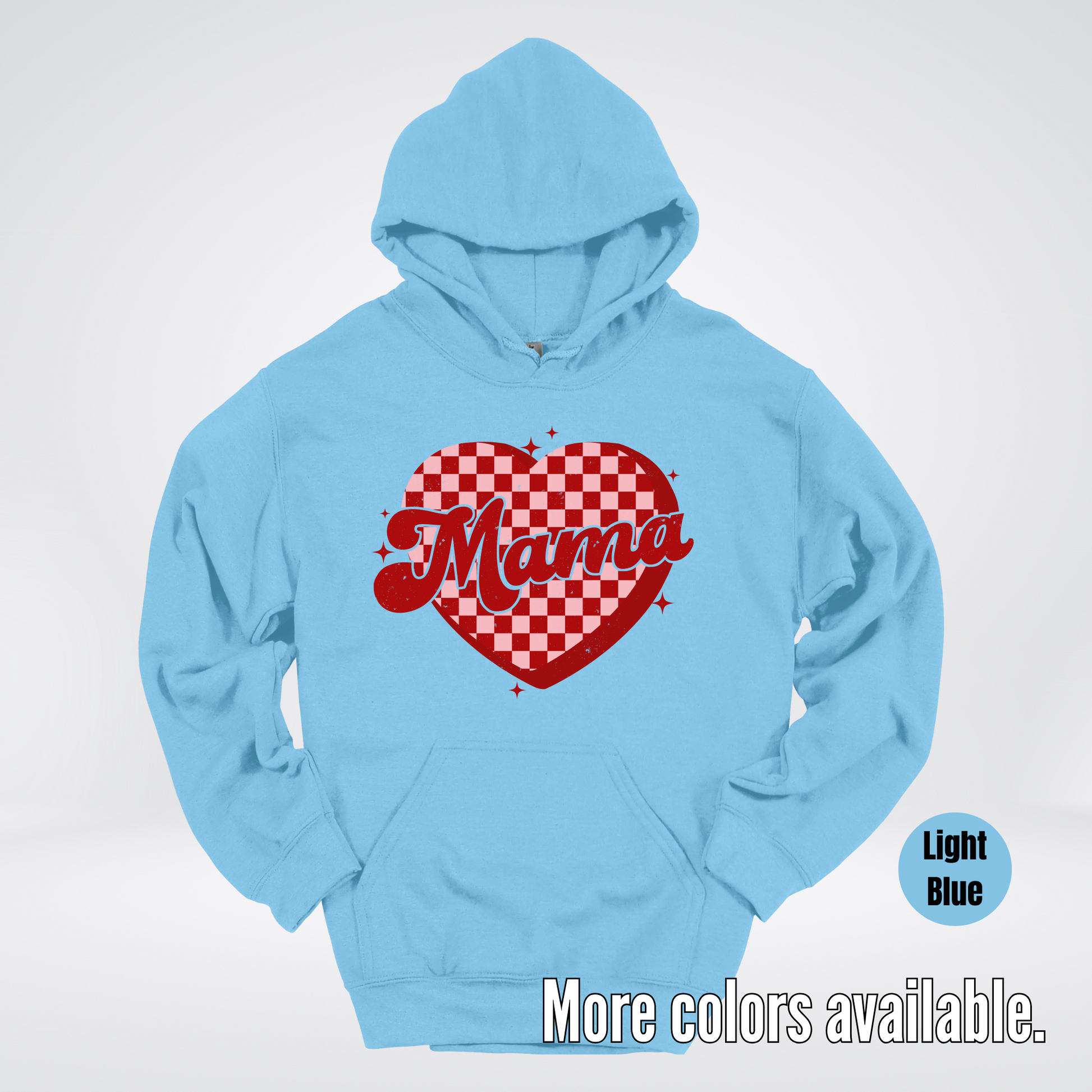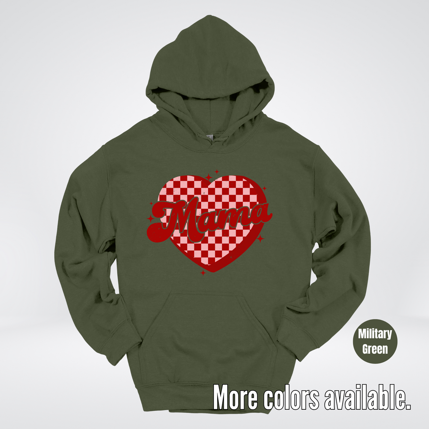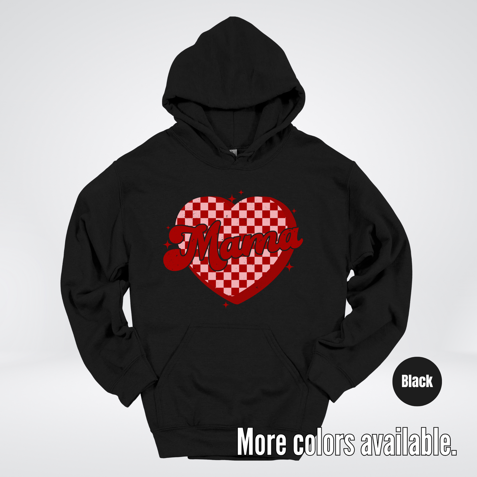 Rock this Mama Checkered Heart Hoodie and show your love for your little ones! This cozy hoodie features a checkered heart design, perfect for wearing on casual outings or snuggled up at home. With a playful and quirky tone, this hoodie is a must-have for all the cool moms out there. (Mama-approved!)