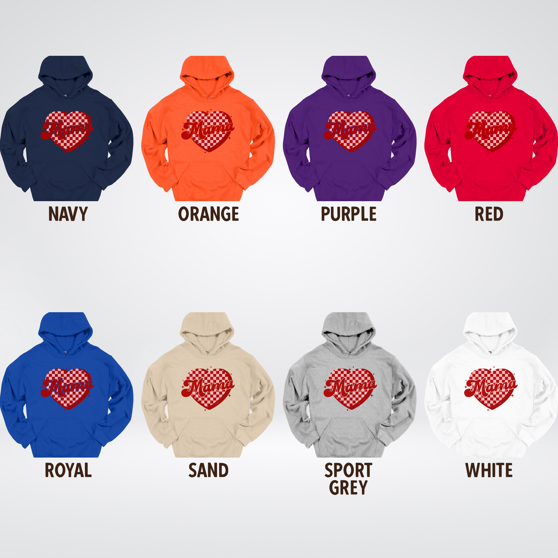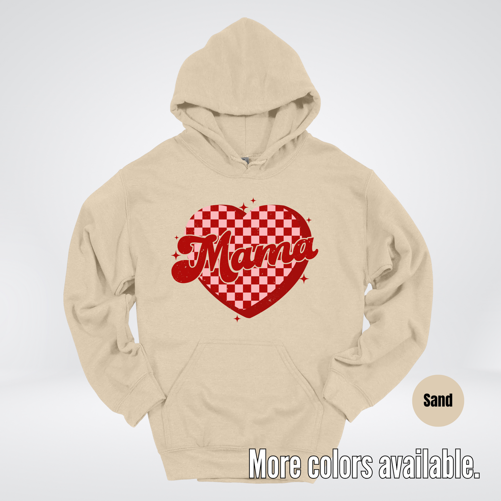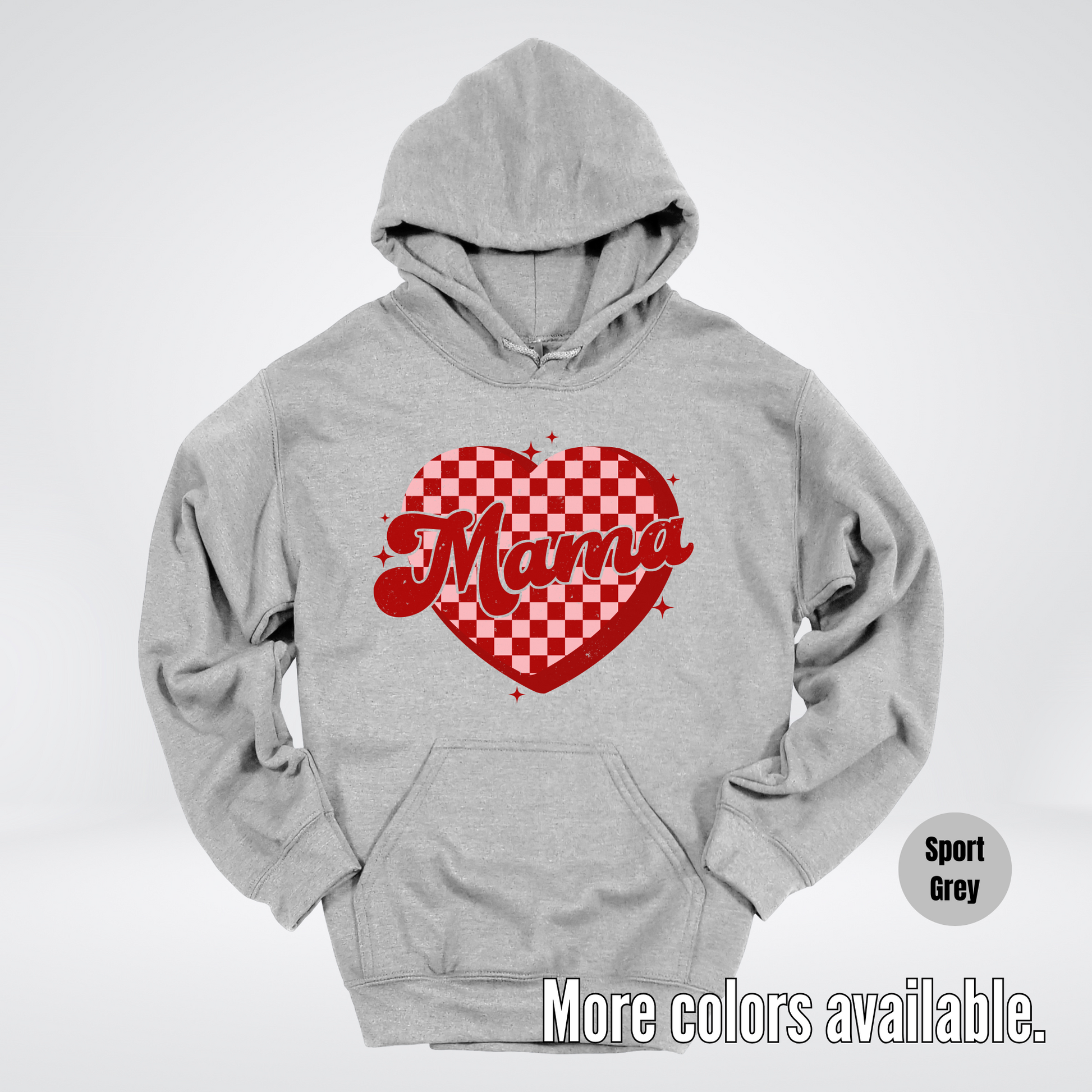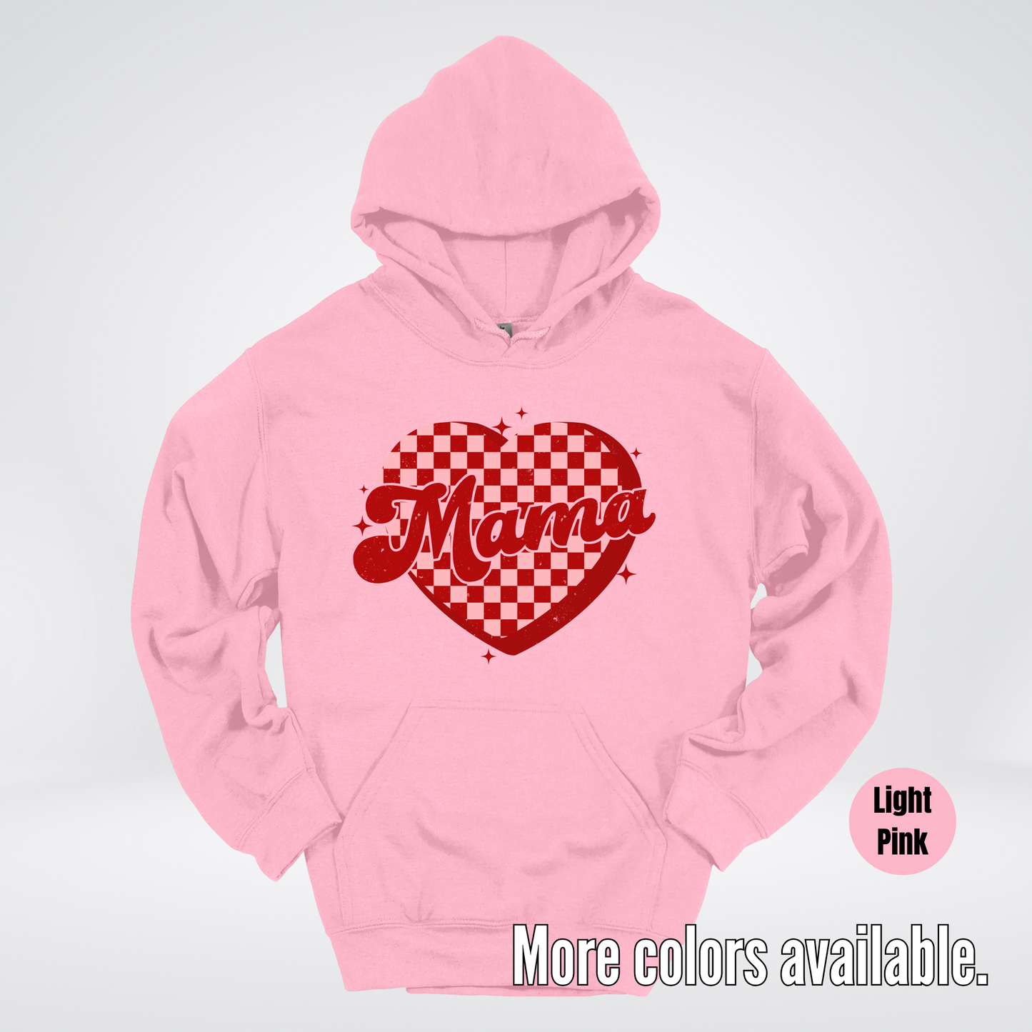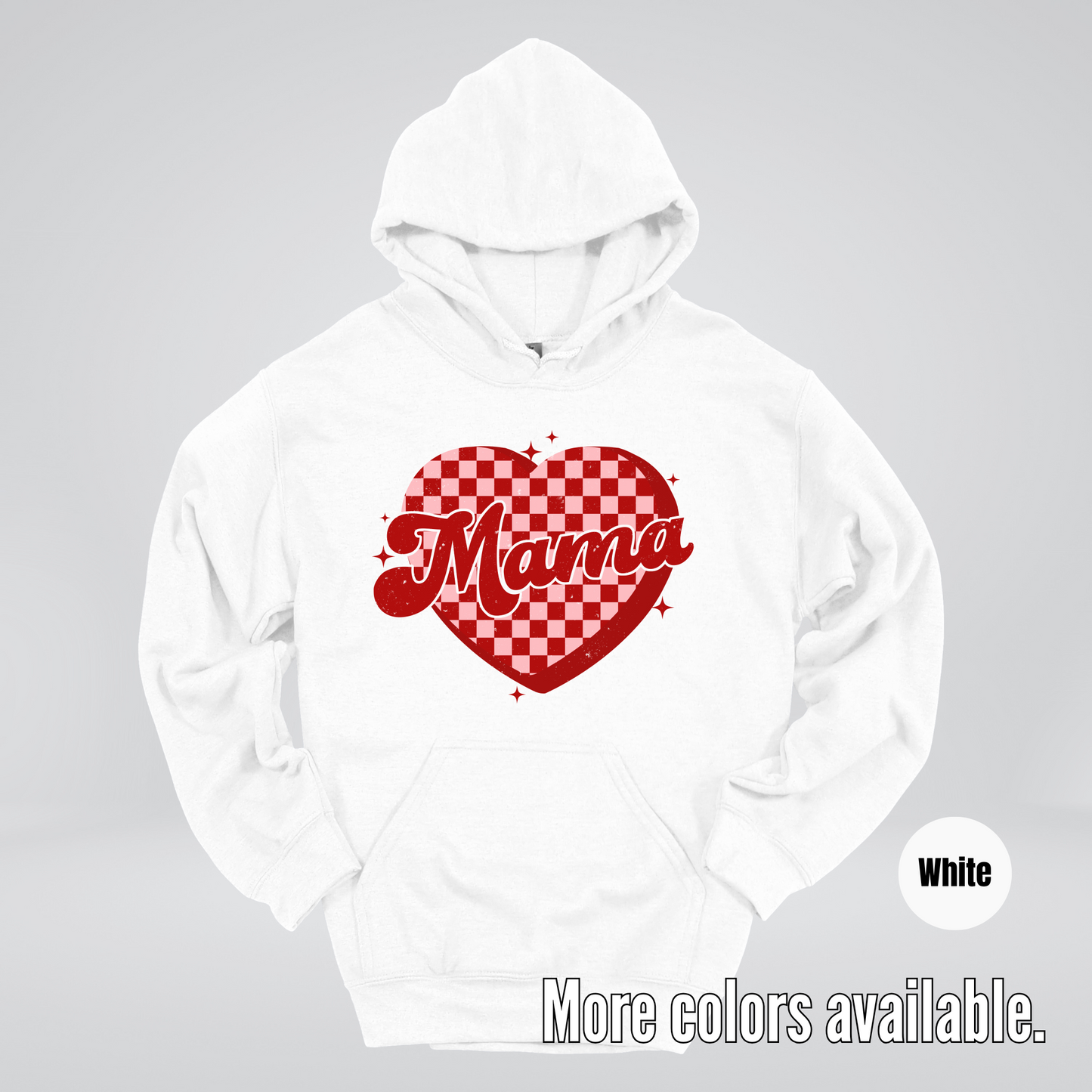Rock this Mama Checkered Heart Hoodie and show your love for your little ones! This cozy hoodie features a checkered heart design, perfect for wearing on casual outings or snuggled up at home. With a playful and quirky tone, this hoodie is a must-have for all the cool moms out there. (Mama-approved!)