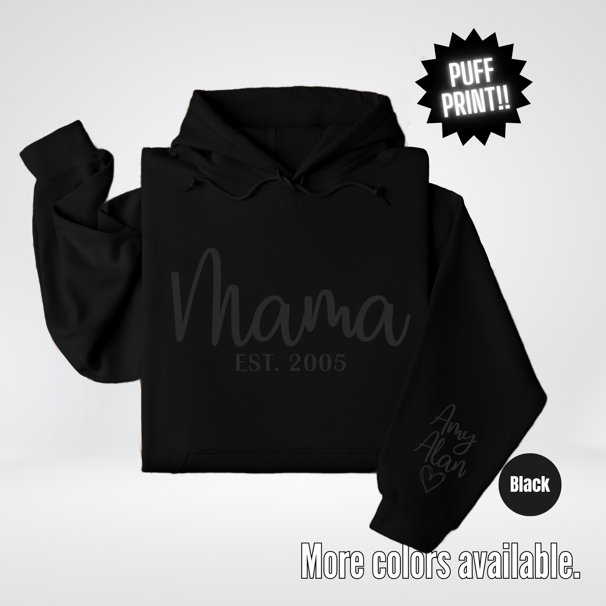 Celebrate your motherhood with our Mama Custom Est Year & Custom Names On Sleeve Hoodie. Show off your unique style with your custom year and names on the sleeve. Stay warm and stylish while proudly displaying your mom status. A perfect gift for all the mamas out there!