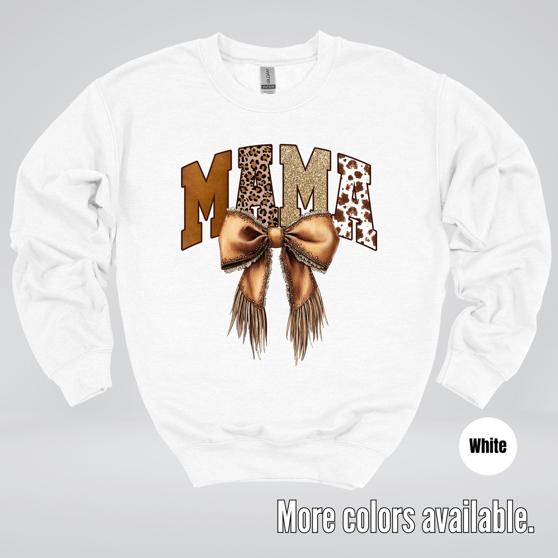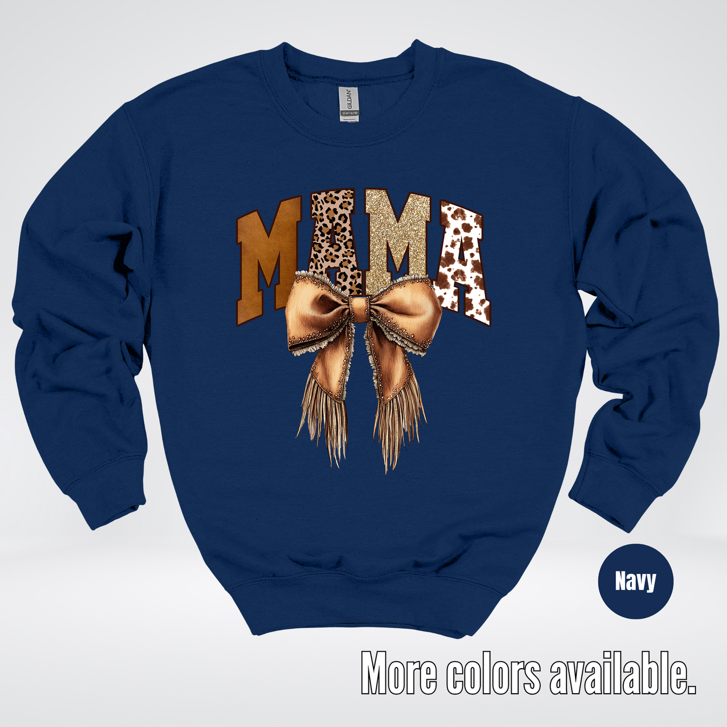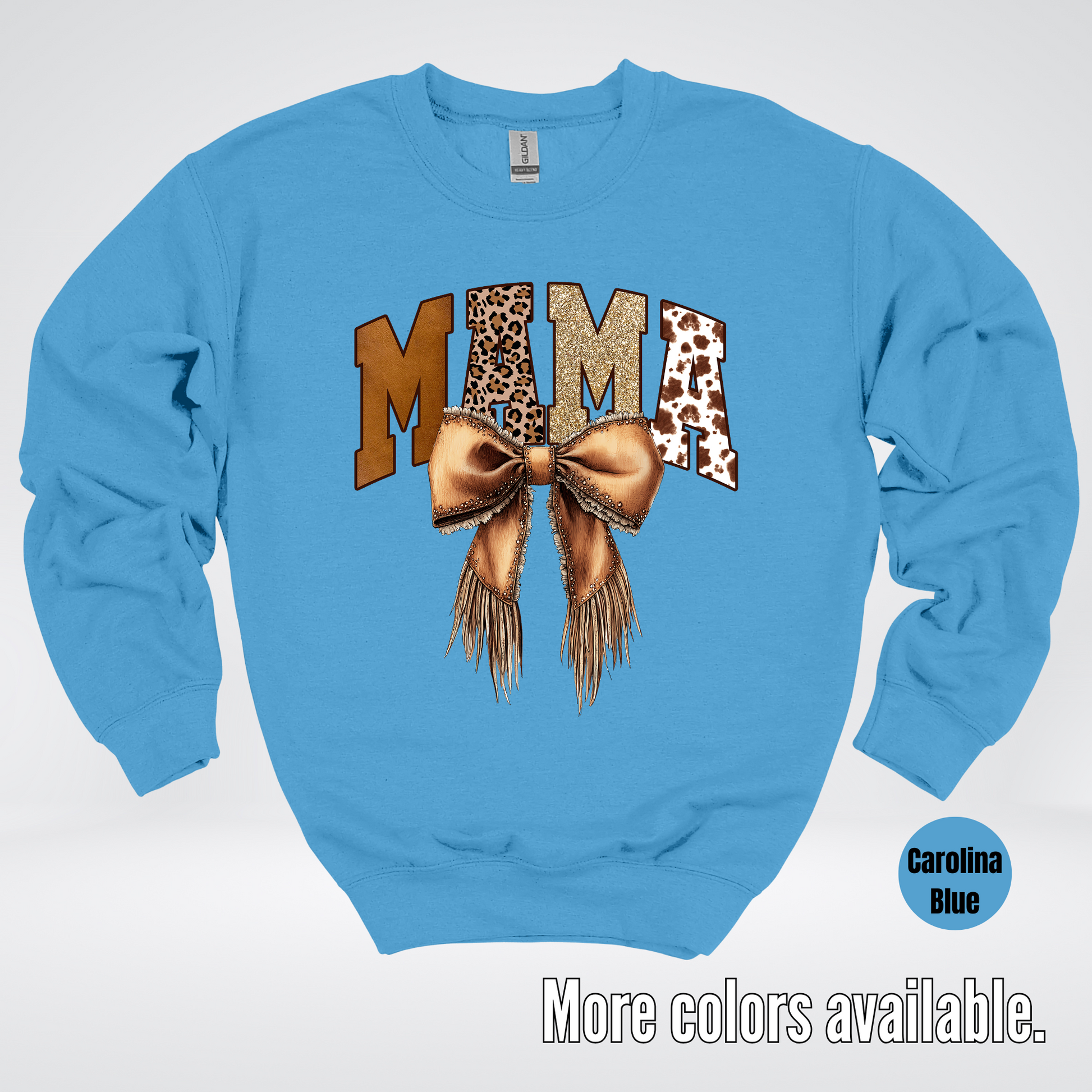 Add a playful touch to your wardrobe with the MAMA Western Coquette sweatshirt! Featuring a quirky tassel and leather bow design, this crewneck sweatshirt is perfect for those who don't take themselves too seriously. Get ready to turn heads and make a statement in this unique and fun piece!