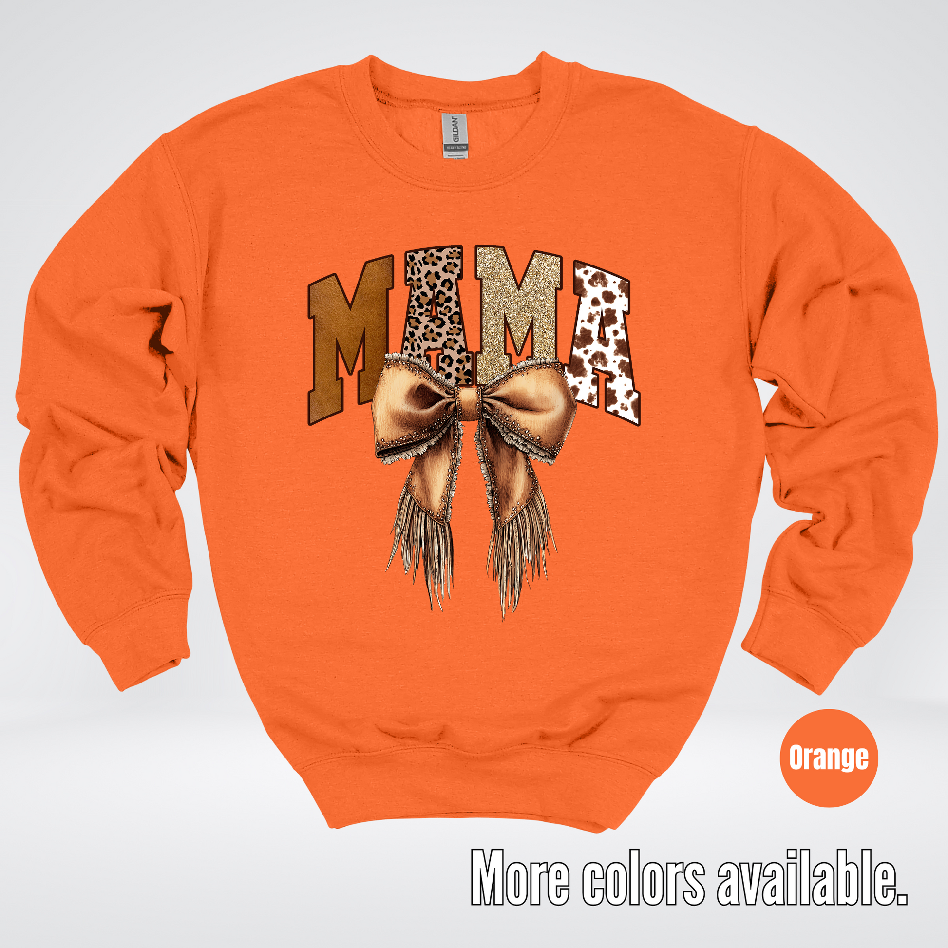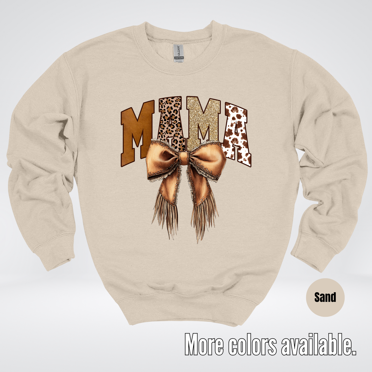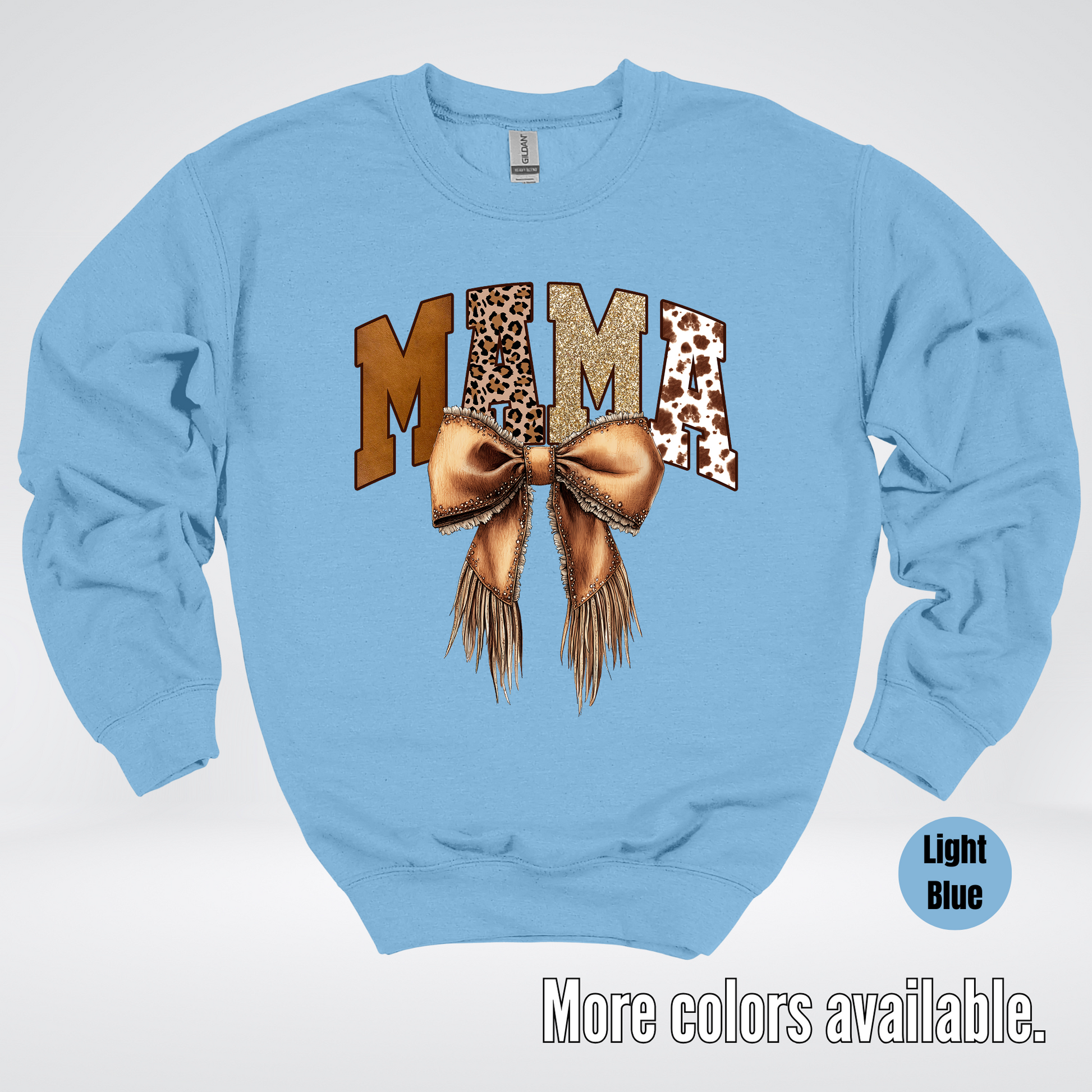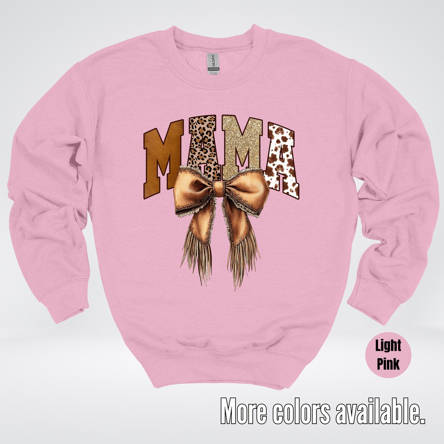 Add a playful touch to your wardrobe with the MAMA Western Coquette sweatshirt! Featuring a quirky tassel and leather bow design, this crewneck sweatshirt is perfect for those who don't take themselves too seriously. Get ready to turn heads and make a statement in this unique and fun piece!