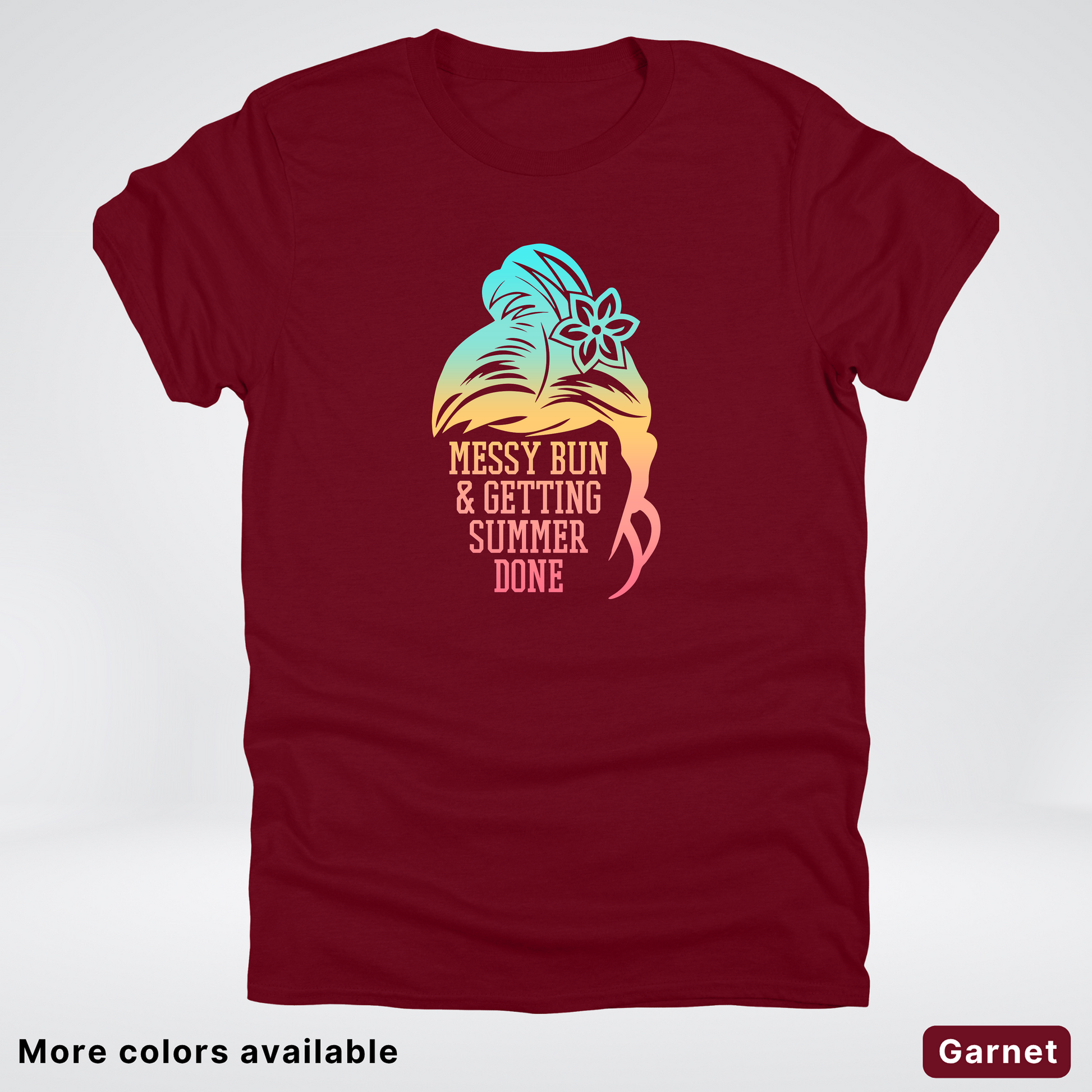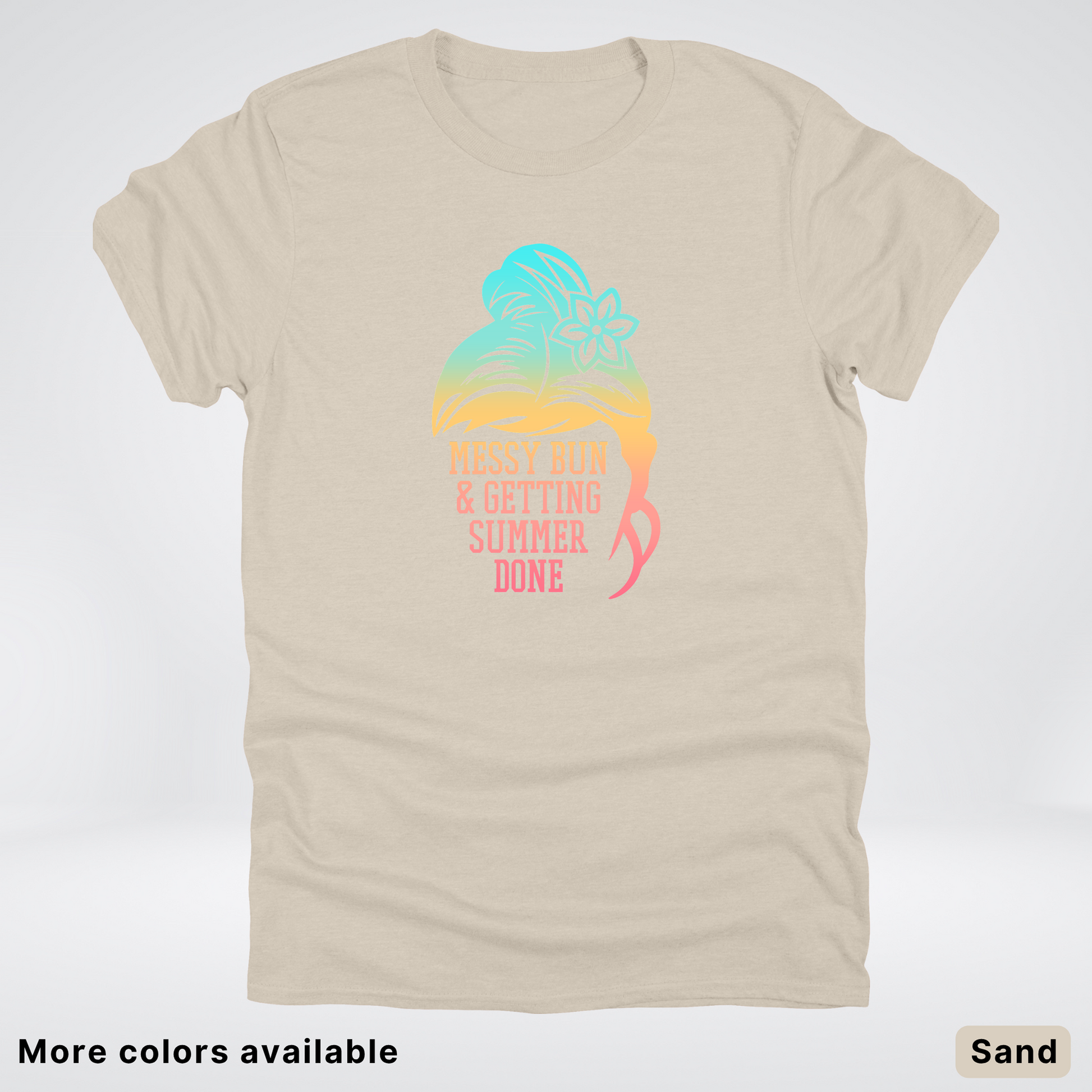 Embrace the carefree vibes of summer with our Messy Bun & Getting Summer Done T-Shirt. Perfect for those sunny days when comfort meets style, this tee keeps you cool and casual while you tackle your summer to-do list. Its playful design celebrates the effortless spirit of the season, making it your go-to for fun, relaxation, and everything in between.