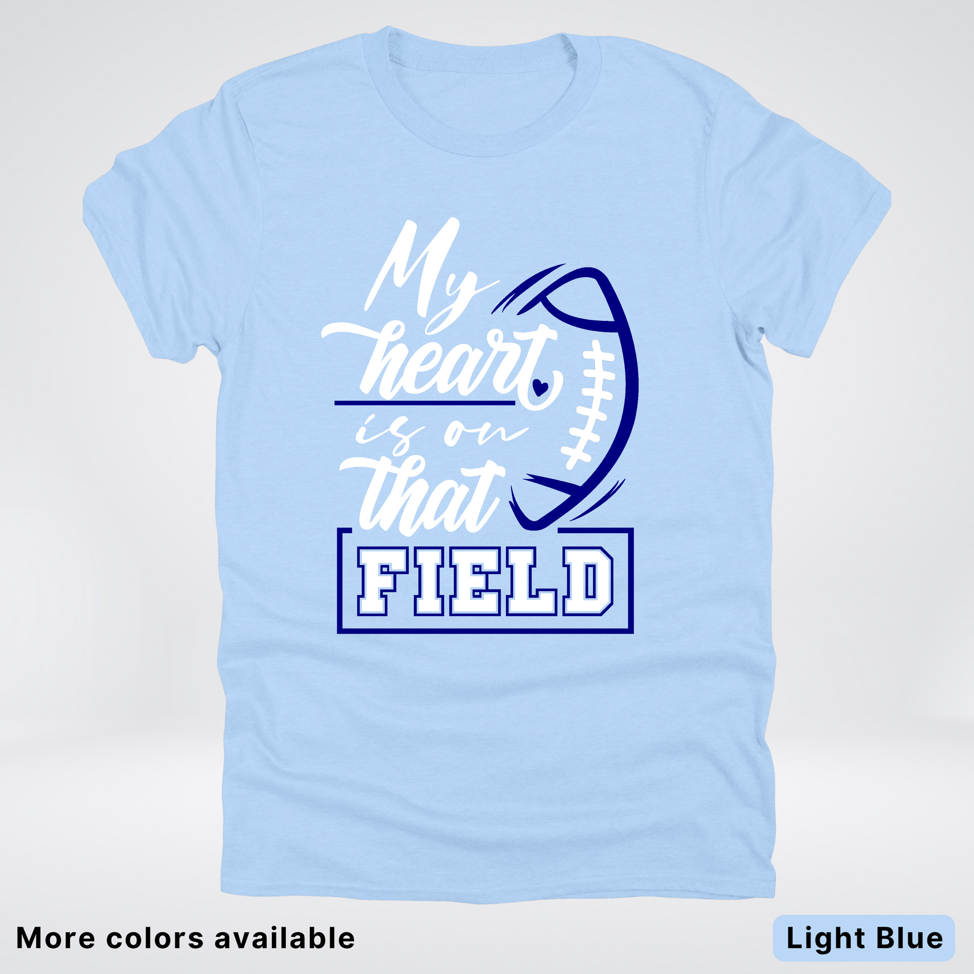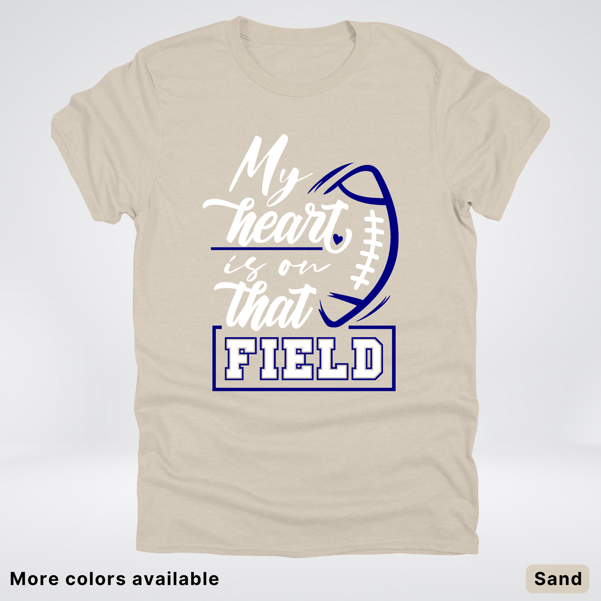 Show your passion with the "My Heart Is On That Field" navy t-shirt! Perfect for sports lovers who live and breathe the game, this comfy tee lets you wear your heart on your sleeve—literally. Soft fabric and a bold design make it a winning choice for game days or casual outings. Grab yours and cheer on in style!