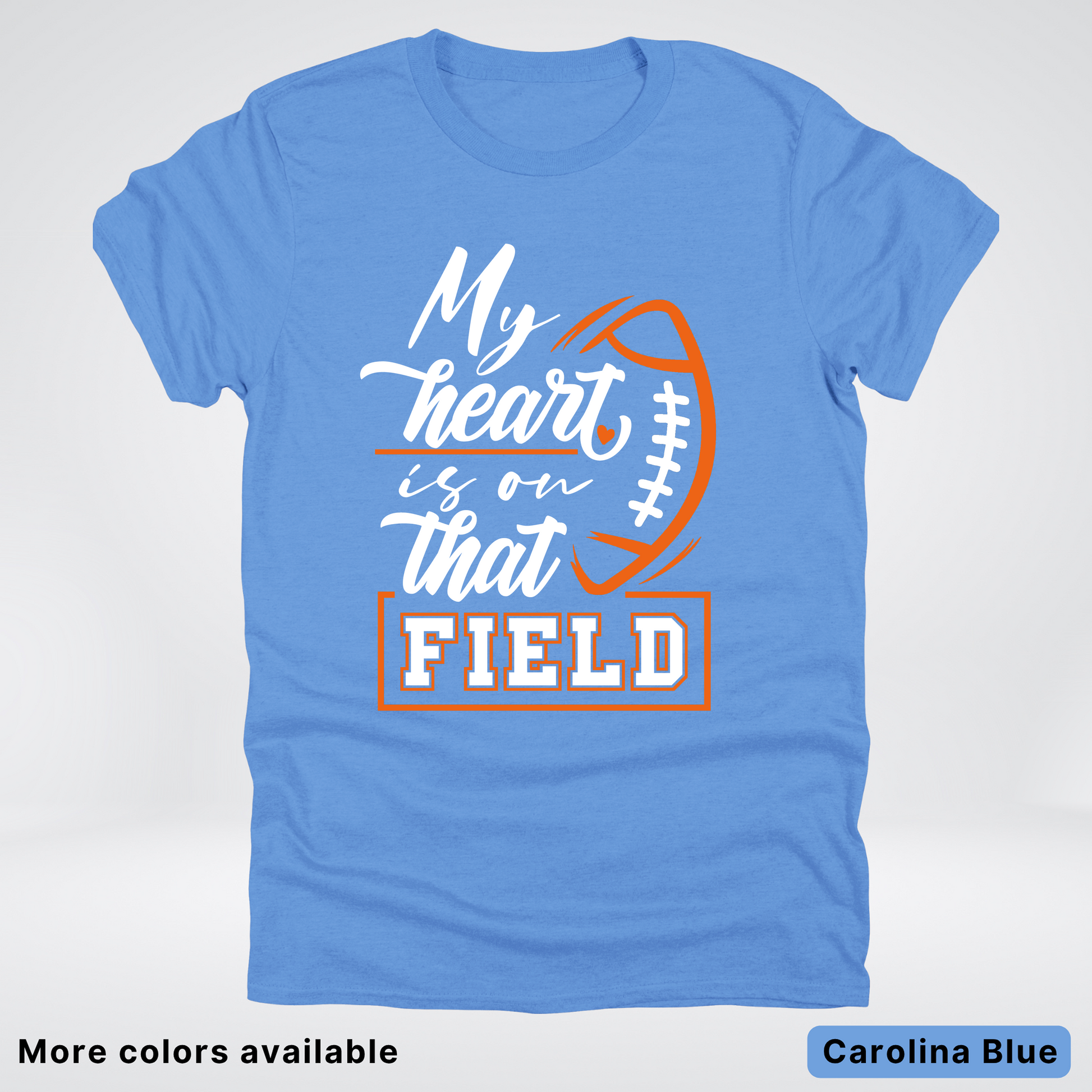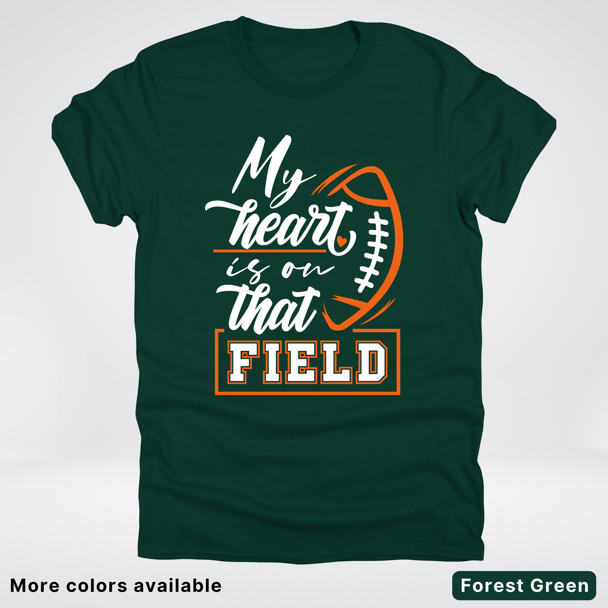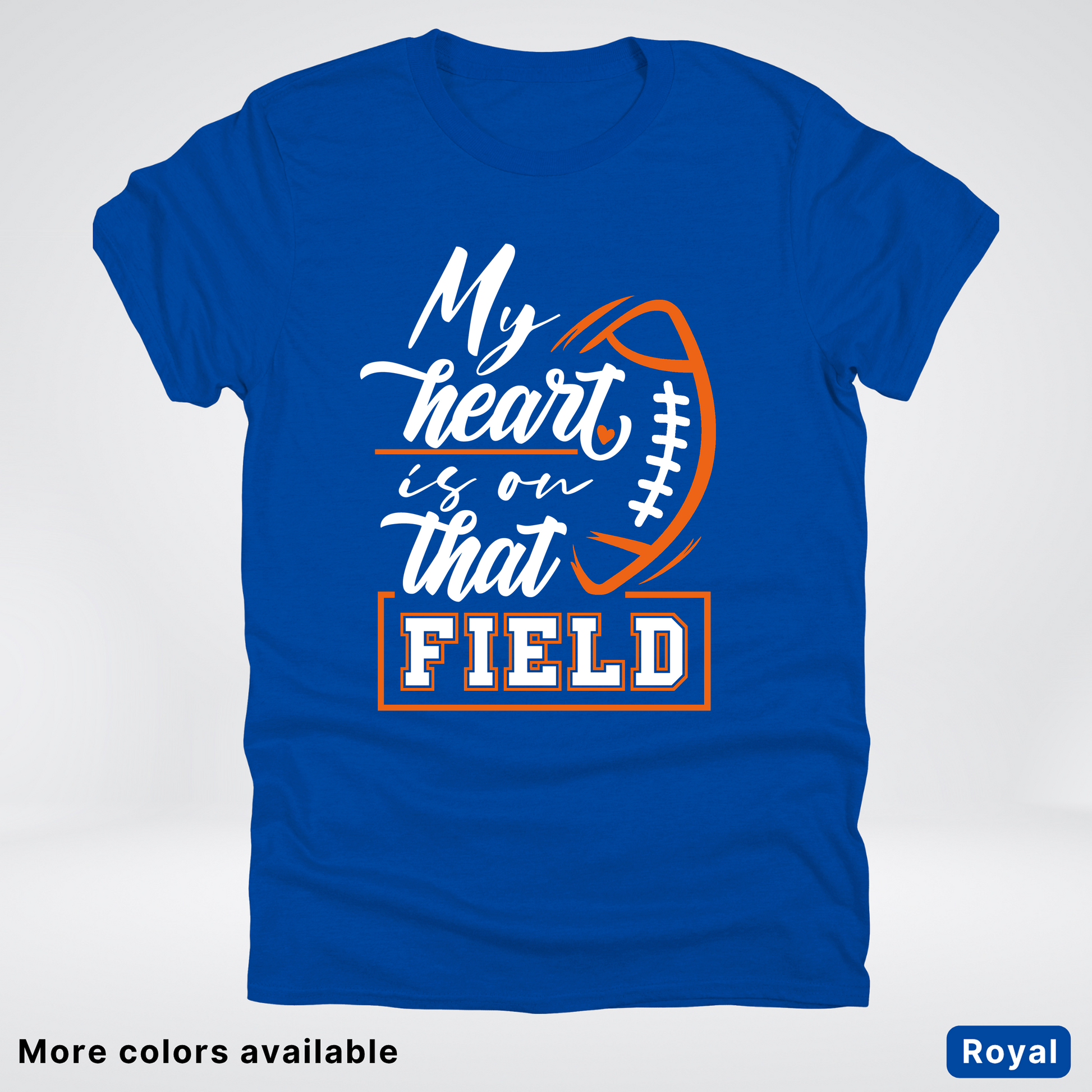 Show your love for the game with this vibrant orange "My Heart Is On That Field" T-shirt. Perfect for fans and players alike, it lets everyone know where your passion lies.